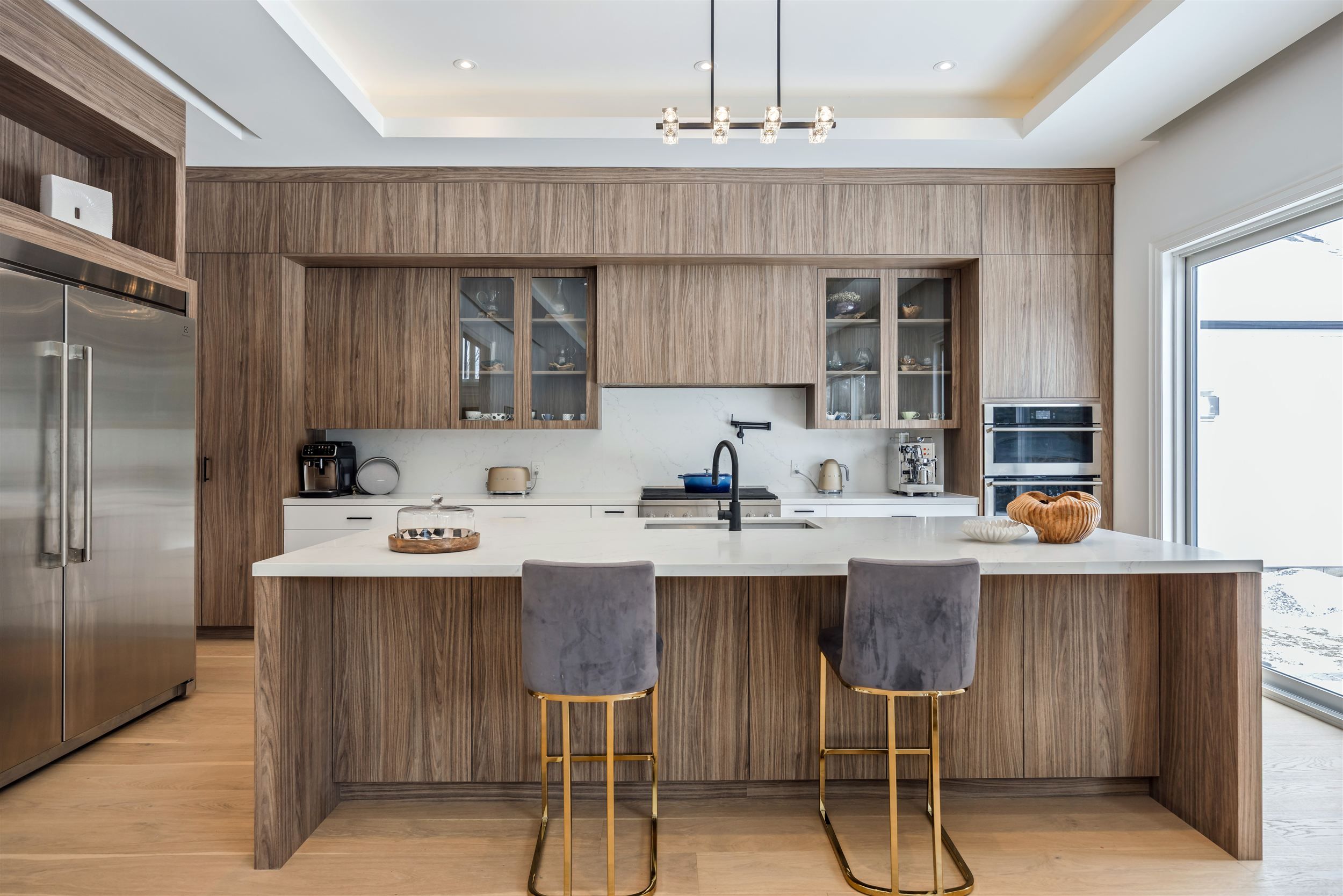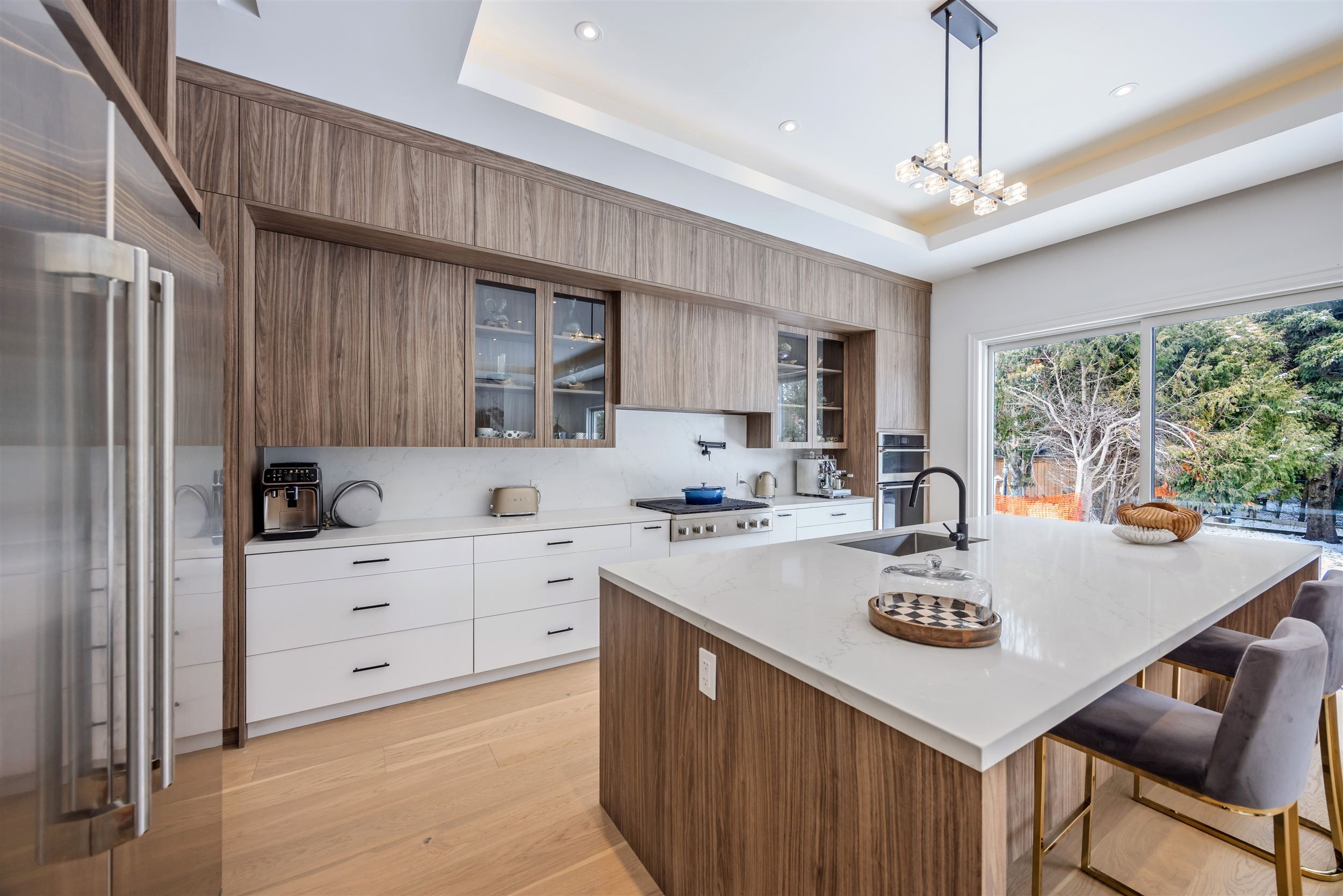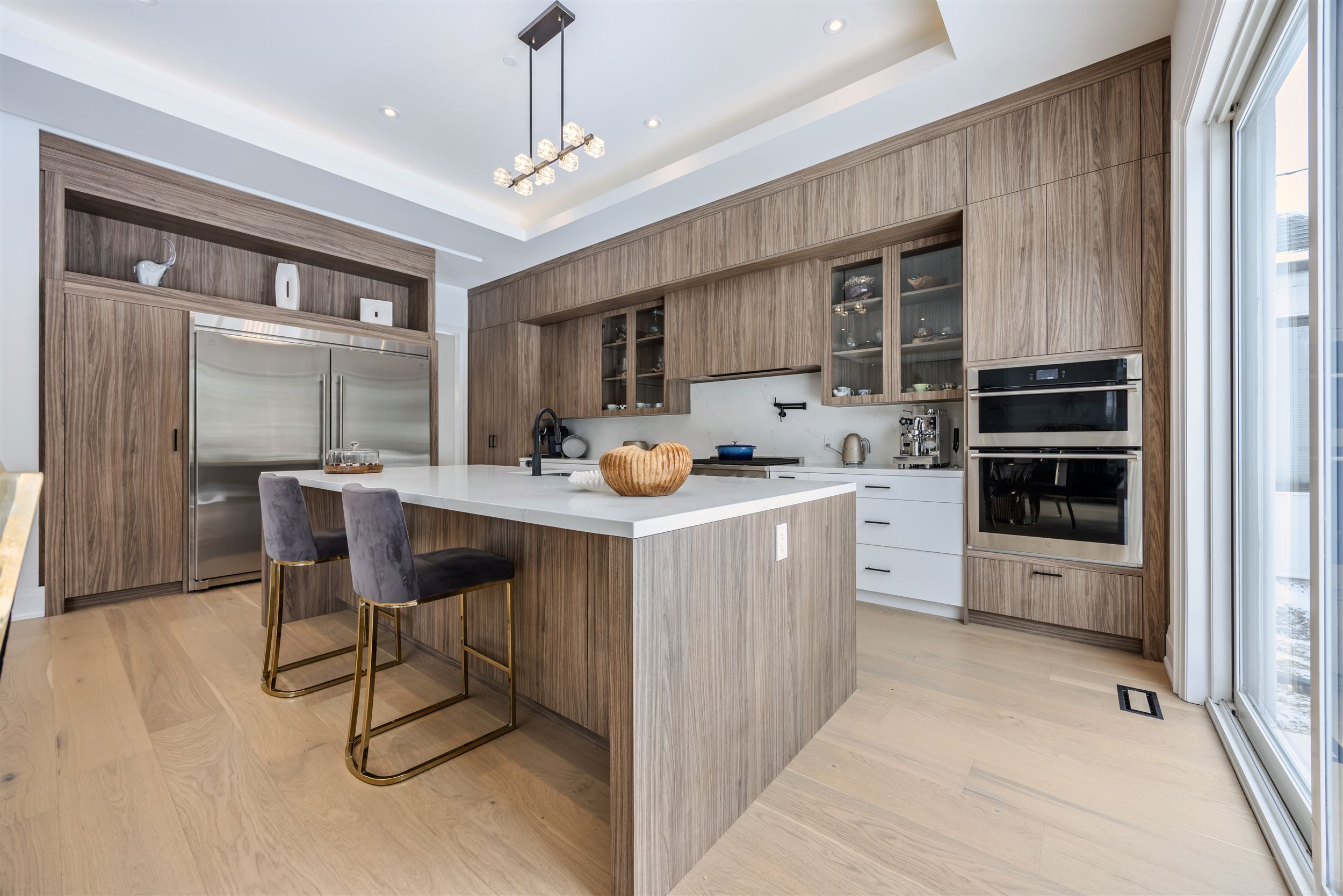 • High-end kitchen featuring a large island and built-in appliances.