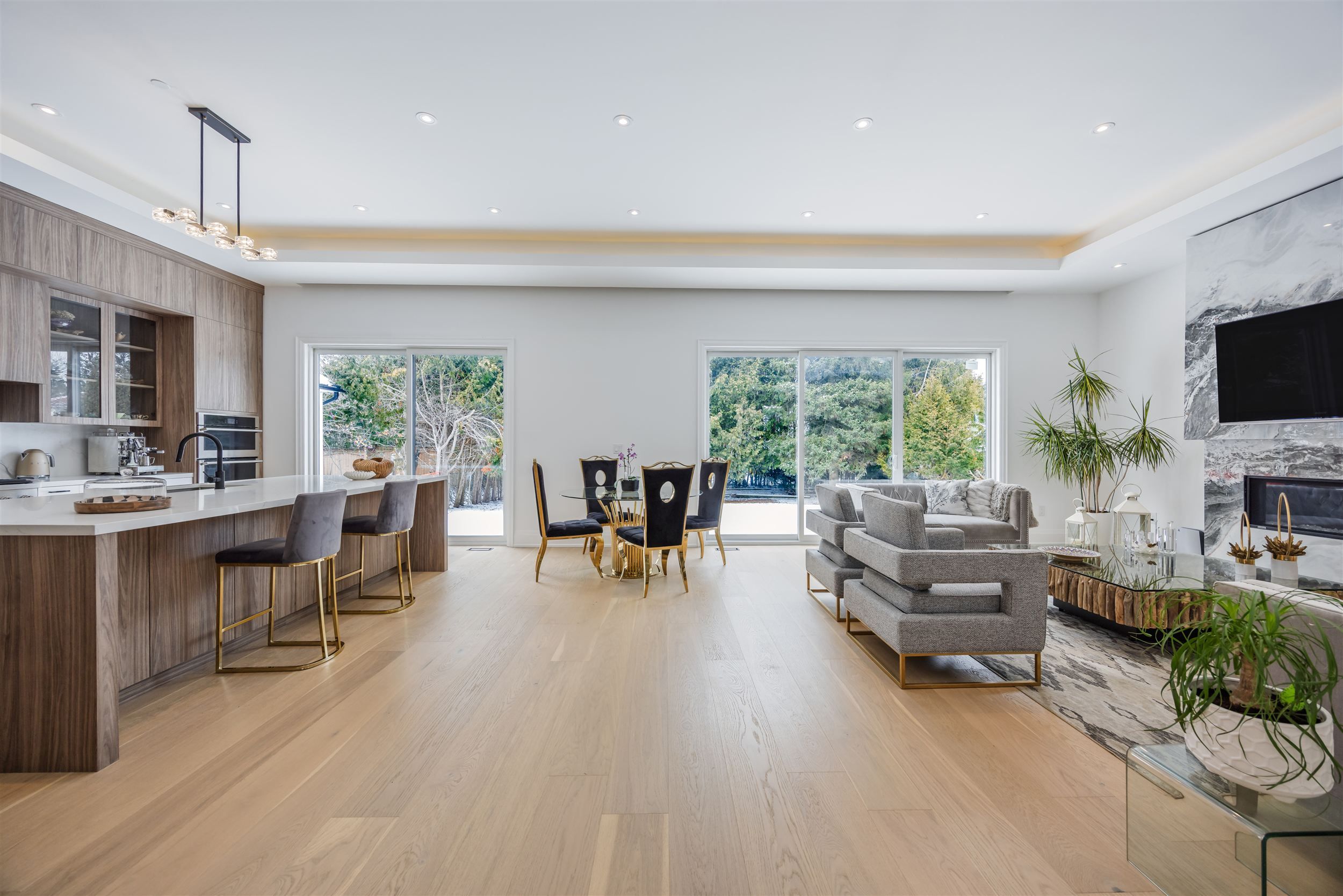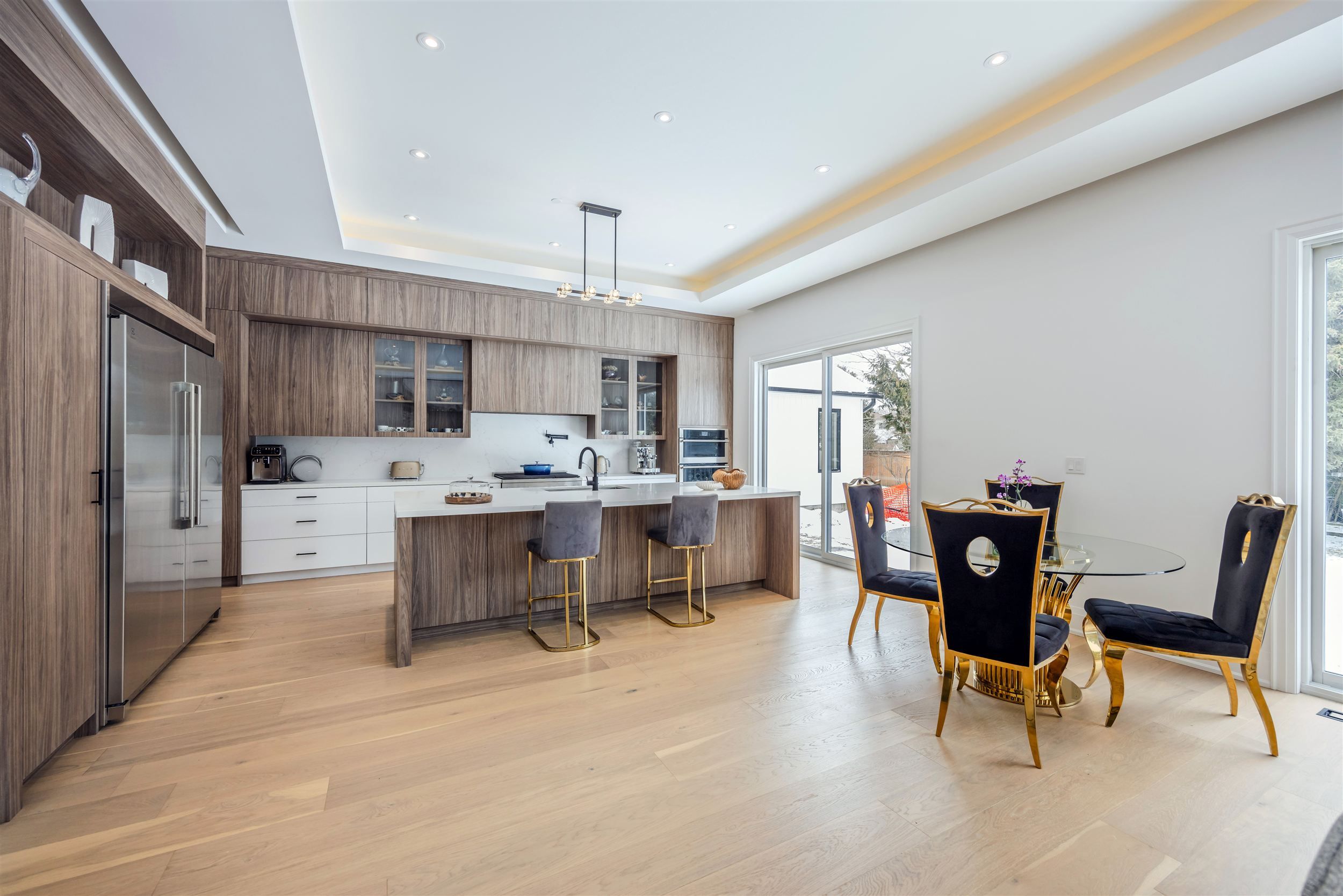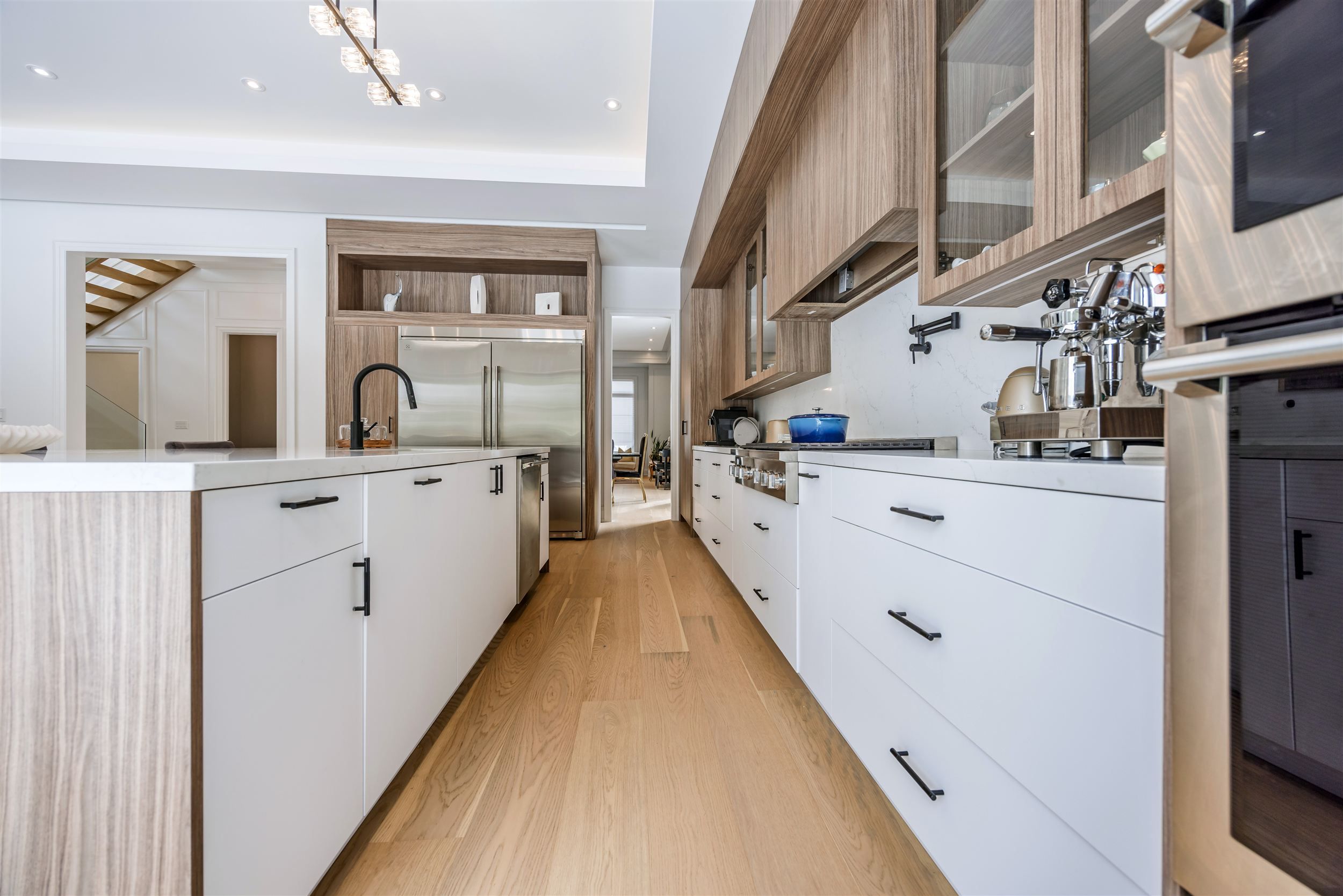 • High-end kitchen featuring a large island and built-in appliances.