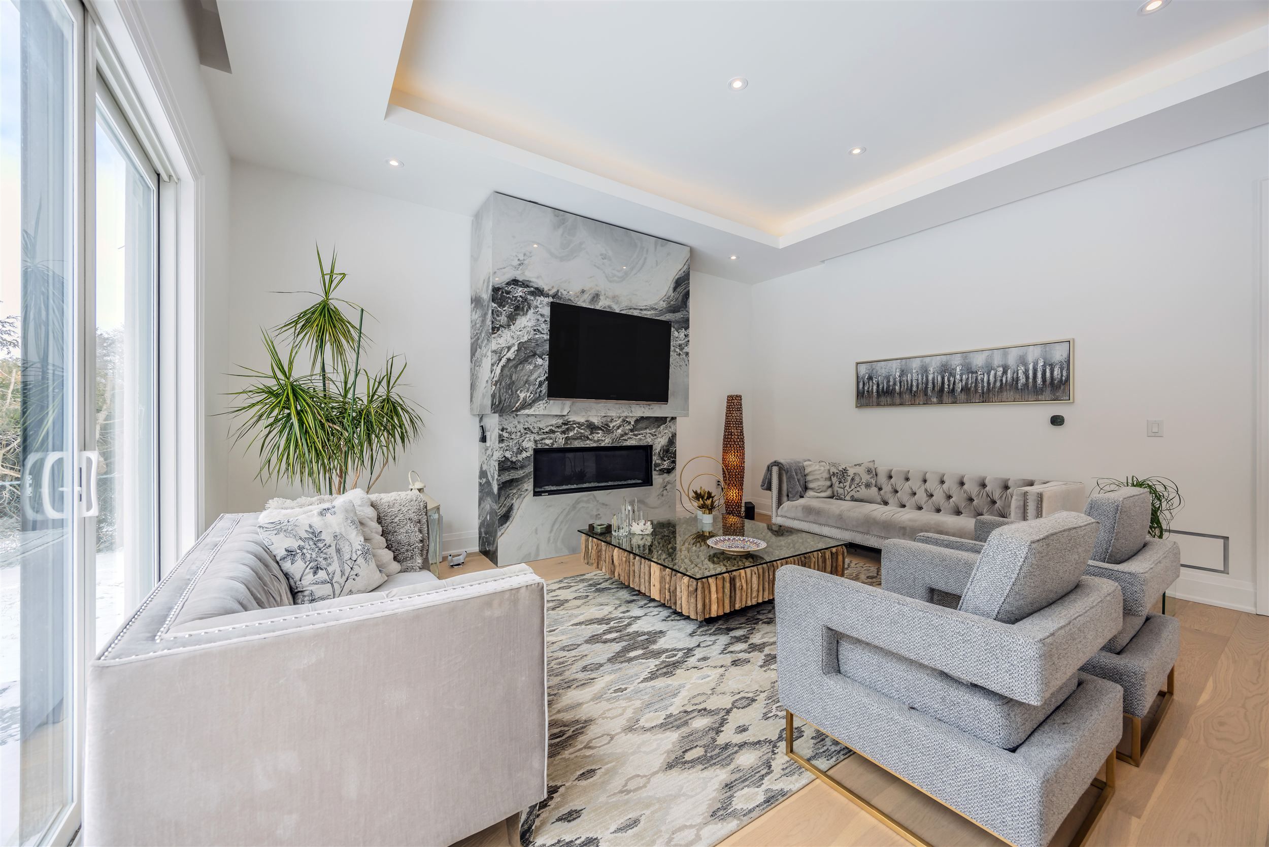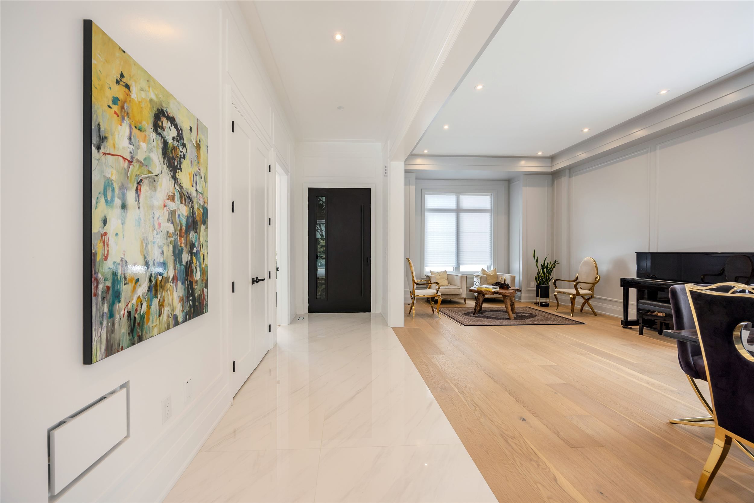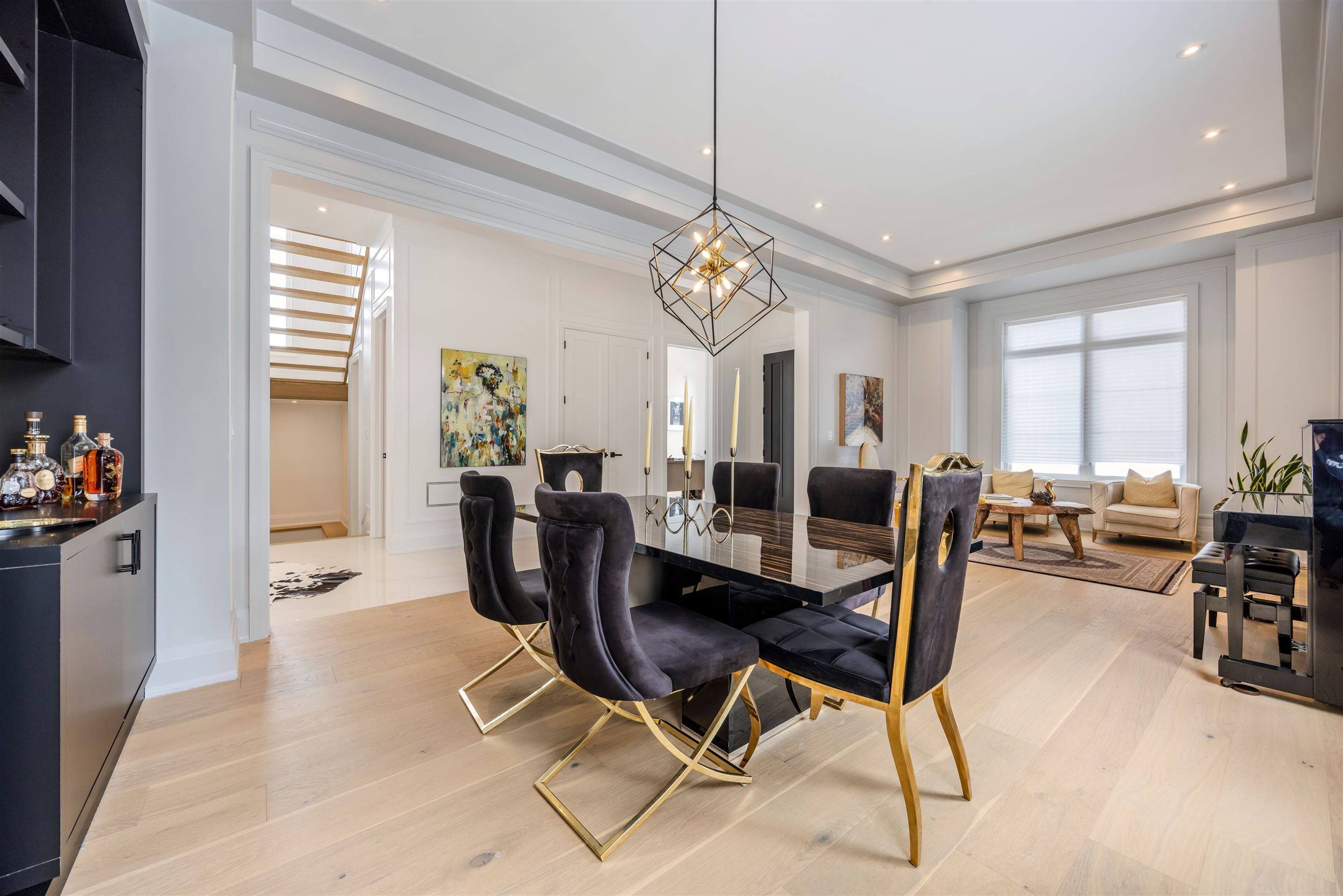 • Open concept design with 11 ft ceilings, creating a spacious feel.