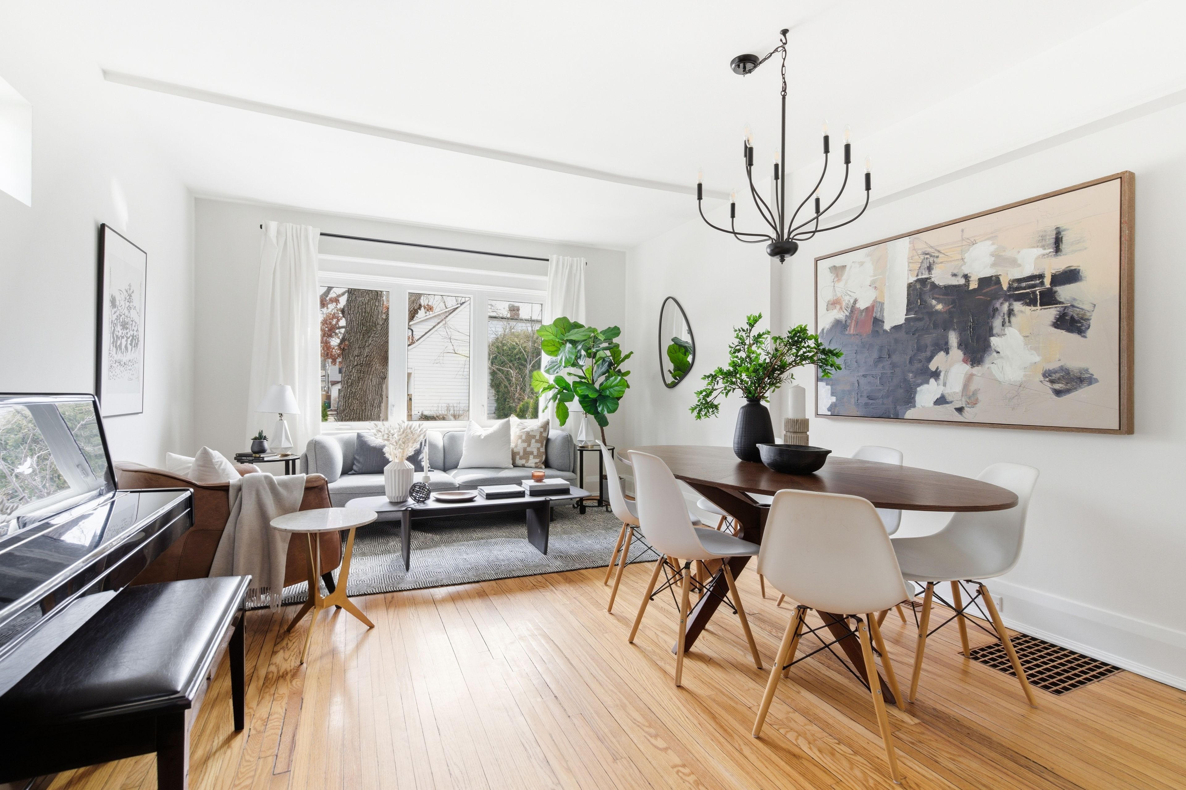 • Open-concept living and dining with hardwood floors and natural light.