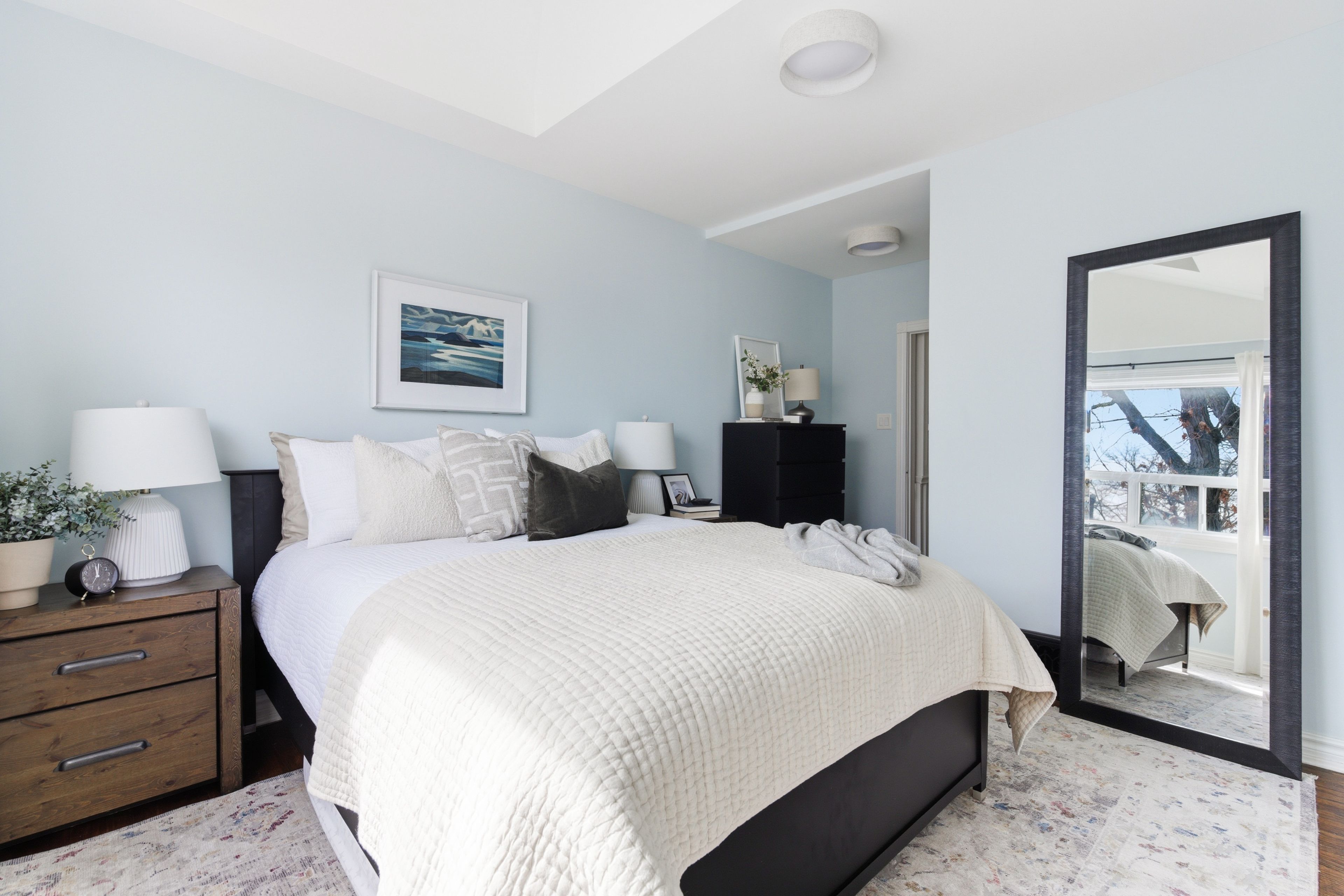 • Spacious primary bedroom with vaulted ceilings and plenty of closet space.
