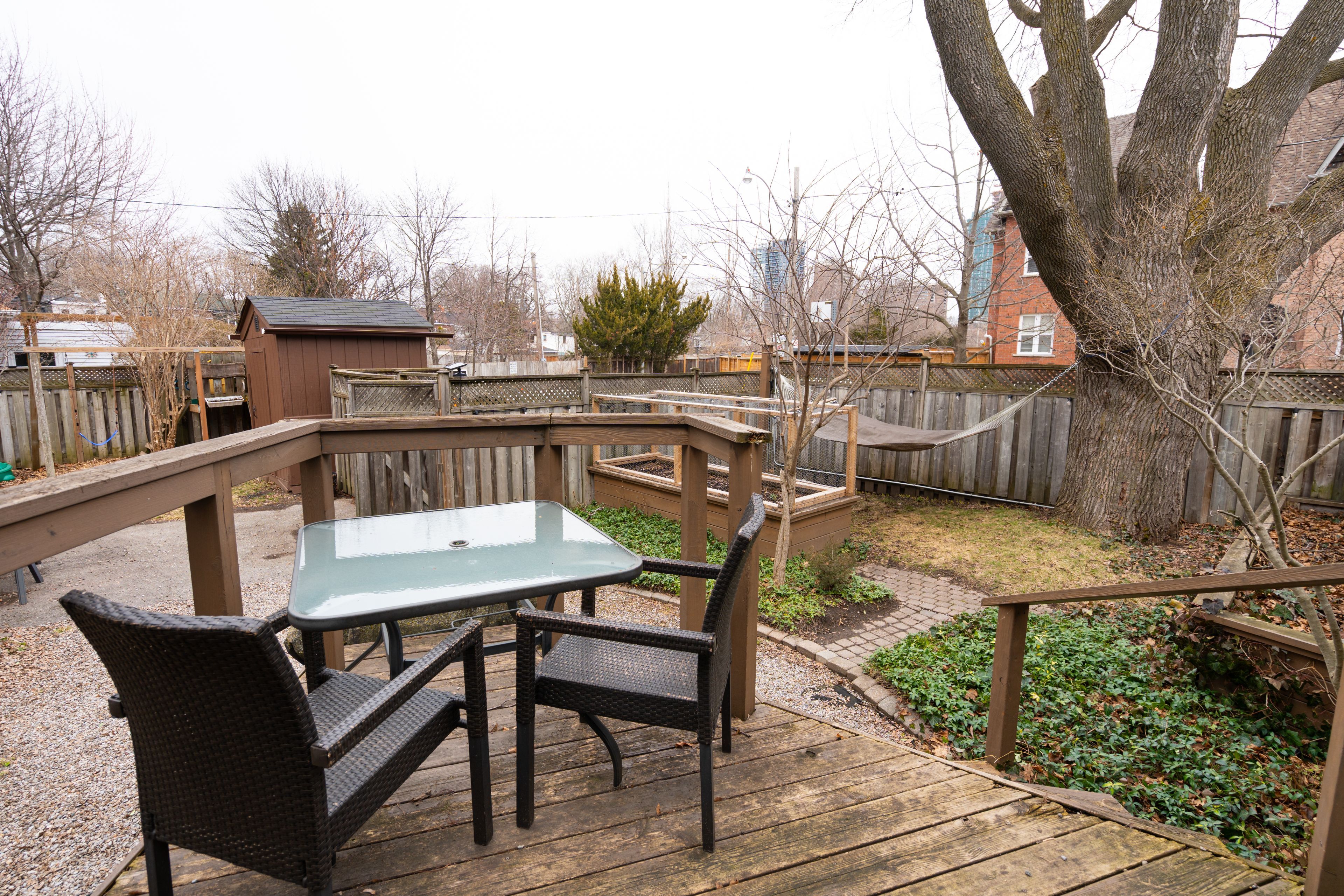 • Stunning outdoor space with hammock, veggie garden, and unique playscape.