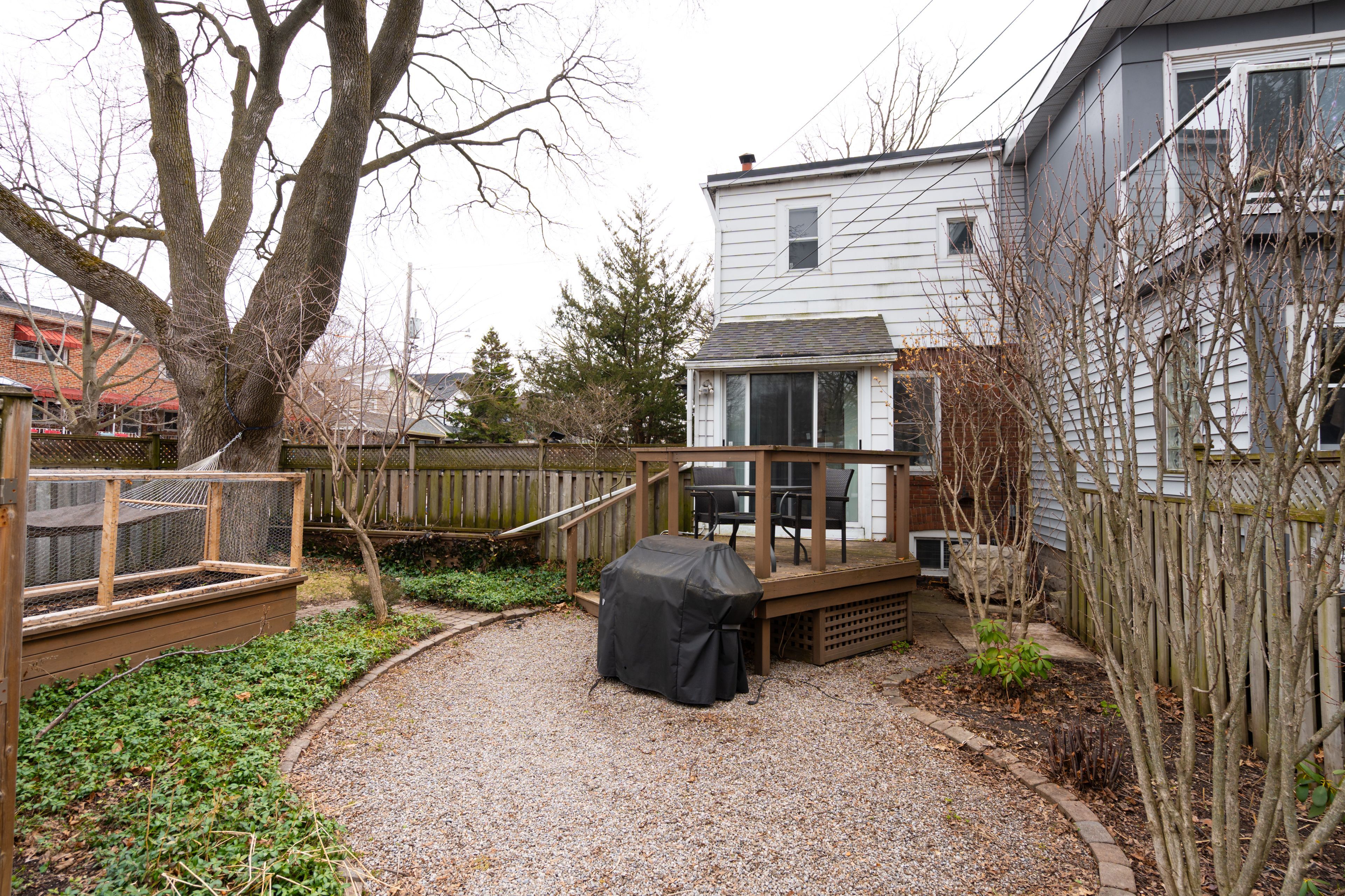 Seamless blend of character and modern upgrades in toronto's upper beach! Open-concept living and dining rooms featuring hardwood floors and stained glass windows that bring in natural light. Renovated kitchen (2026) with stone countertops, stainless steel appliances, and pantry, flowing into a bright sunroom with built-in shelving and a walk-out to the backyard oasis. The outdoor space is a standout, featuring a hammock area, custom veggie garden, extensive landscaping, and a unique treehouse-style playscape, ideal for families and entertaining. Upstairs, the spacious primary bedroom easily fits a king bed and includes vaulted ceilings, a skylight with rain sensor and automatic blind, and a large double closet. The second bedroom is a kid's dream or a perfect home office. Plus a finished basement with a cozy space to relax and watch movies, and a hidden nook for crafts! The laundry area is roomy and has the plumbing rough-in ready for a second bathroom. Extensive upgrades include: full electrical rewire and panel upgrade (2016), replacement of lead pipes with copper, replacement of clay pipe under basement, new roof (2020), renovated kitchen (2026), updated bathroom (2026), and freshly weatherproofed shed with new shingles and ventilation (2025). Located in a tight-knit upper beach community and the coveted kimberley jr school district. Just an 8-minute walk to danforth go (to union station in approx 12 minutes), 10-minute walk to ttc subway, and steps to the streetcar! A mere block away from norwood park with its tennis courts! A move-in ready home that checks all the boxes with strong community roots and exceptional outdoor living!