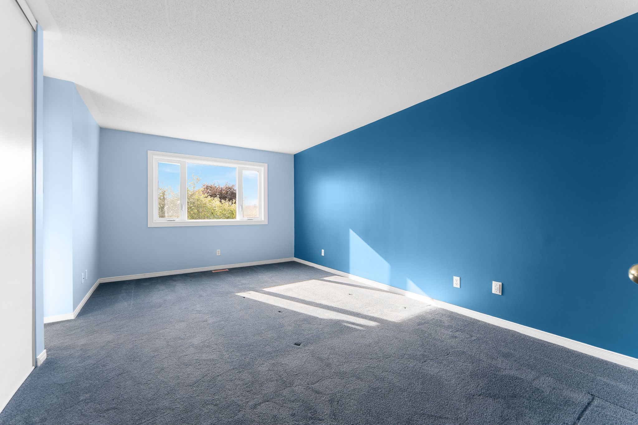 Welcome to this 1800 sq ft freehold townhome featuring hardwood flooring on the main level and a bright kitchen overlooking the landscaped backyard with mature gardens and a deck perfect for relaxing or entertaining. The finished basement offers extra living space with plush carpeting and a gas fireplace, perfect for a family room or home office. Upstairs features 3 spacious bedrooms, including a generous primary suite with a walk-in closet and a 4-piece ensuite bathroom. Situated in a family-friendly neighborhood, this home is close to both french and english schools, beautiful parks, public transit, entertainment, and all major amenities. This move-in-ready home is perfect for families, first-time buyers, or investors. The plumbing system has been updated, replacing poly b with pex piping 2025, portions of the interior repainted 2025, hardwood 2018, furnace, ac & windows 2012, roof 2013, fireplace 2019