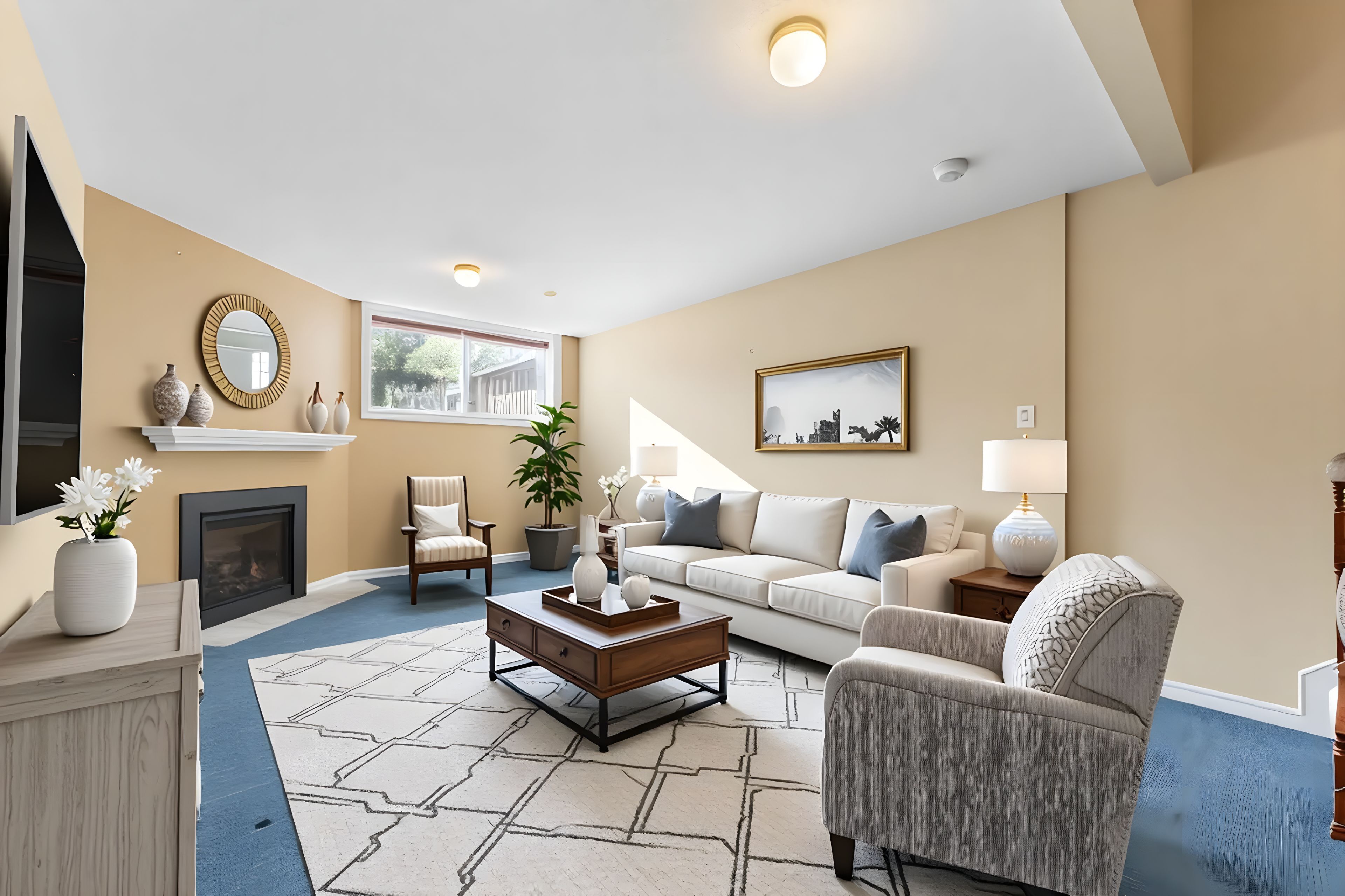• Finished basement with plush carpeting and a gas fireplace for extra living space.