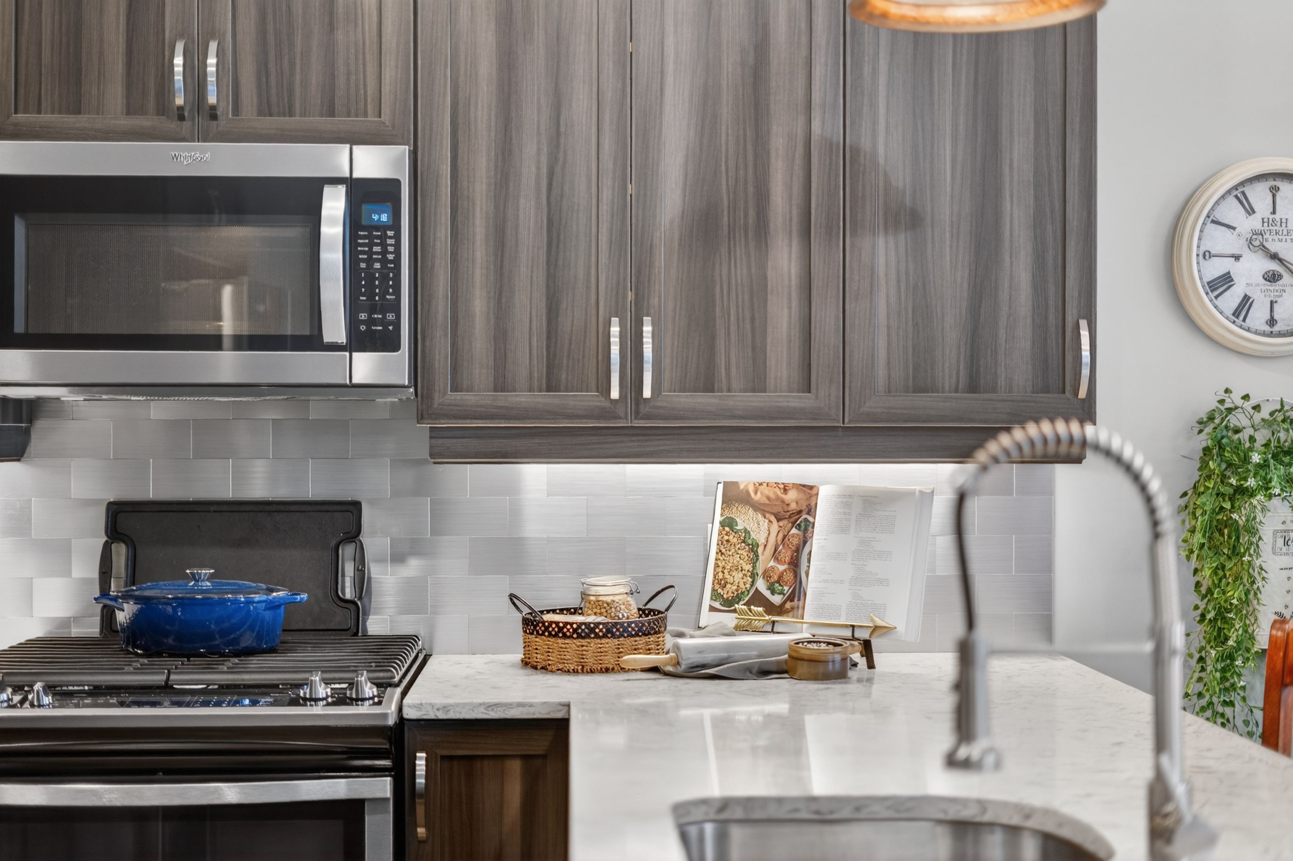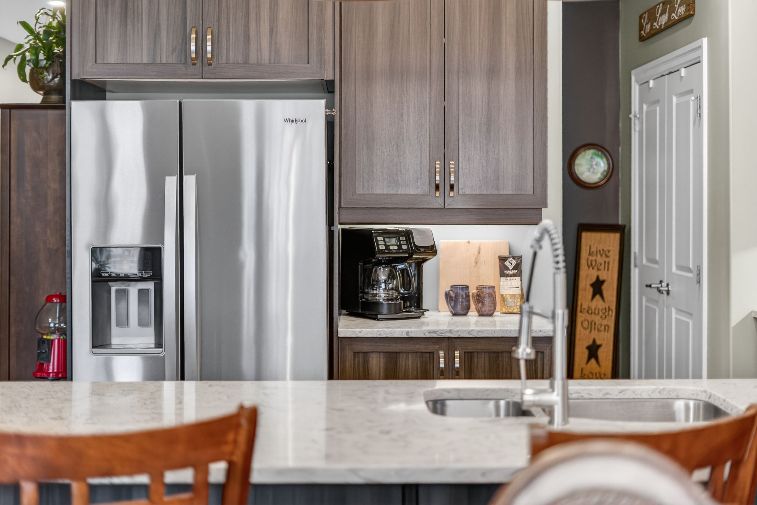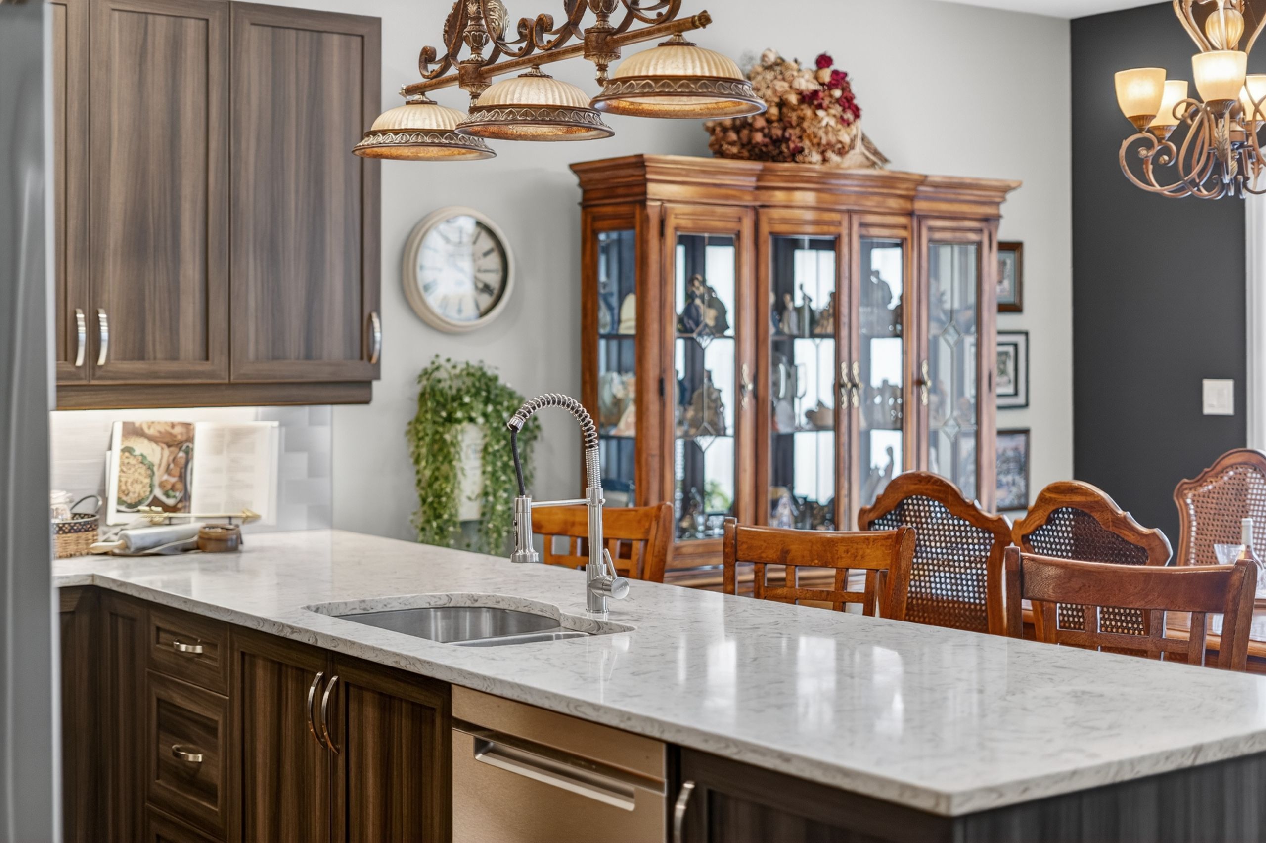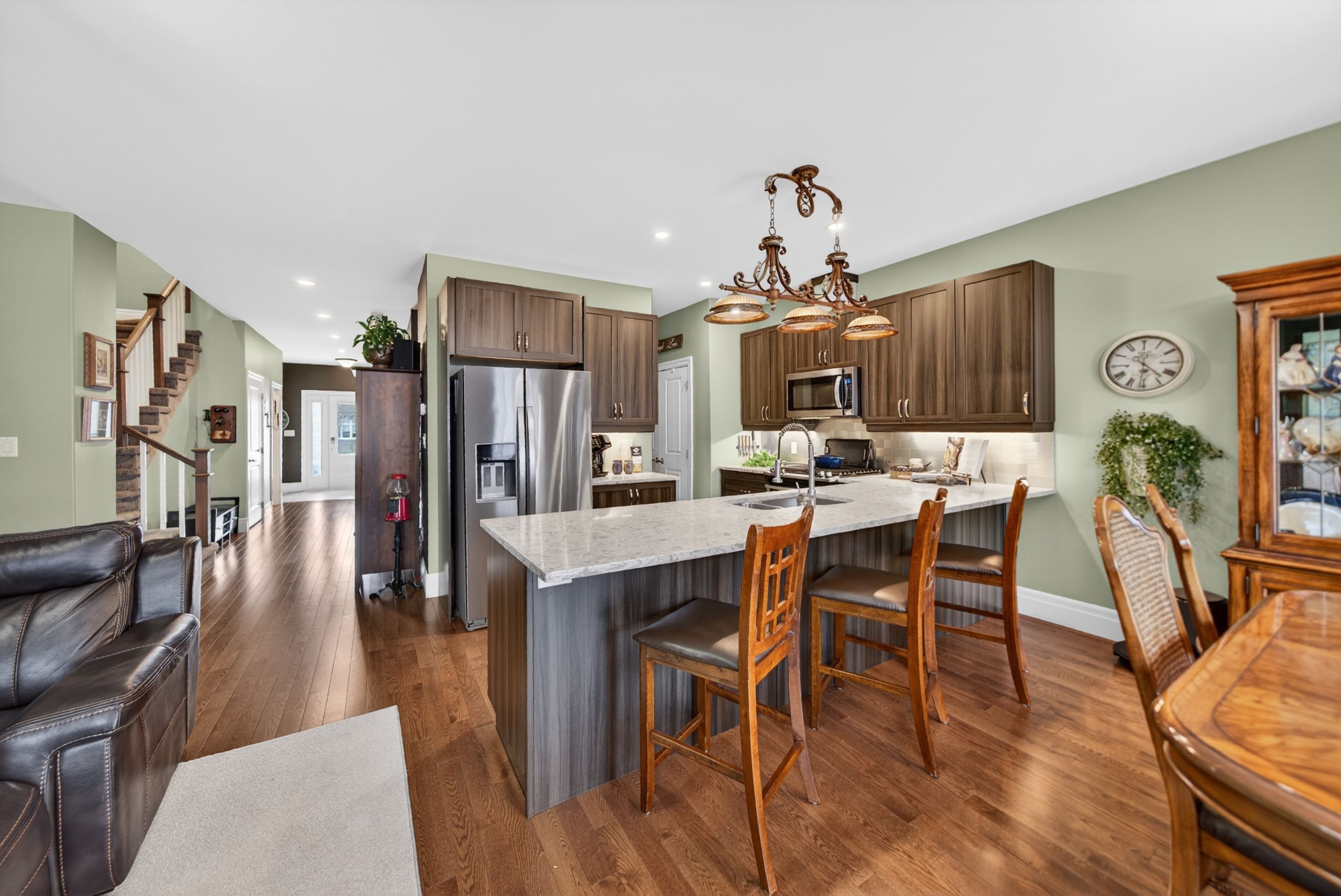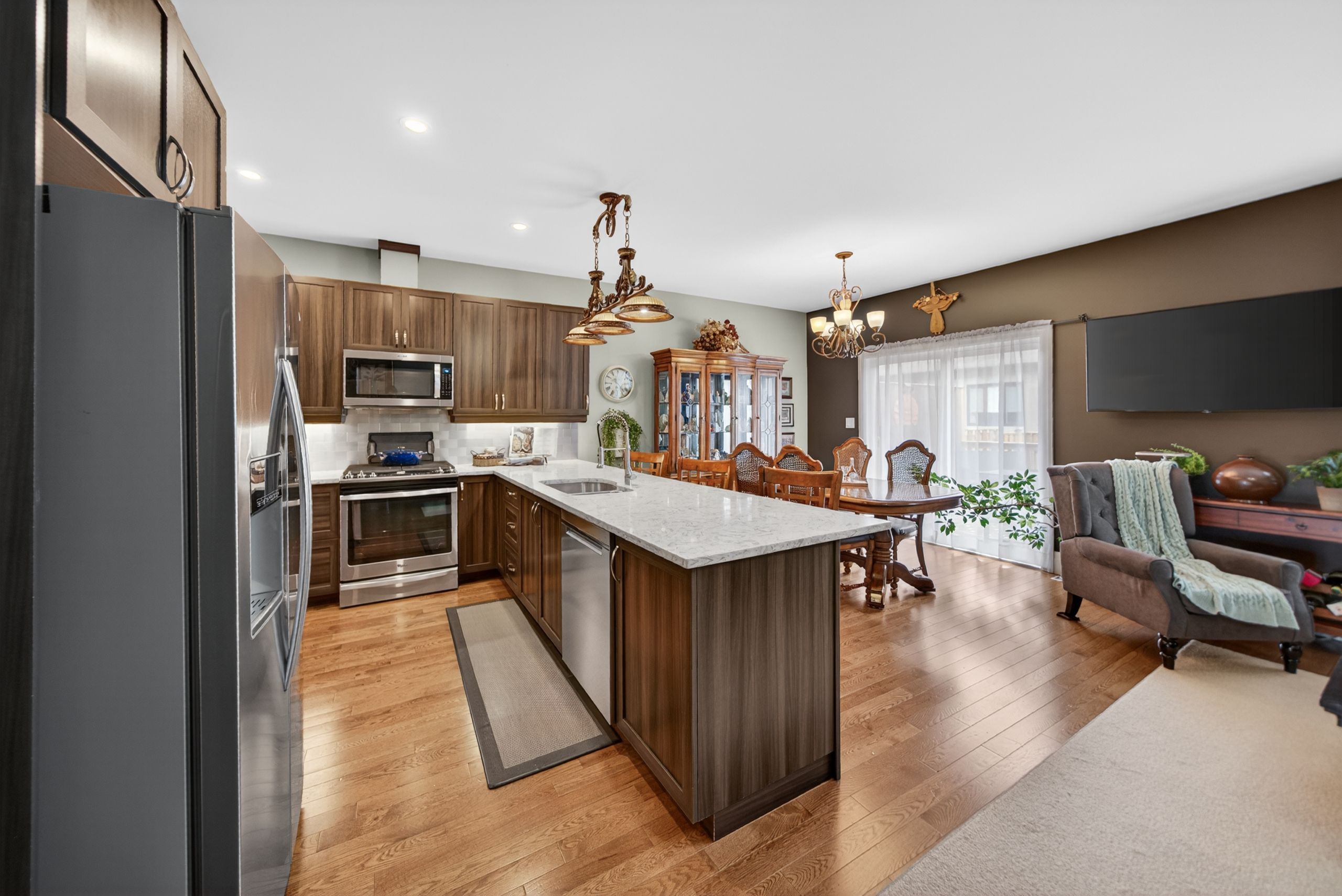 • Modern kitchen featuring granite countertops and seamless flow for entertaining.