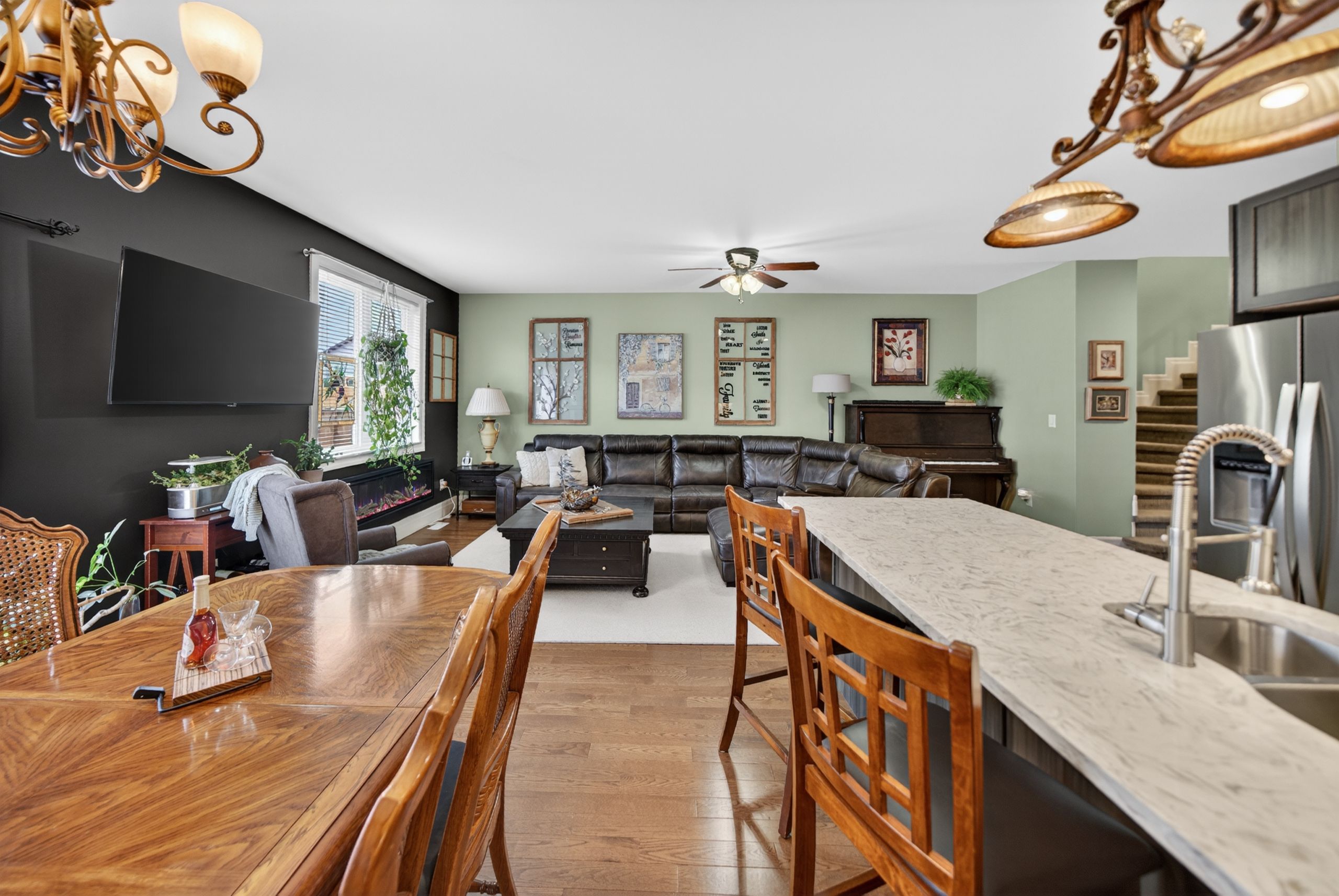 • Bright open-concept main floor with warm oak hardwood and 10-foot ceilings.