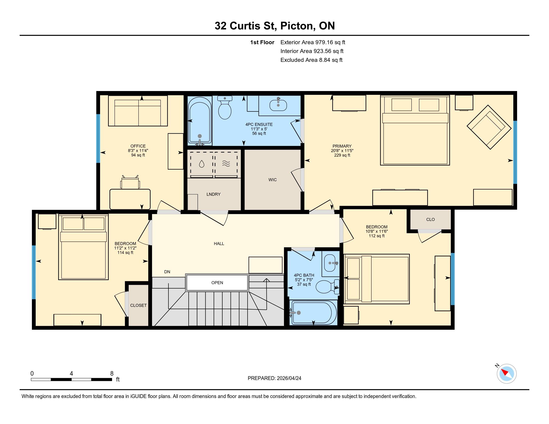 Welcome to 32 curtis drive, picton - a home that truly checks all the boxes. Located in the heart of picton, this beautifully designed home offers approximately 1,900 sq. Ft. Of thoughtfully planned living space, plus a fully finished basement-perfect for families, professionals, or investors alike. From the moment you arrive, you'll appreciate the landscaped front yard and inviting entrance that set the tone for what's inside. Step into a bright, open-concept main floor featuring warm oak hardwood flooring, soaring 10-foot ceilings, and a layout designed for both everyday living and entertaining. The kitchen is a true highlight, complete with granite countertops, ample workspace, and seamless flow into the dining and living areas. Whether hosting guests or enjoying a quiet evening, this space delivers comfort and connection. A convenient main floor powder room adds to the functionality. Upstairs, you'll find a spacious primary suite with a walk-in closet and private ensuite, along with two additional bedrooms and a versatile den-ideal for a home office or study space. Second-floor laundry provides added convenience for modern living. The fully finished basement offers exceptional flexibility with a self-contained in-law suite, featuring its own kitchen, full bathroom, bedroom, and living area-perfect for extended family, guests, or potential rental income. Step outside to a 12 x 12 deck and fully fenced backyard, creating a private outdoor space for relaxation or entertaining. Situated just a short walk to picton's shops, restaurants, and everyday amenities, this home combines comfort, style, and location in one exceptional package. Don't miss your opportunity to call prince edward county home.