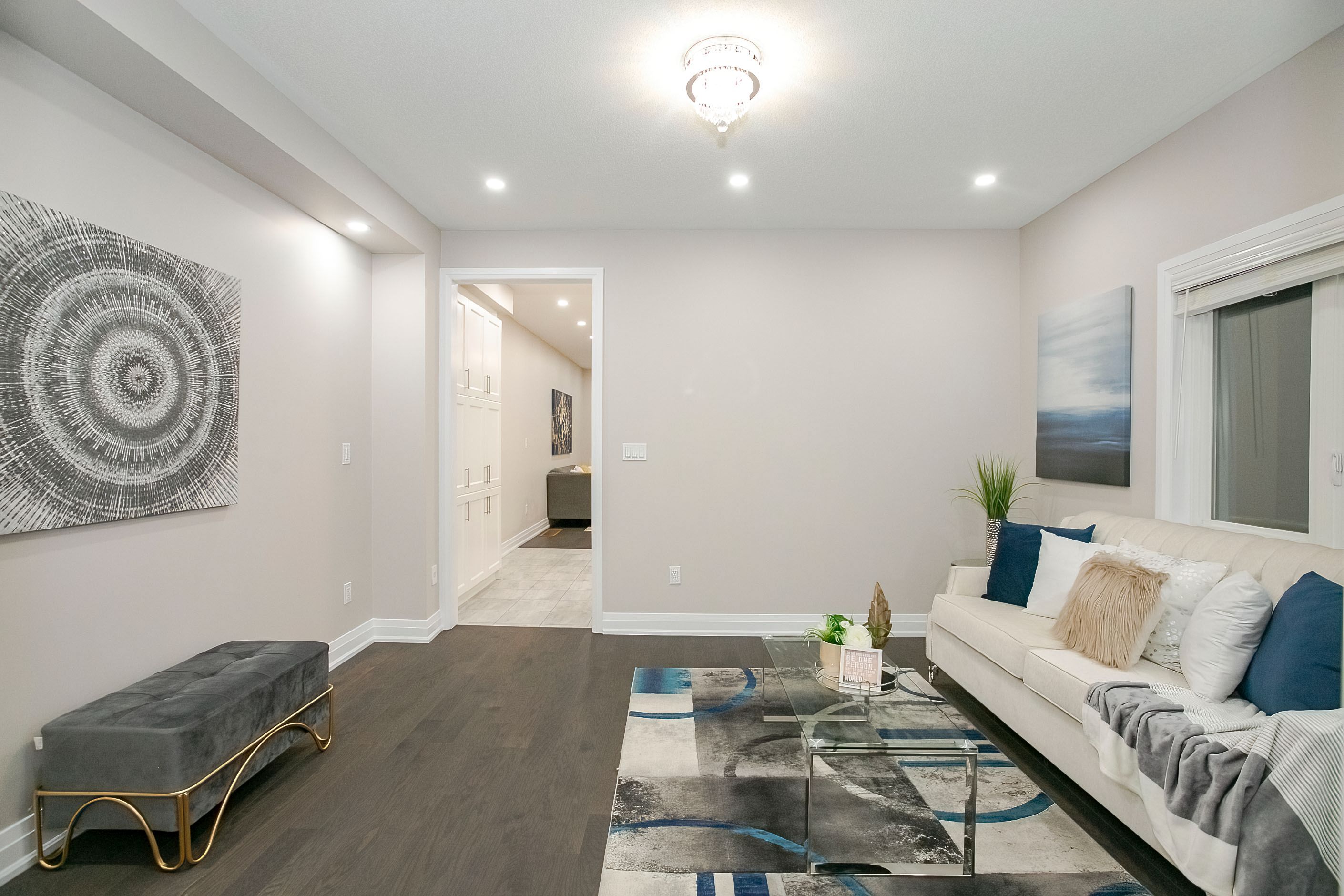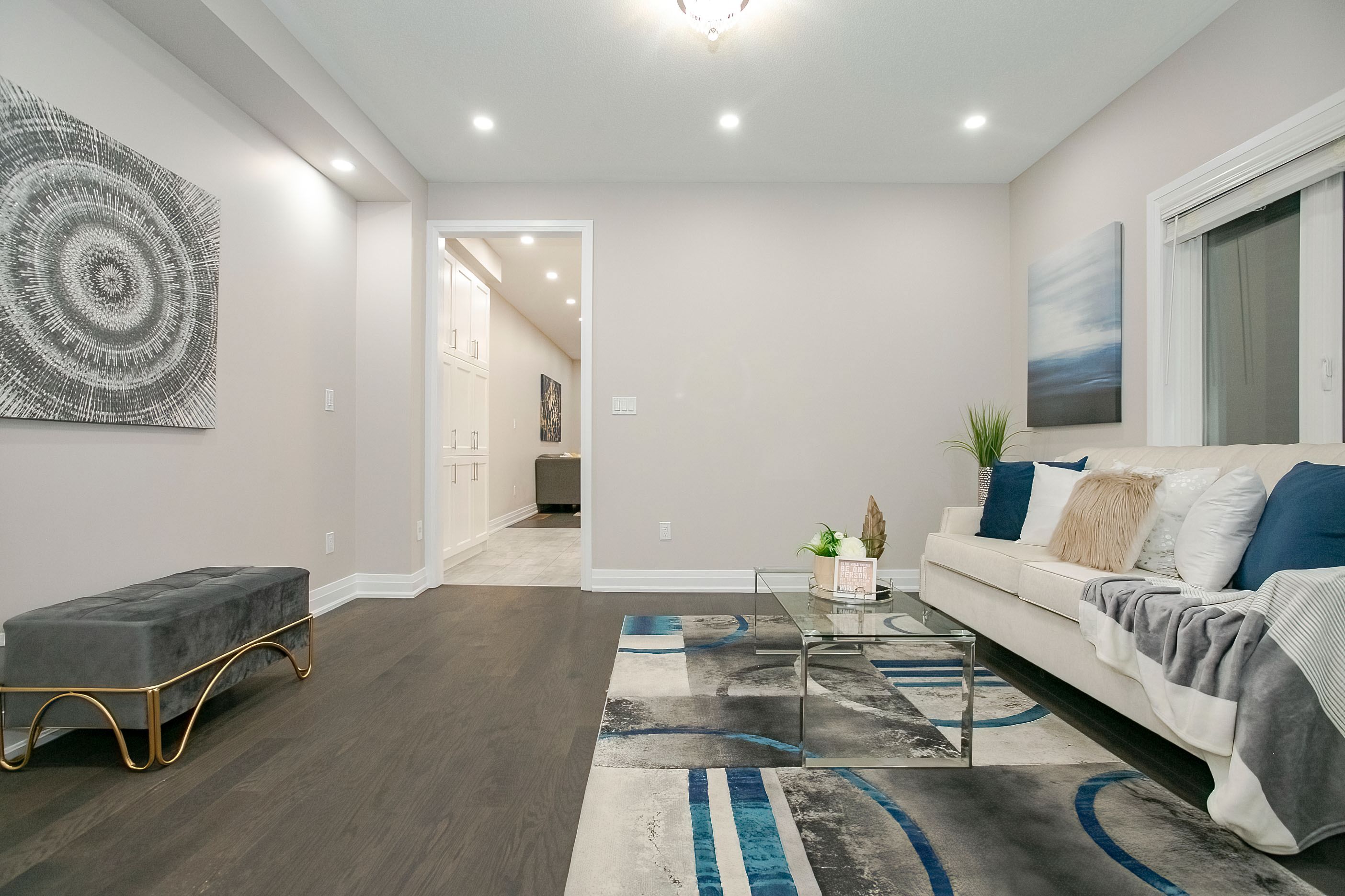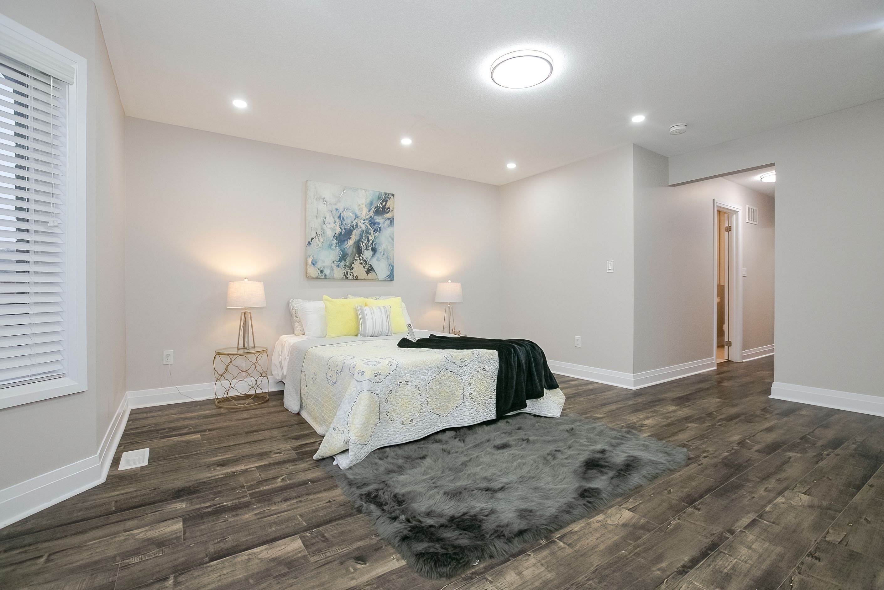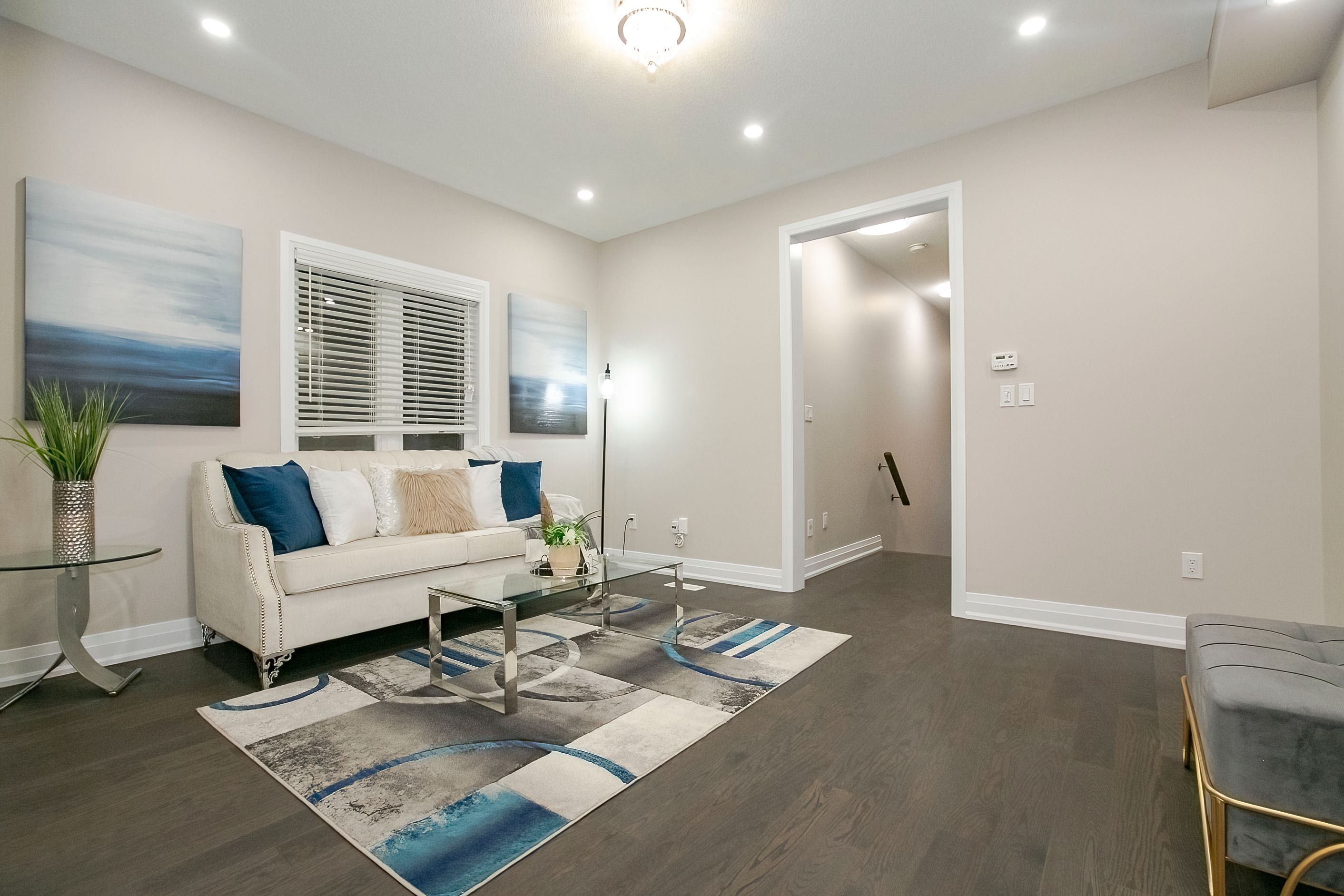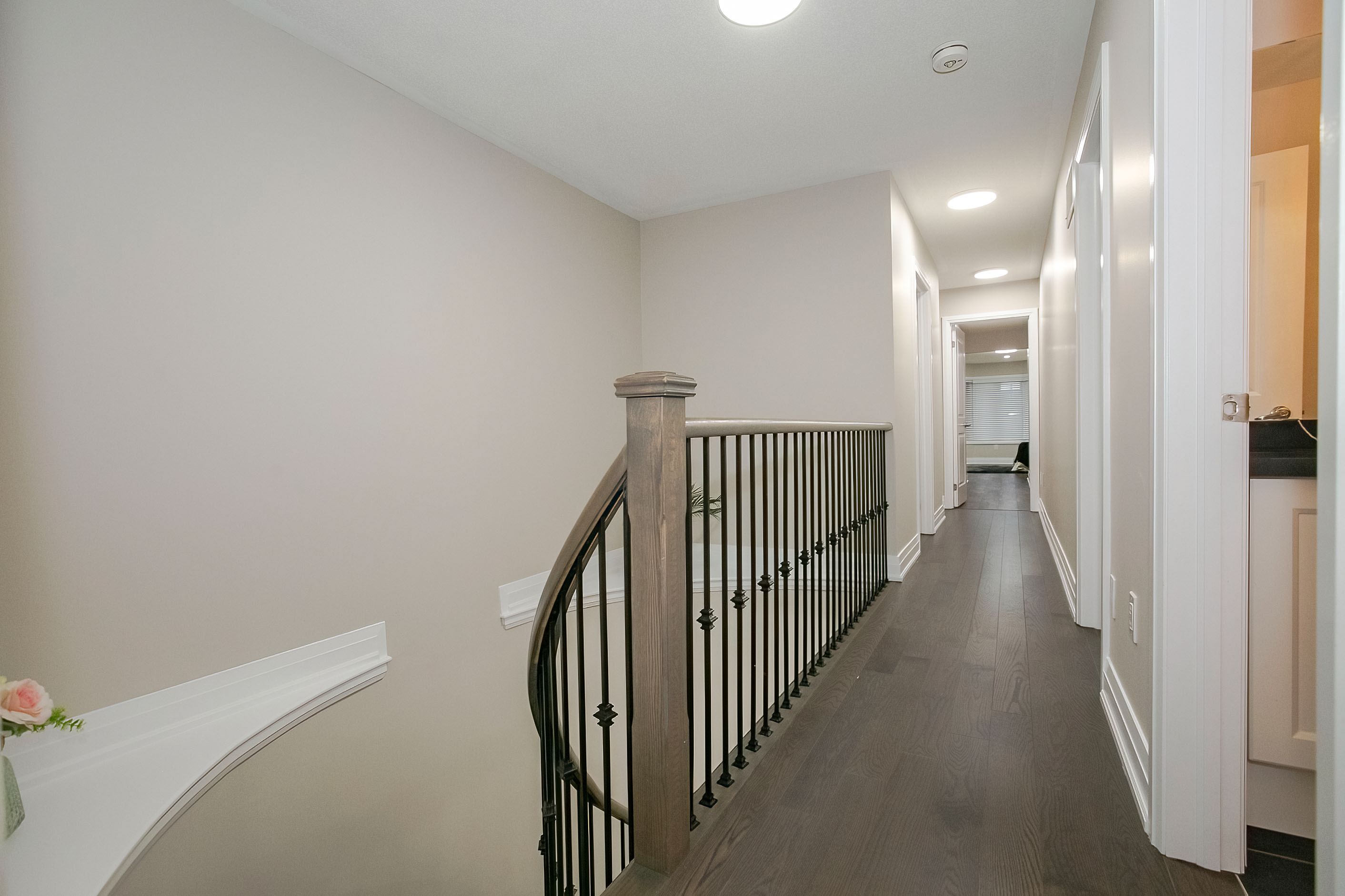 Welcome to this stunning 2-storey freehold townhouse by ashley oaks, offering approximately 2,300 sq. Ft. Of above-grade living space in one of bram west's most sought-after neighborhoods. This beautifully maintained, carpet-free home features soaring 9-foot ceilings on the main floor, enhanced with elegant pot lights that create a bright and modern ambiance throughout. Enjoy the versatility of separate living and family rooms, including a spacious family room with a cozy fireplace-perfect for both entertaining and everyday living. Elegant chandeliers in the living room, family room, and kitchen island add a touch of sophistication and luxury. The modern white high-gloss kitchen is a true showstopper, featuring upgraded quartz countertops, sleek black stainless steel appliances, and ample cabinetry for all your storage needs. Hardwood flooring enhances the main level, while the upper floor features durable laminate throughout. Upstairs, you'll find four generously sized bedrooms, all enhanced with pot lights, including a massive primary retreat with a private ensuite and his-and-hers walk-in closets. Quartz countertops continue in all washrooms, complemented by newly upgraded vanity lighting for a fresh, contemporary feel. The second bedroom also offers a walk-in closet, while the fourth bedroom features a walk-out to a private balcony. A convenient second-floor laundry room adds both functionality and extra storage. Flooded with natural light, this home offers a warm and inviting atmosphere from top to bottom. The fully fenced backyard provides privacy and space for outdoor enjoyment. Ideally located on a quiet street in a high-demand area, close to parks, public transit, and a large shopping plaza, with easy access to highways 401 & 407-perfect for commuters. A true move-in-ready gem loaded with upgrades-don't miss this incredible opportunity!