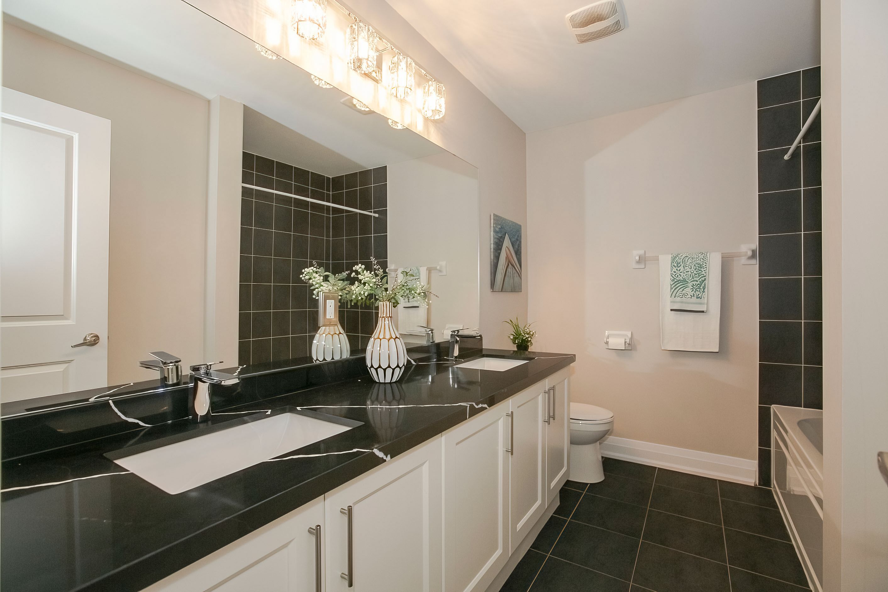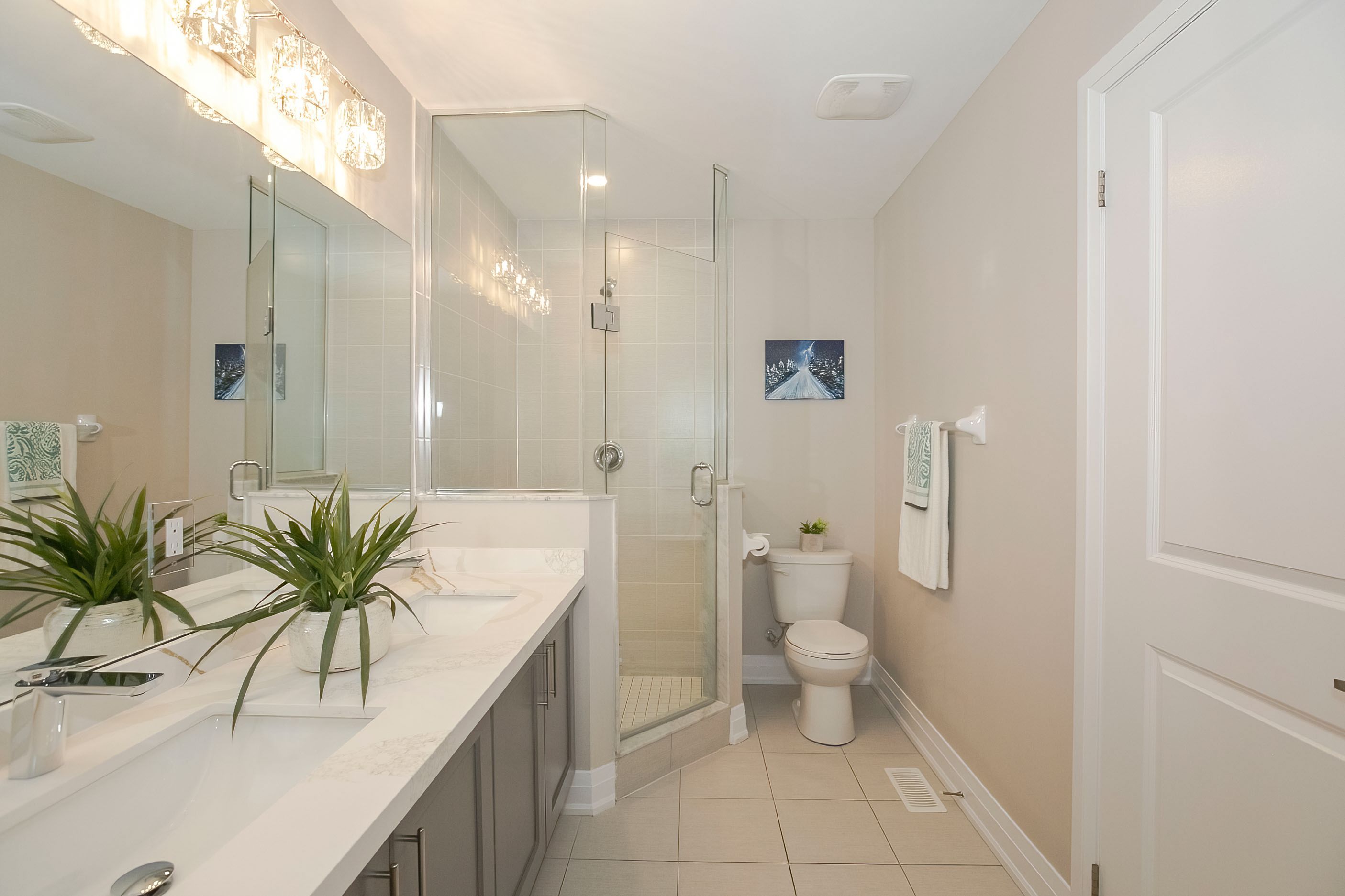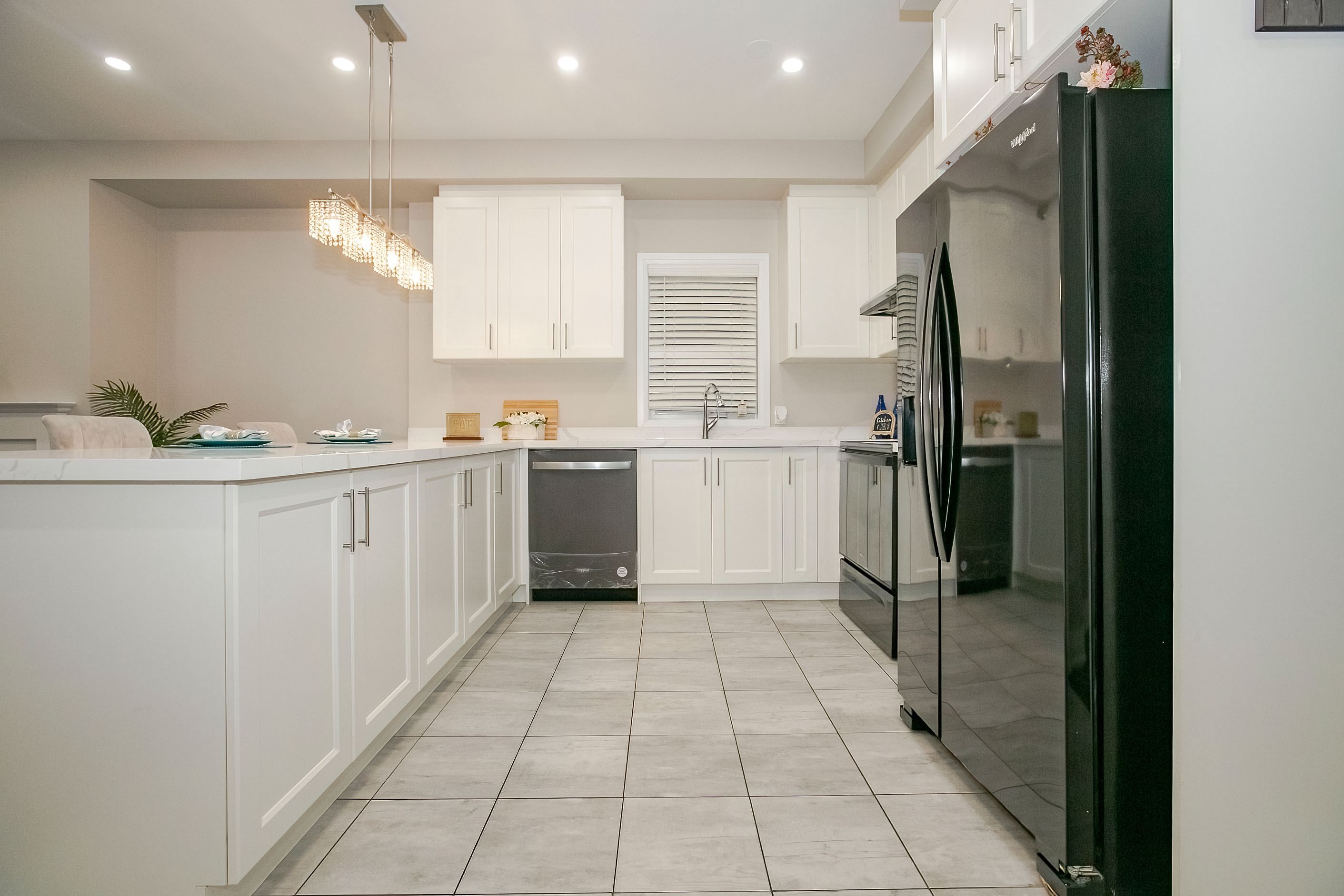 • Modern kitchen with quartz countertops and upgraded appliances for convenience.