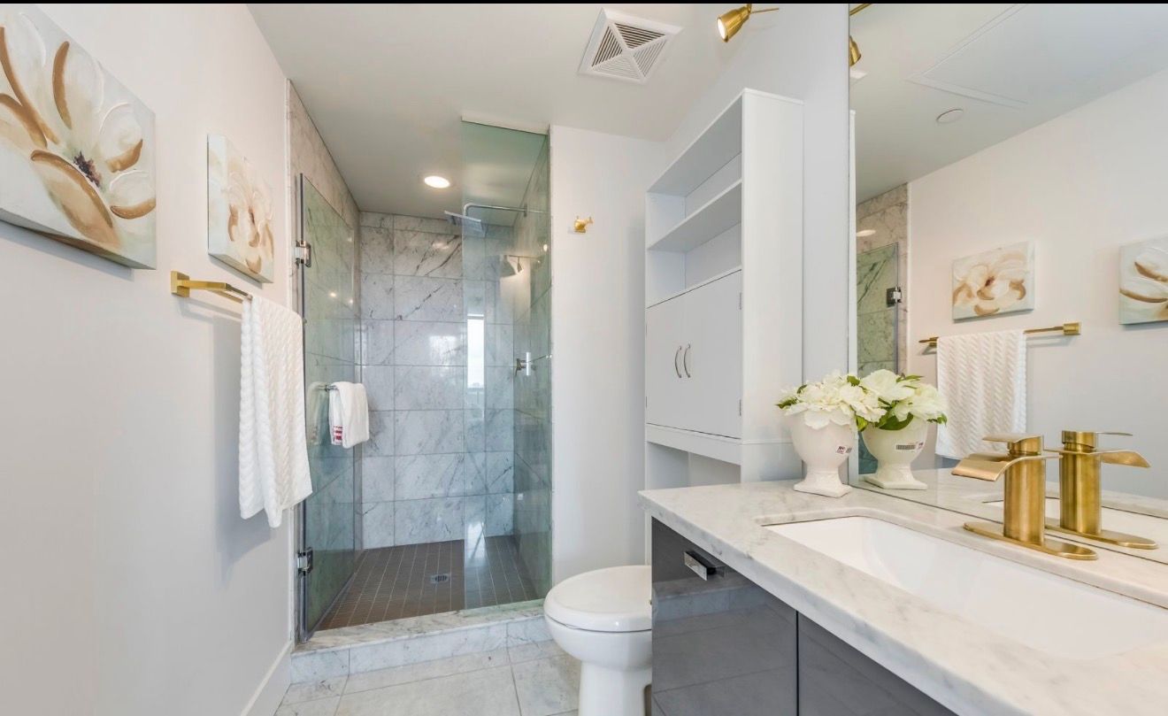 • Bright 2-bedroom, 2-bath suite with south exposure and city views.