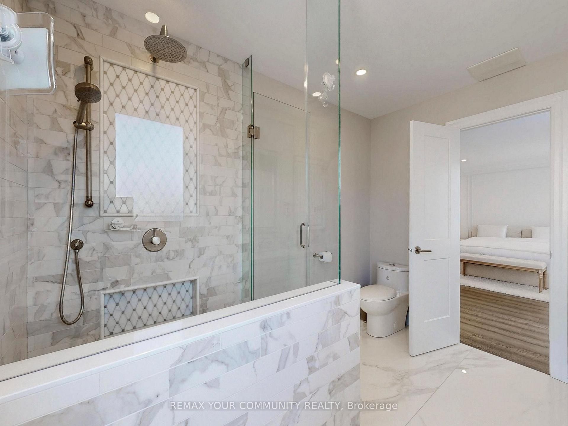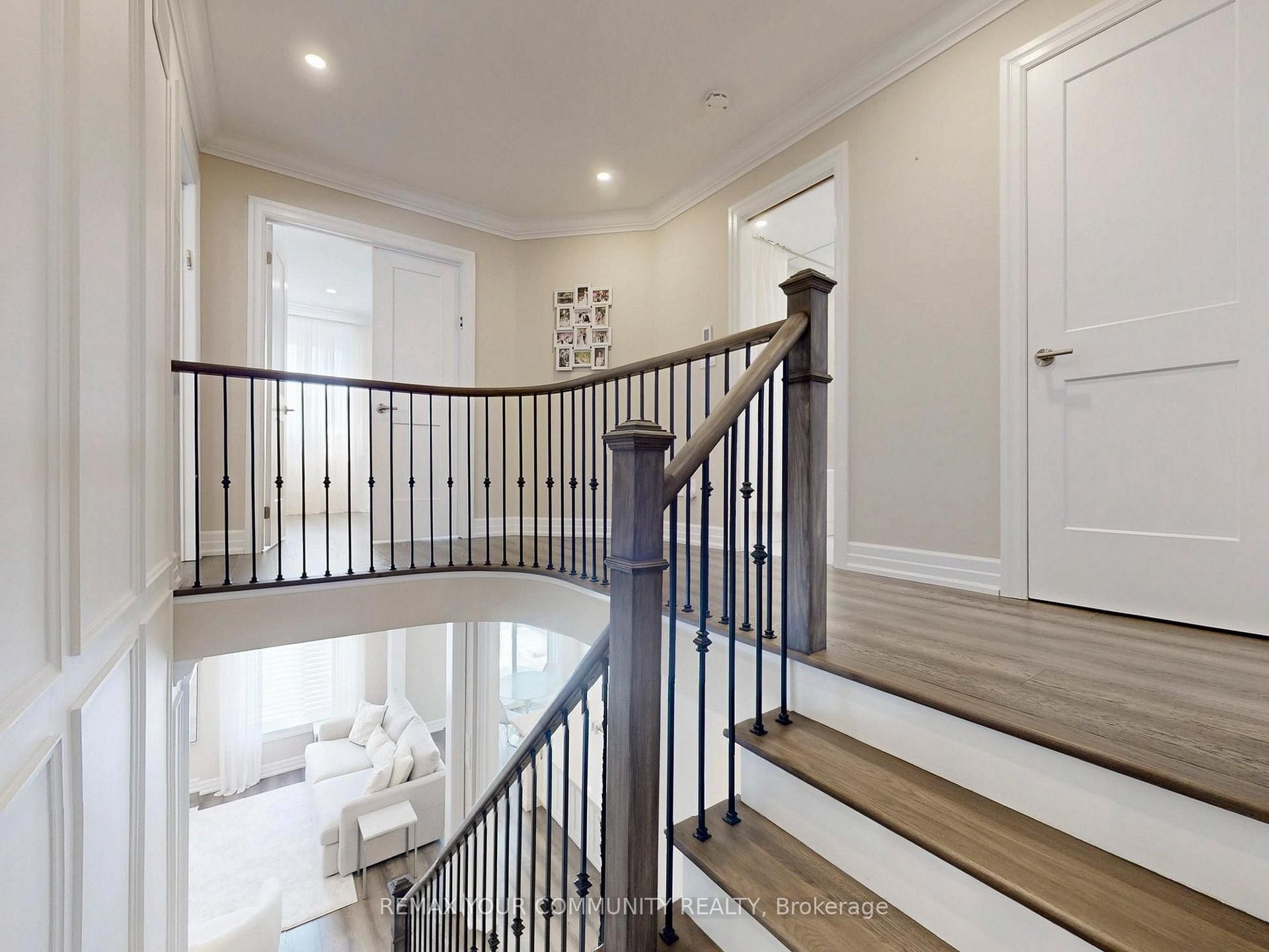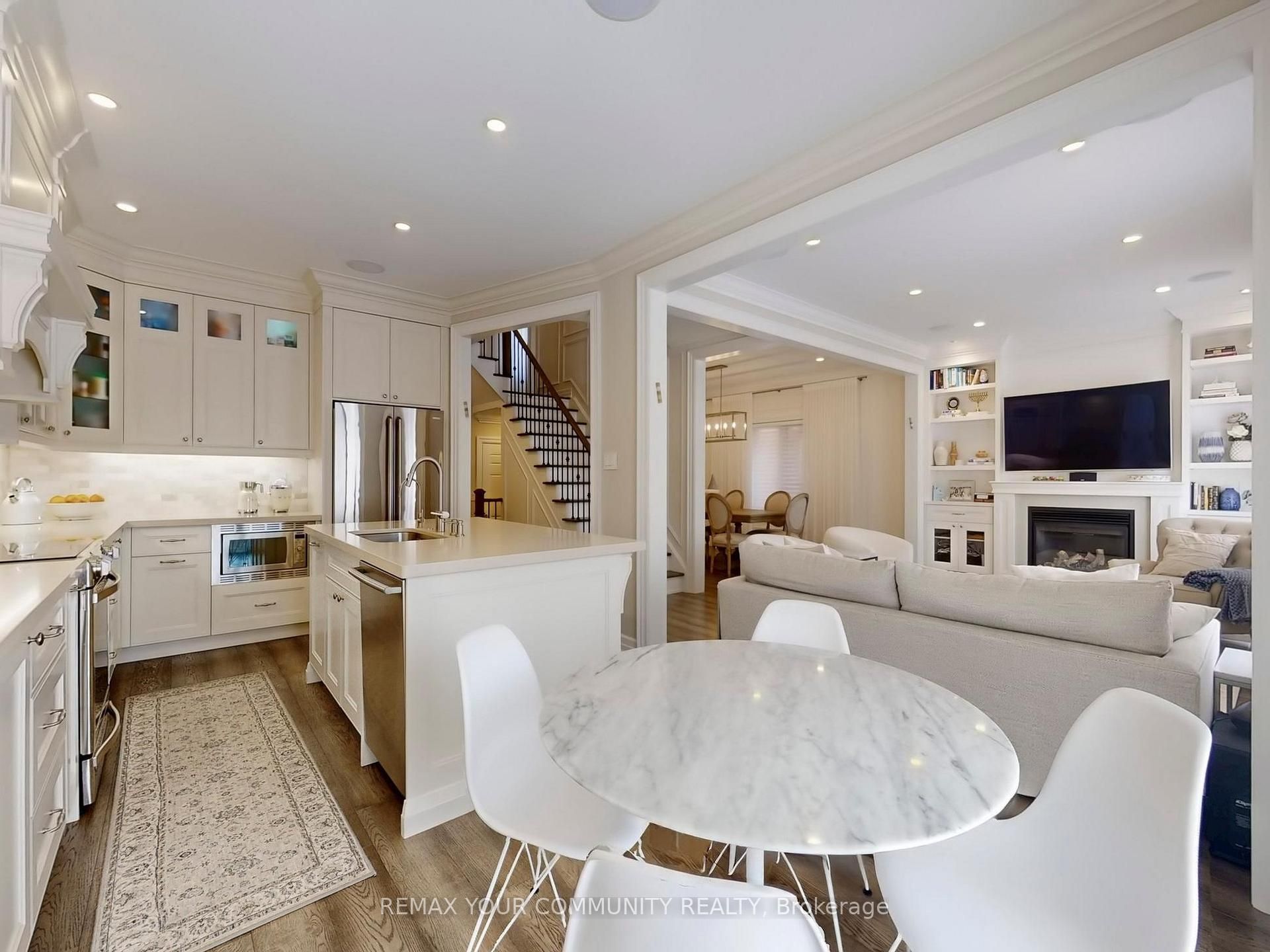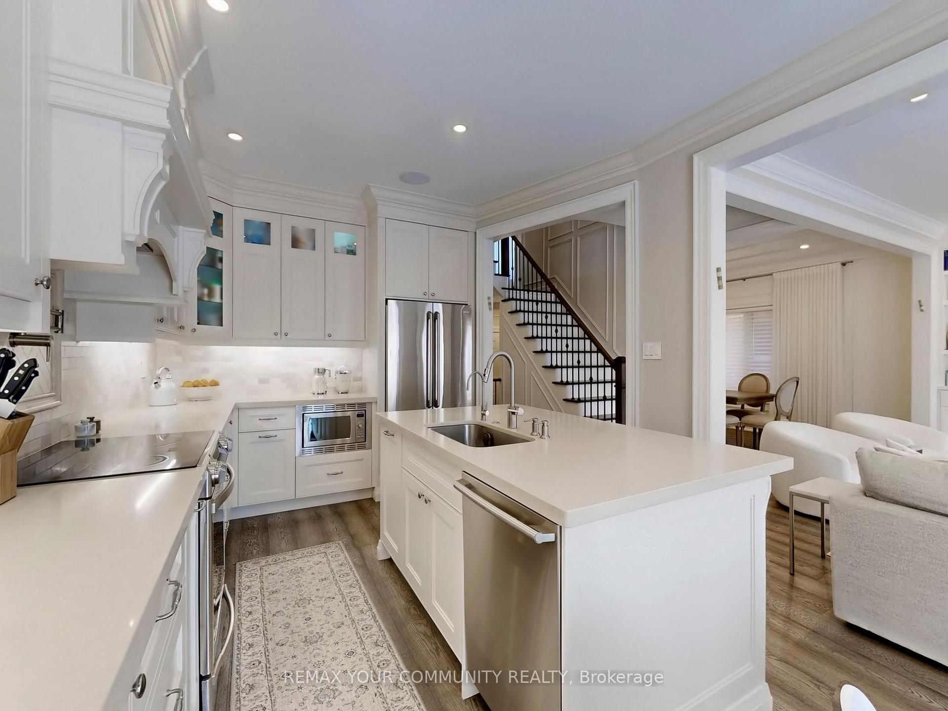 Beautifully fully renovated home in one of the most desirable communities of thornhill woods! This stunning home showcases exceptional craftsmanship, modern finishes, and thoughtful upgrades throughout. The open-concept kitchen features caesarstone countertops, a large center island with breakfast bar, built-in pantry, spice racks, corner pull-out organizers, pot filler, and under-cabinet lighting, overlooking a bright breakfast area and the backyard. The inviting family room offers a cozy fireplace, custom built-in shelving, built-in speakers, and pot lights throughout. A formal dining room with elegant wall wainscoting provides a perfect space for entertaining. The upper level features four spacious bedrooms with custom built-in closet organizers and beautifully renovated bathrooms with caesarstone countertops, including heated floors in the second-floor and basement bathrooms. A stylish staircase with decorative wall vainscoting adds architectural charm. The professionally finished basement offers a large modern recreation room, a modern bathroom , cold room, and a separate mirrored room with extra ventilation, ideal for a home gym, and plenty of storage spaces. Additional features include a murphy bed and a mini bar with built-in dishwasher,stove and extra refrigerator, perfect for guests and entertaining. The home also features a custom 36-inch fibreglass front entry door, smart switches on the main and second floors, and numerous modern upgrades. Exterior highlights include an extended stone driveway with no sidewalk, an epoxy-finished garage floor with tire racks, and a private backyard with interlock patio stone, mature privacy trees, and a gas bbq line. Ideally located within walking distance to parks, schools, and public transit, and just minutes to shopping plazas, restaurants, highway 7, and highway 407, offering both convenience and an exceptional lifestyle.