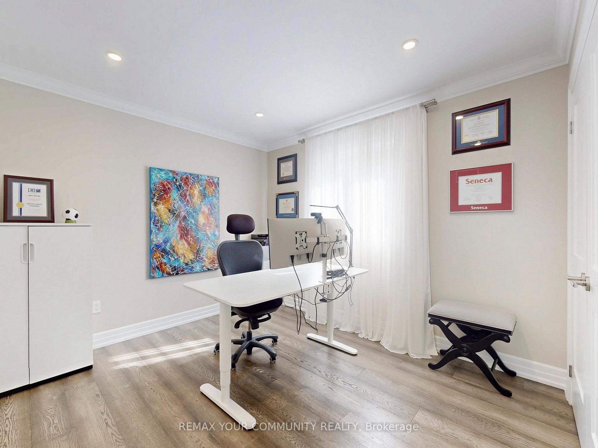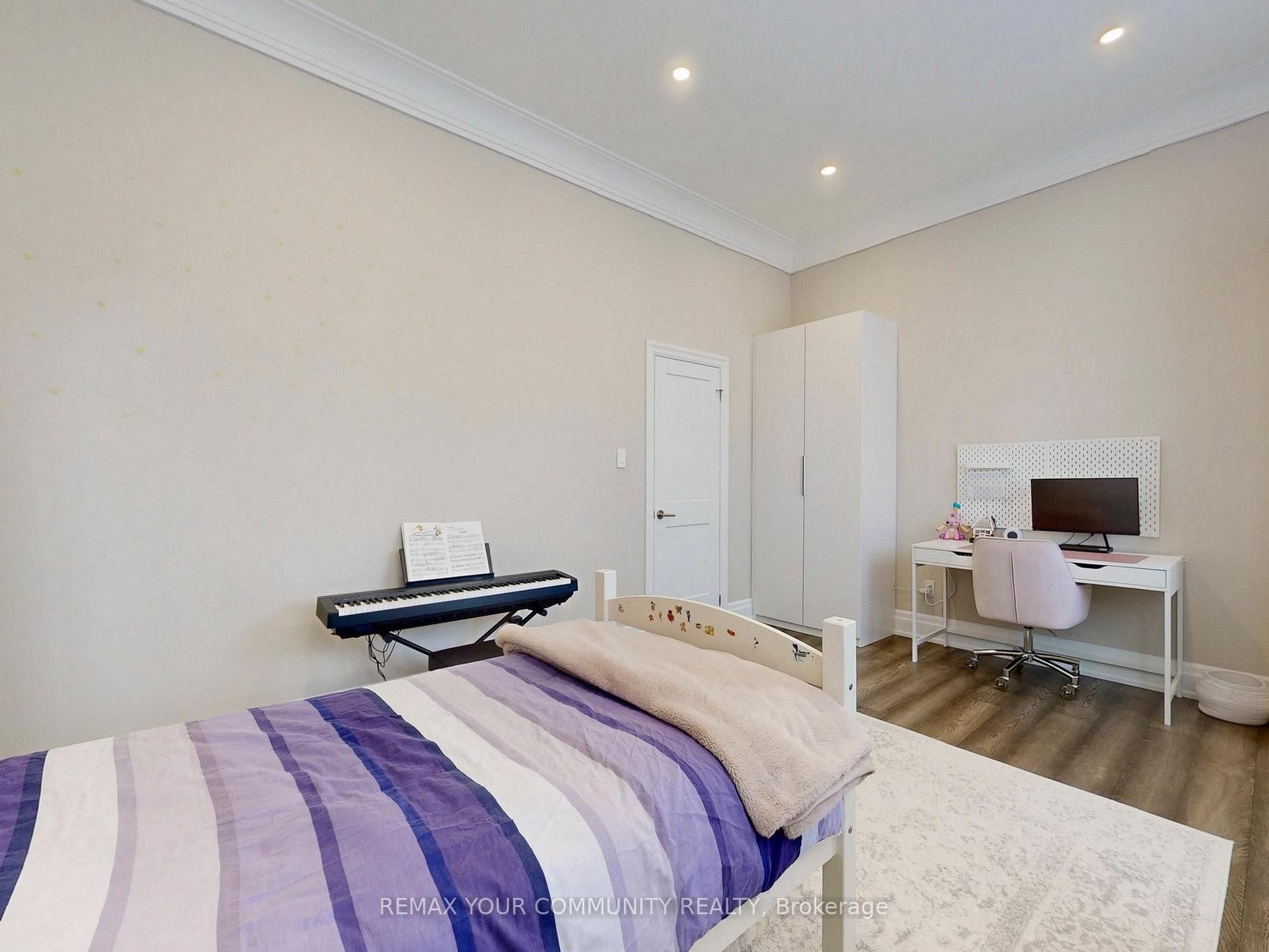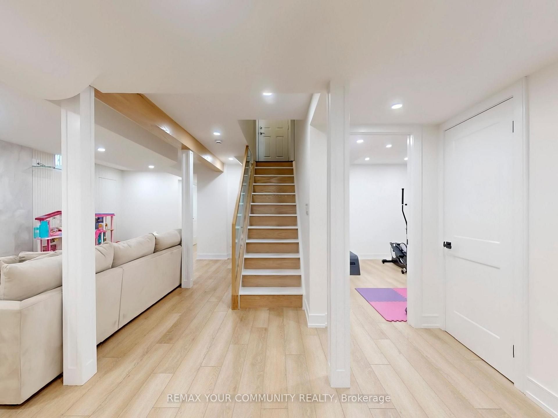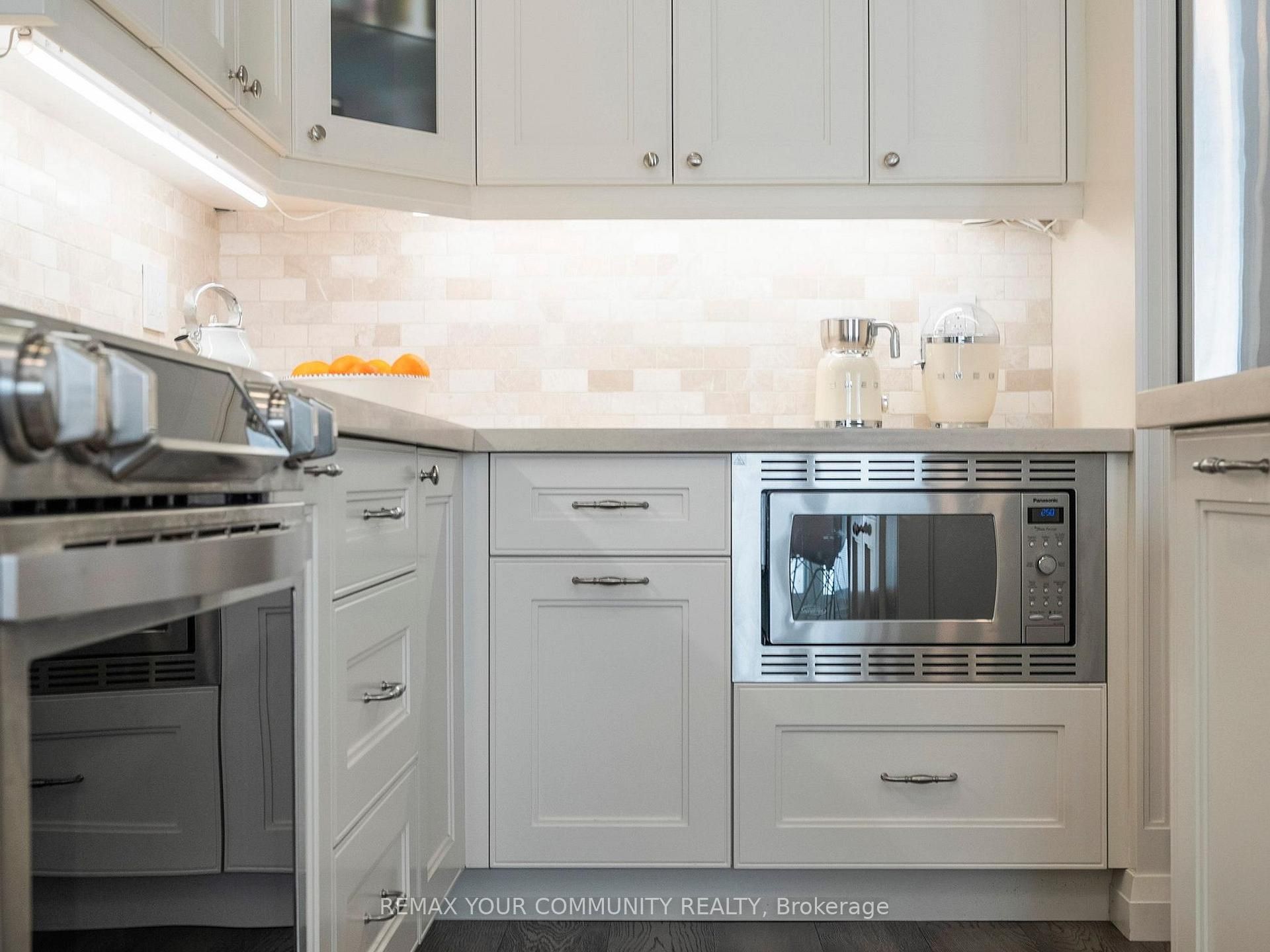 Beautifully fully renovated home in one of the most desirable communities of thornhill woods! This stunning home showcases exceptional craftsmanship, modern finishes, and thoughtful upgrades throughout. The open-concept kitchen features caesarstone countertops, a large center island with breakfast bar, built-in pantry, spice racks, corner pull-out organizers, pot filler, and under-cabinet lighting, overlooking a bright breakfast area and the backyard. The inviting family room offers a cozy fireplace, custom built-in shelving, built-in speakers, and pot lights throughout. A formal dining room with elegant wall wainscoting provides a perfect space for entertaining. The upper level features four spacious bedrooms with custom built-in closet organizers and beautifully renovated bathrooms with caesarstone countertops, including heated floors in the second-floor and basement bathrooms. A stylish staircase with decorative wall vainscoting adds architectural charm. The professionally finished basement offers a large modern recreation room, a modern bathroom , cold room, and a separate mirrored room with extra ventilation, ideal for a home gym, and plenty of storage spaces. Additional features include a murphy bed and a mini bar with built-in dishwasher,stove and extra refrigerator, perfect for guests and entertaining. The home also features a custom 36-inch fibreglass front entry door, smart switches on the main and second floors, and numerous modern upgrades. Exterior highlights include an extended stone driveway with no sidewalk, an epoxy-finished garage floor with tire racks, and a private backyard with interlock patio stone, mature privacy trees, and a gas bbq line. Ideally located within walking distance to parks, schools, and public transit, and just minutes to shopping plazas, restaurants, highway 7, and highway 407, offering both convenience and an exceptional lifestyle.