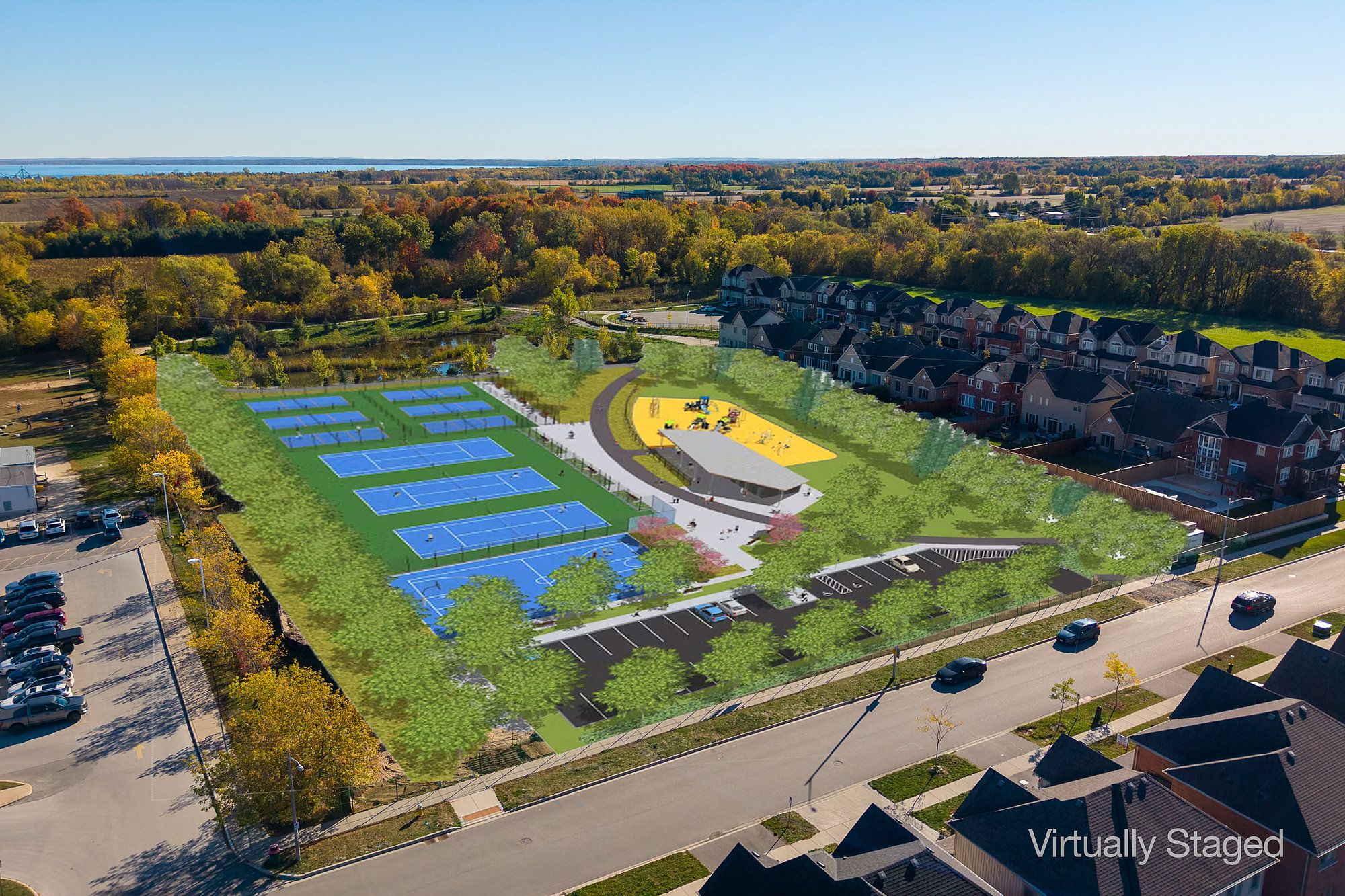 Prime location! A 2 minute walk to admiral collingwood public school and across from the newly designed, under construction wilson-sheffield community park with a full size basketball court, 3 tennis courts, 6 pickleball courts, a playground, gazebo and trails. This 4-bedroom, 3-bathroom, 2-storey home offers an exceptional family lifestyle in a desirable neighbourhood. The main floor features a primary bedroom with a private 5-piece ensuite, a second bedroom with a 4-piece semi-ensuite bath, and an inviting great room with vaulted ceilings that creates a bright and open living space. The upper level includes a spacious loft, two large bedrooms, and a 4-piece bathroom with a separate wc bath/toilet area. Offering 1,926 sq' of finished living space plus a large unfinished basement with plenty of potential for future development. The exterior includes a large fully fenced backyard with a maintenance-free patio, perfect for outdoor entertaining, and a welcoming front porch overlooking the park. An outstanding family home in an excellent location-close to schools, shopping, skiing, hiking trails, dog park and the waterfront-all just a short drive away.