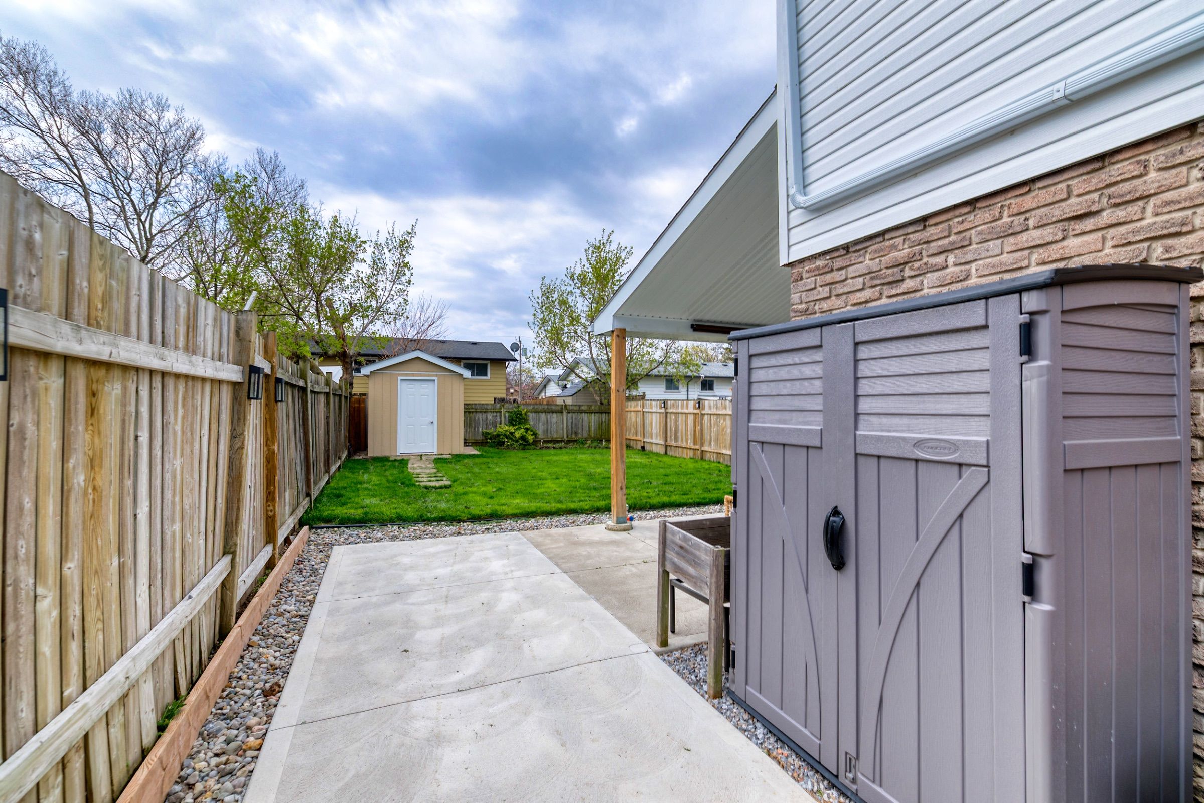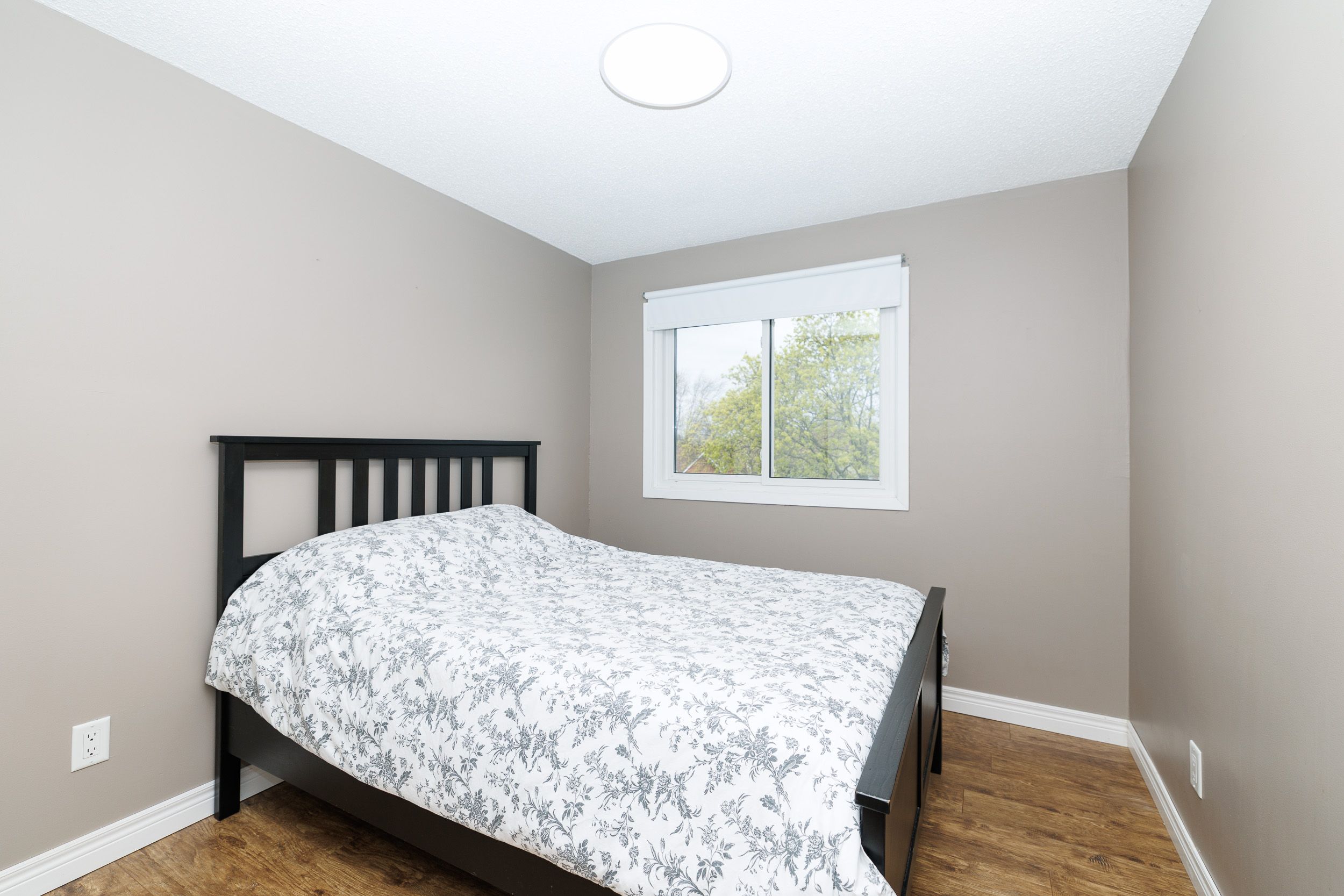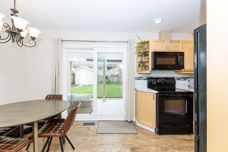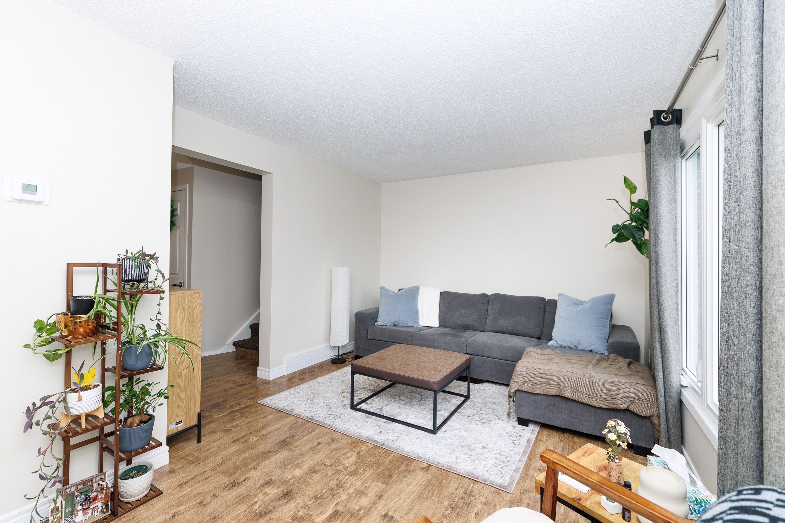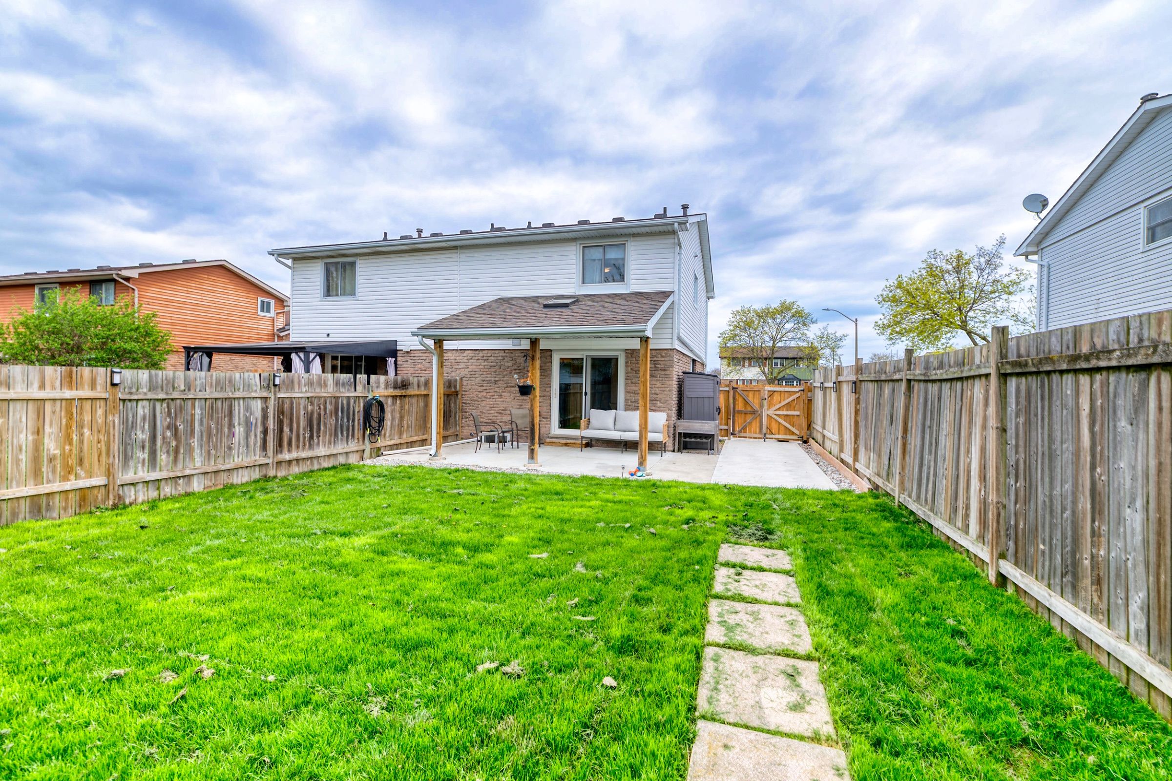 Located on a quiet circle in secordwoods. Conveniently located close to school, park and transit. This 2 story semi is sure to impress. Enter in the newer front door to an updated 2 pc bath. Updated kitchen with b/i dishwasher, with patio doors leading to a covered concrete patio with sky light. Separate dining area. Upstairs you will find 3 bedrooms with an updated 4 pc bath. The basement has a finished recroom. Beautiful fenced backyard with a new shed in 2026, private drive with room for 2 parking spots. Furnace and c/a 2015, roof 2015, windows 2015