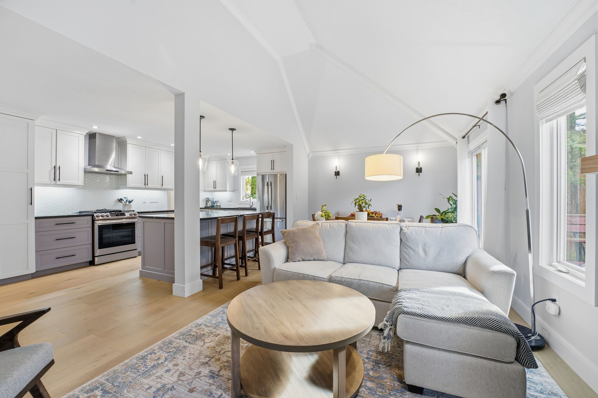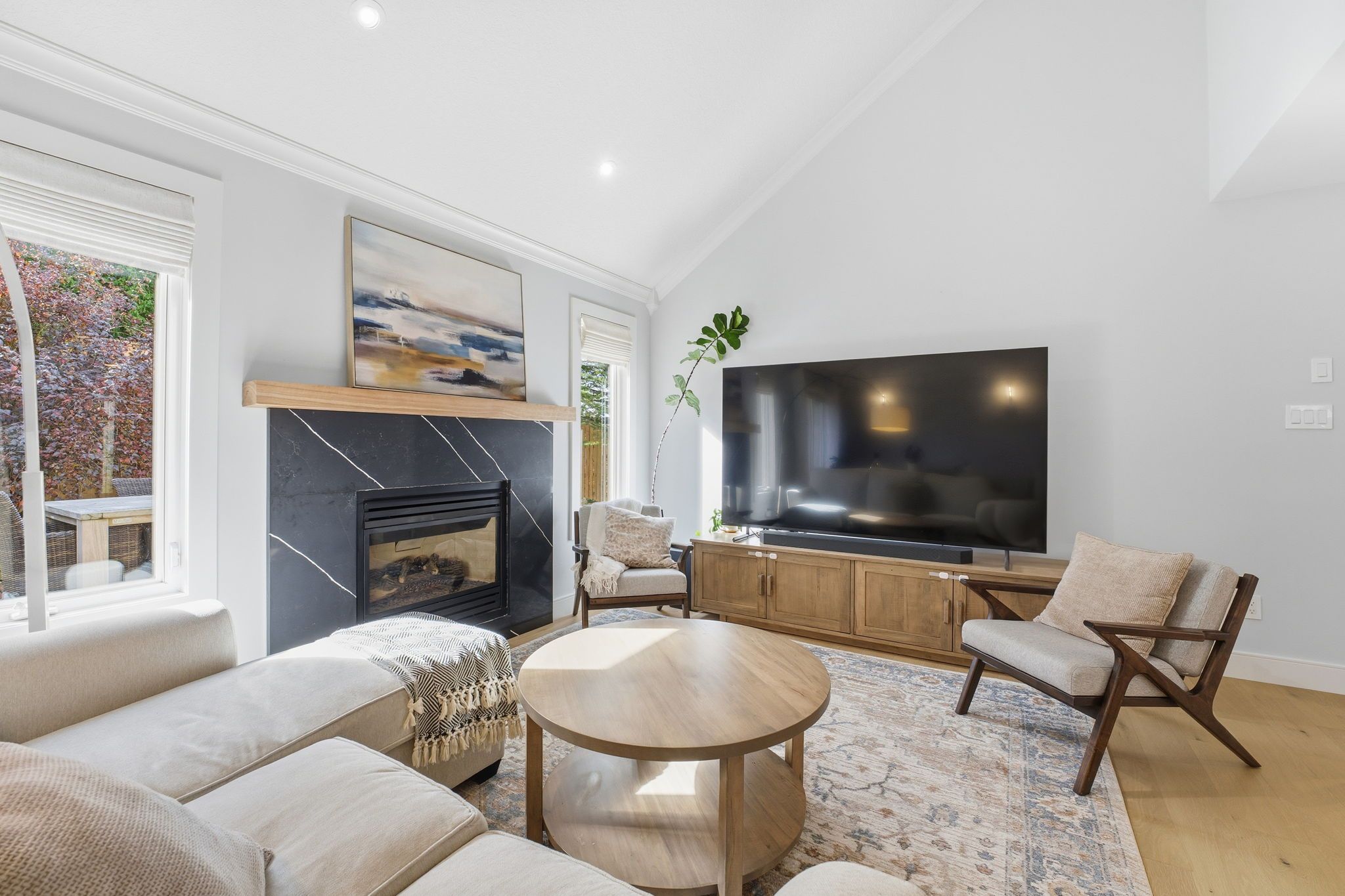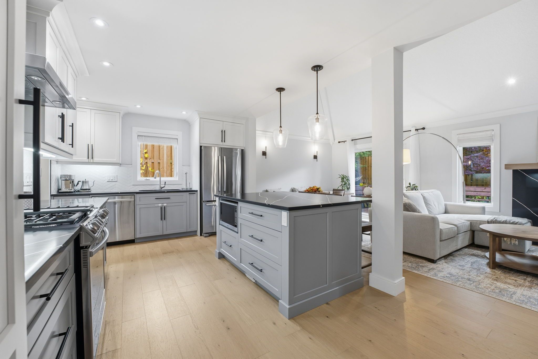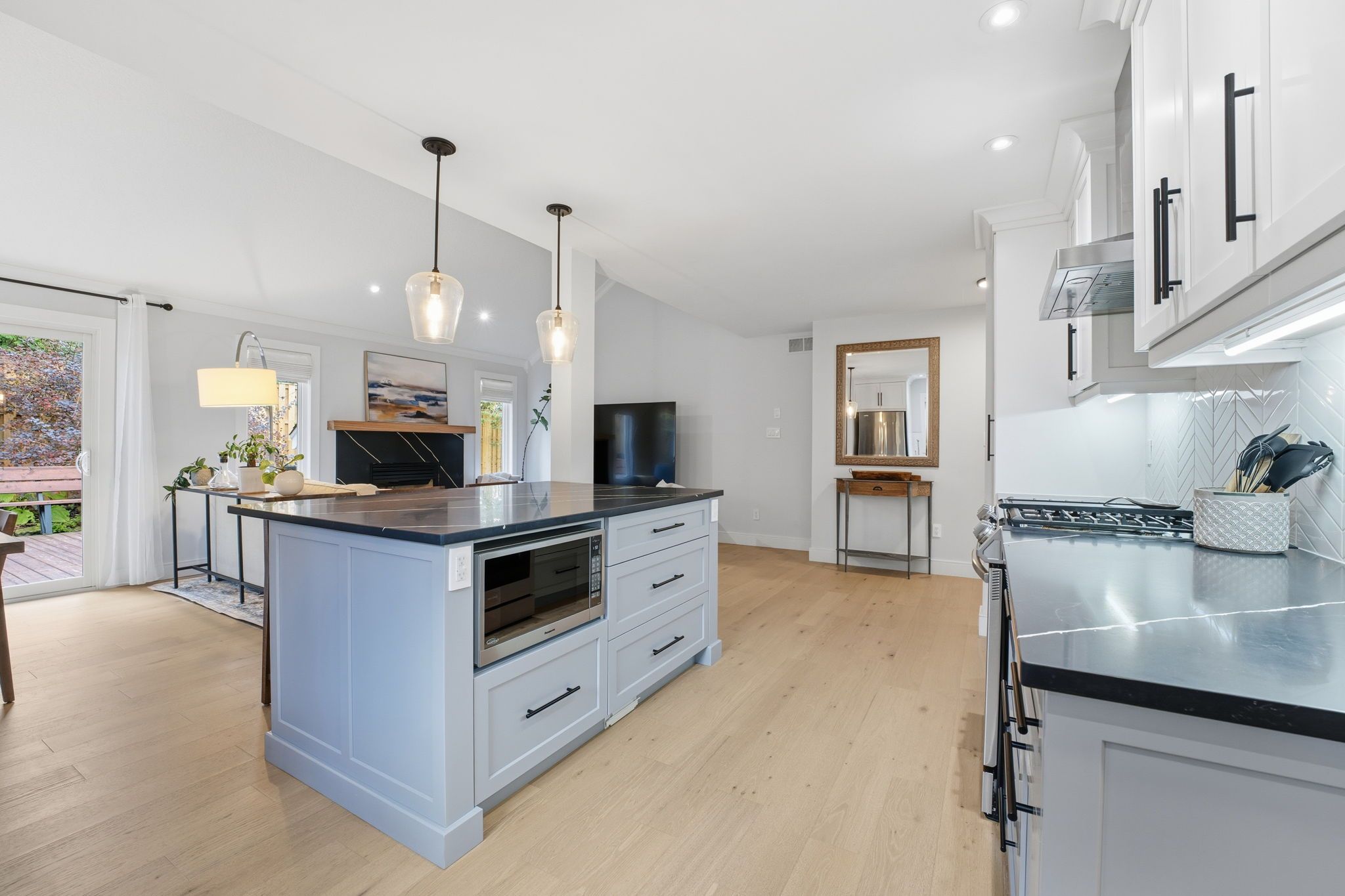 • Open-concept main floor featuring a modern kitchen and gas fireplace.