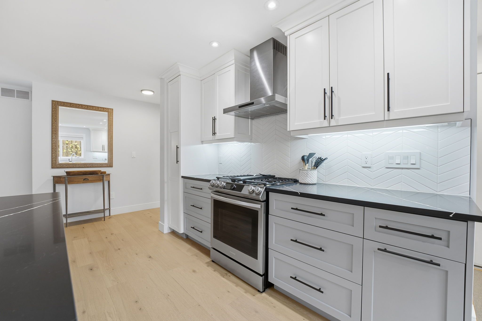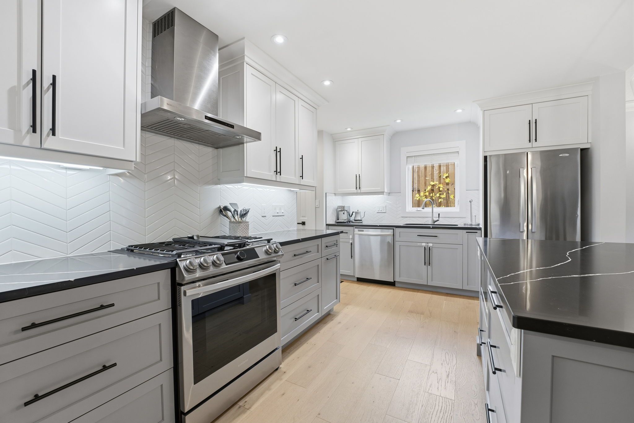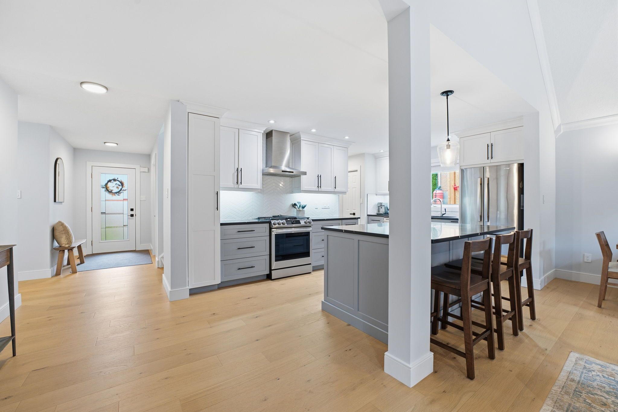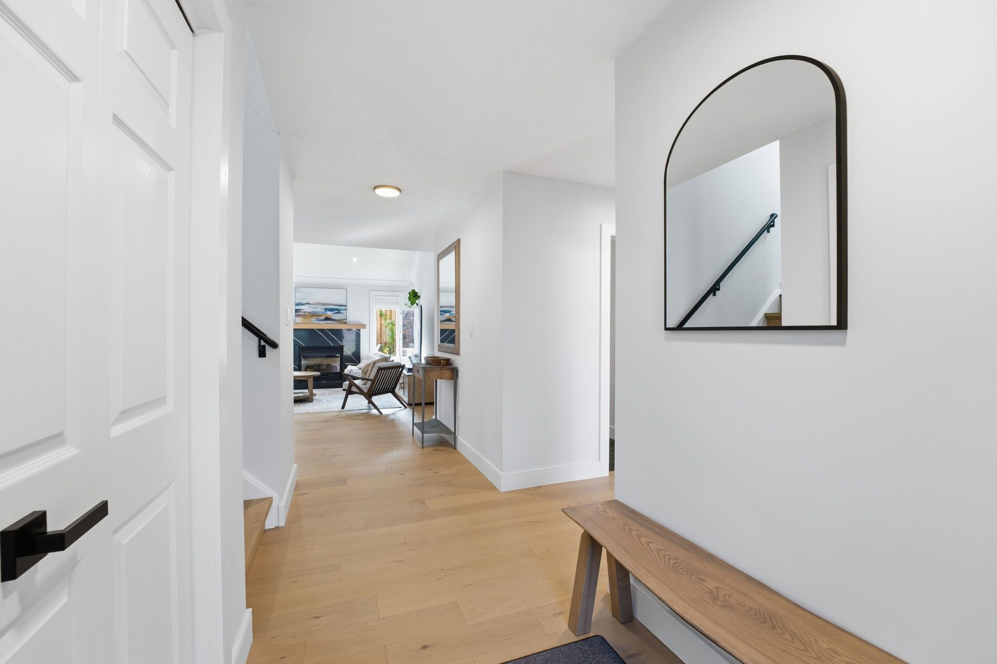 • Open-concept main floor featuring a modern kitchen and gas fireplace.