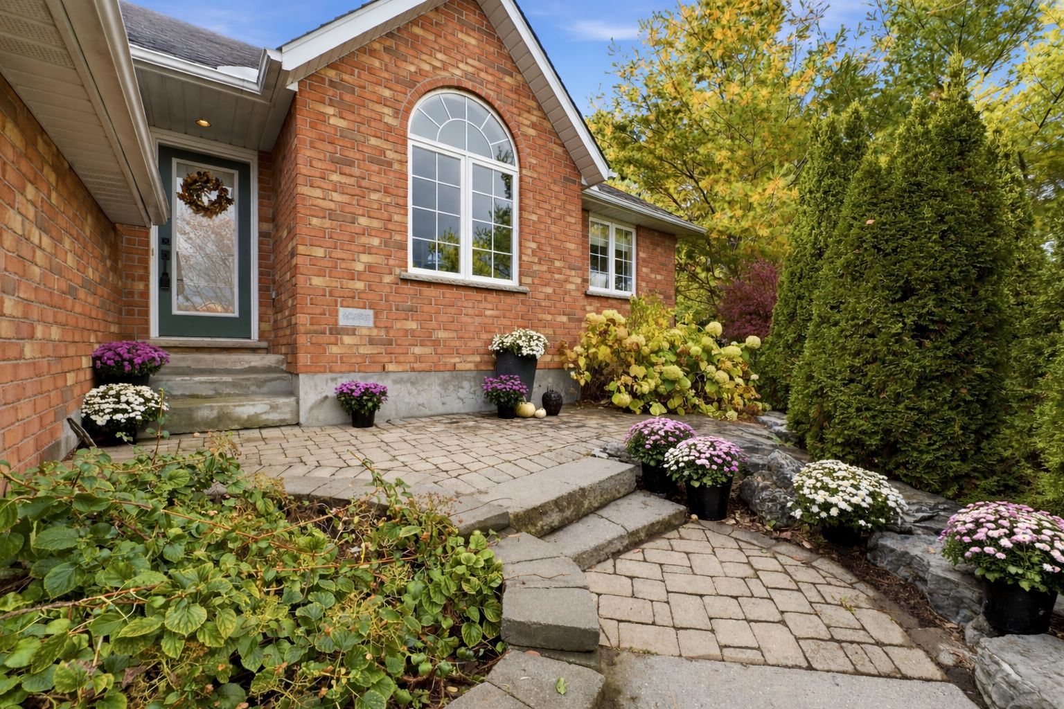 This elegant, fully upgraded raised bungaloft offers over 3,000 sq ft of finished living space, ideally situated on a quiet cul-de-sac in the desirable south end of elora. Set on a private, mature lot with 108' of frontage and surrounded by established trees, this home delivers the perfect blend of comfort, space, and location. The open-concept main floor features a modern kitchen with quartz countertops, wide-plank engineered hardwood flooring, and elevated ceilings, all anchored by a cozy gas fireplace (2021). The main level includes three spacious bedrooms, highlighted by a stunning primary suite complete with a 5-piece ensuite, soaker tub, and heated floors. The fully finished lower level offers exceptional versatility with two additional bedrooms, a 3-piece bathroom with heated floors, and generous space for entertaining, a home gym, or family retreat. A bright and functional loft provides endless possibilities, ideal as a sixth bedroom, home office, playroom, or creative space. Professionally landscaped in 2024, the backyard features a lush lawn, a spacious deck (2023), elegant flagstone pathways, custom fencing, and natural stone steps leading toward the pedestrian bridge and downtown. All of this within walking distance to scenic trails, shops, and the charm of downtown elora.
