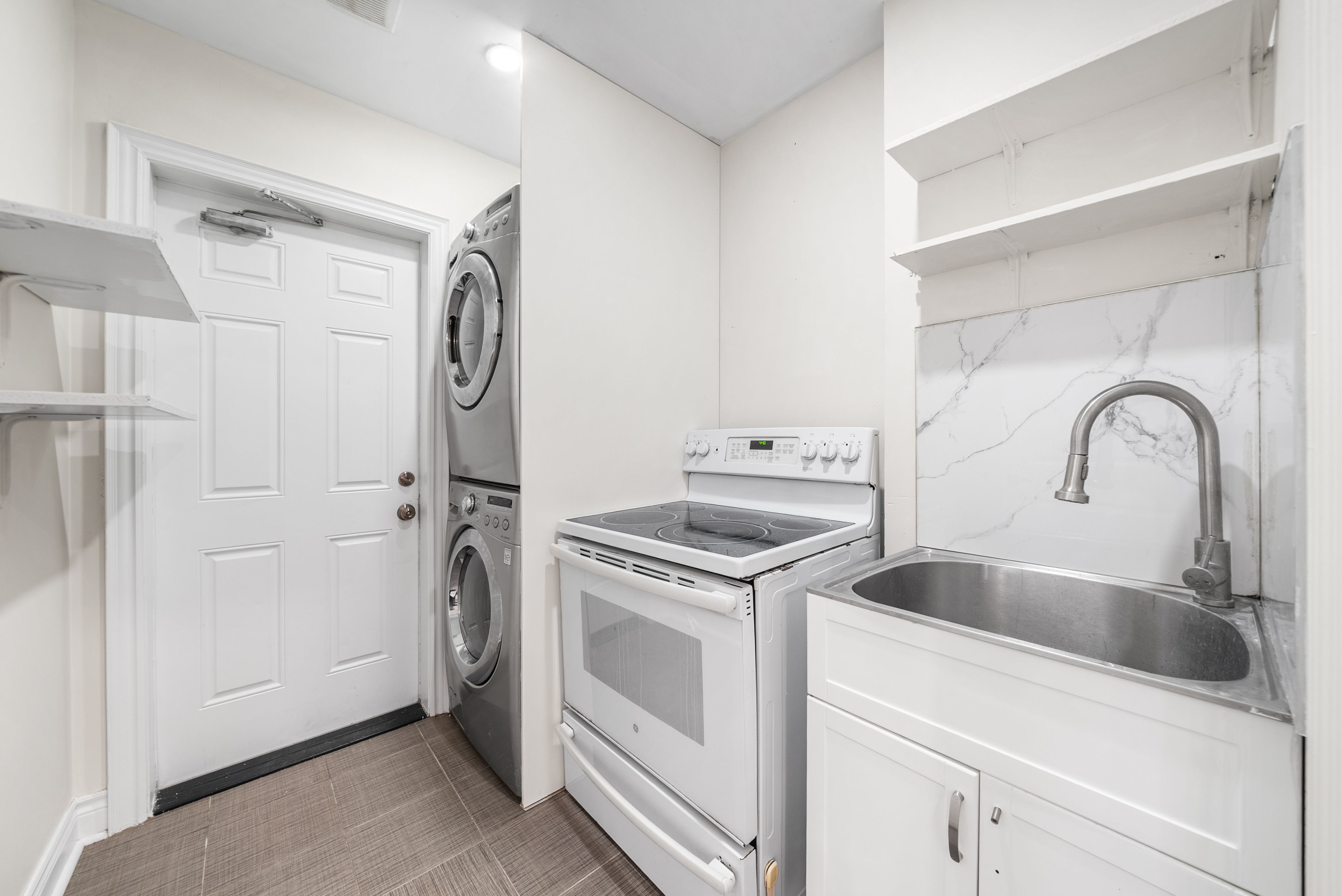 • Kitchen featuring granite countertops and built-in microwave for convenience.