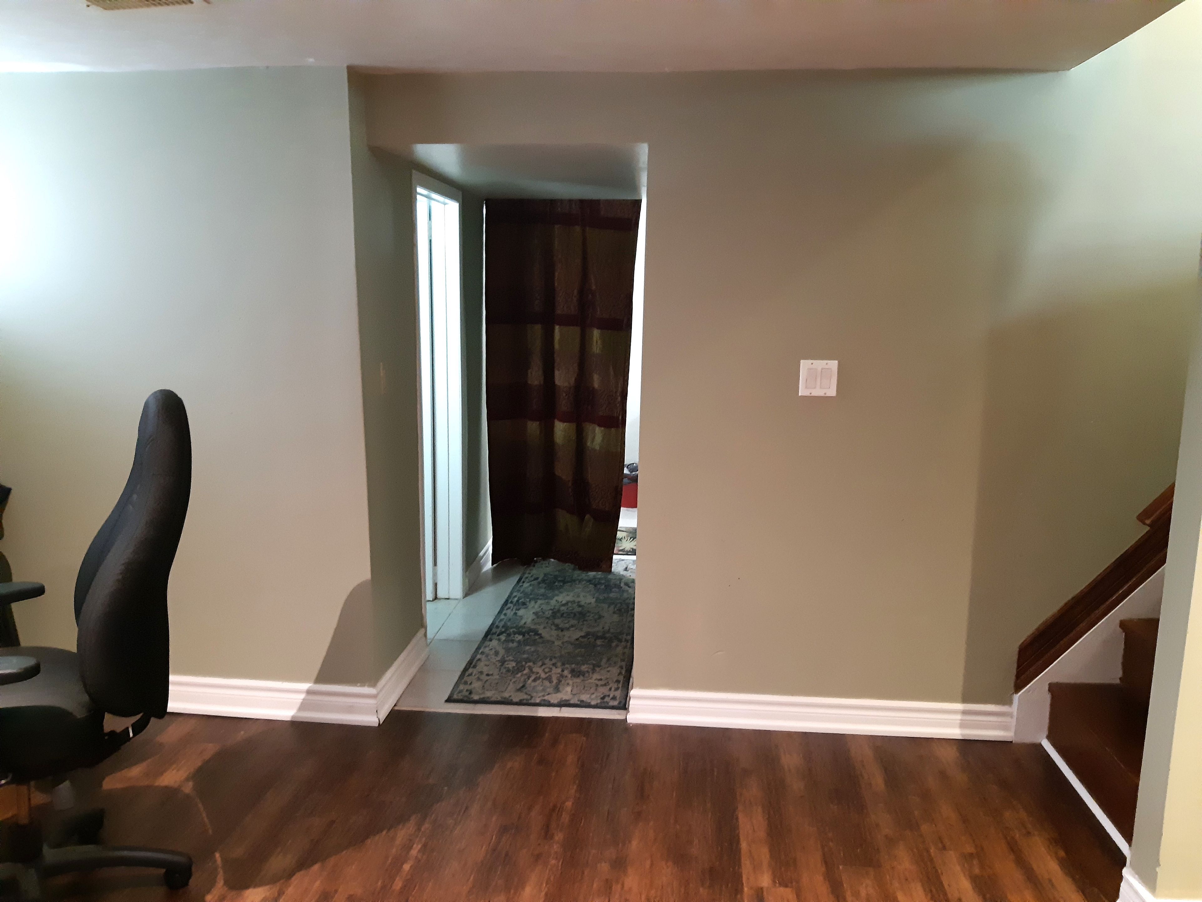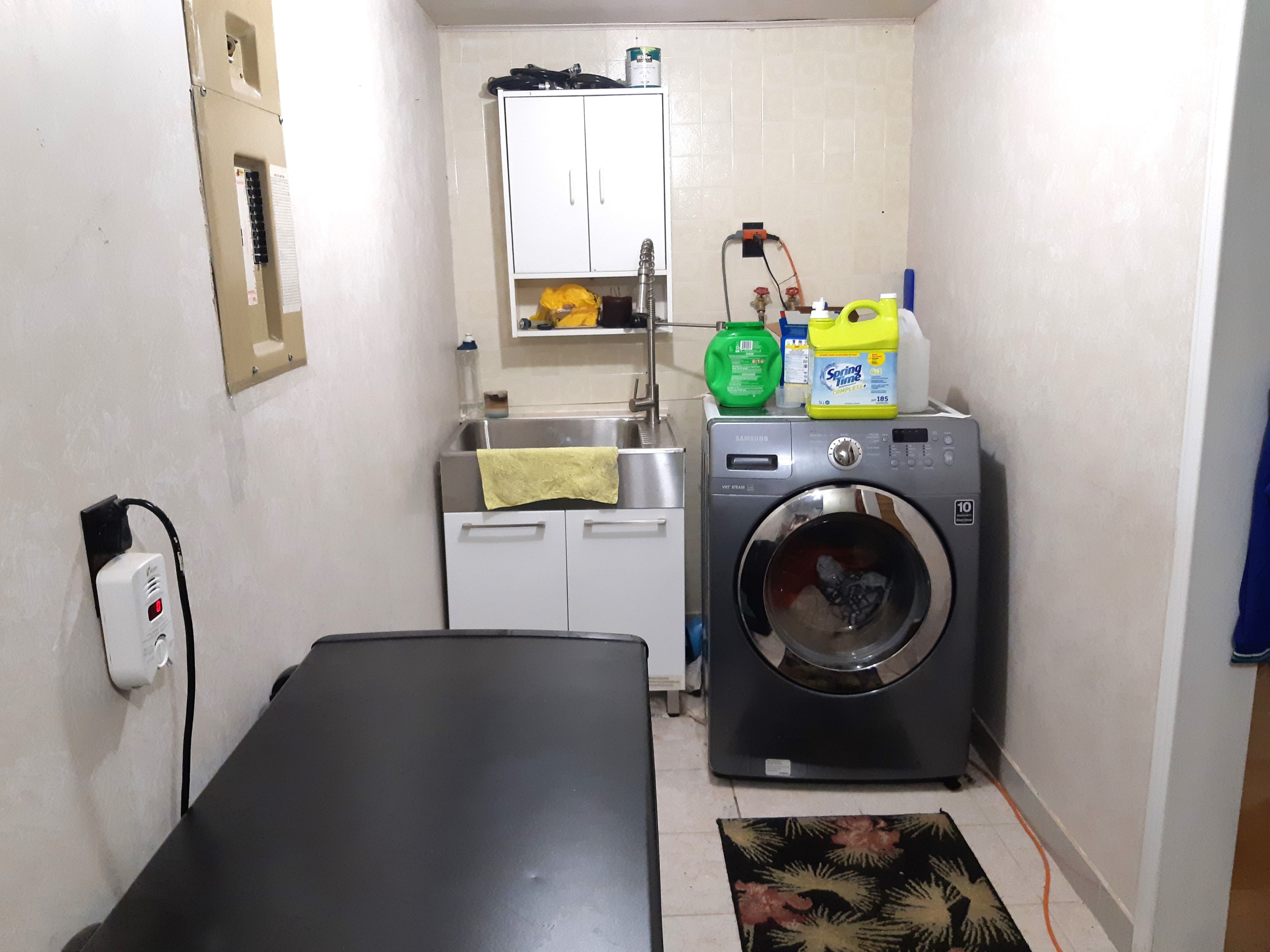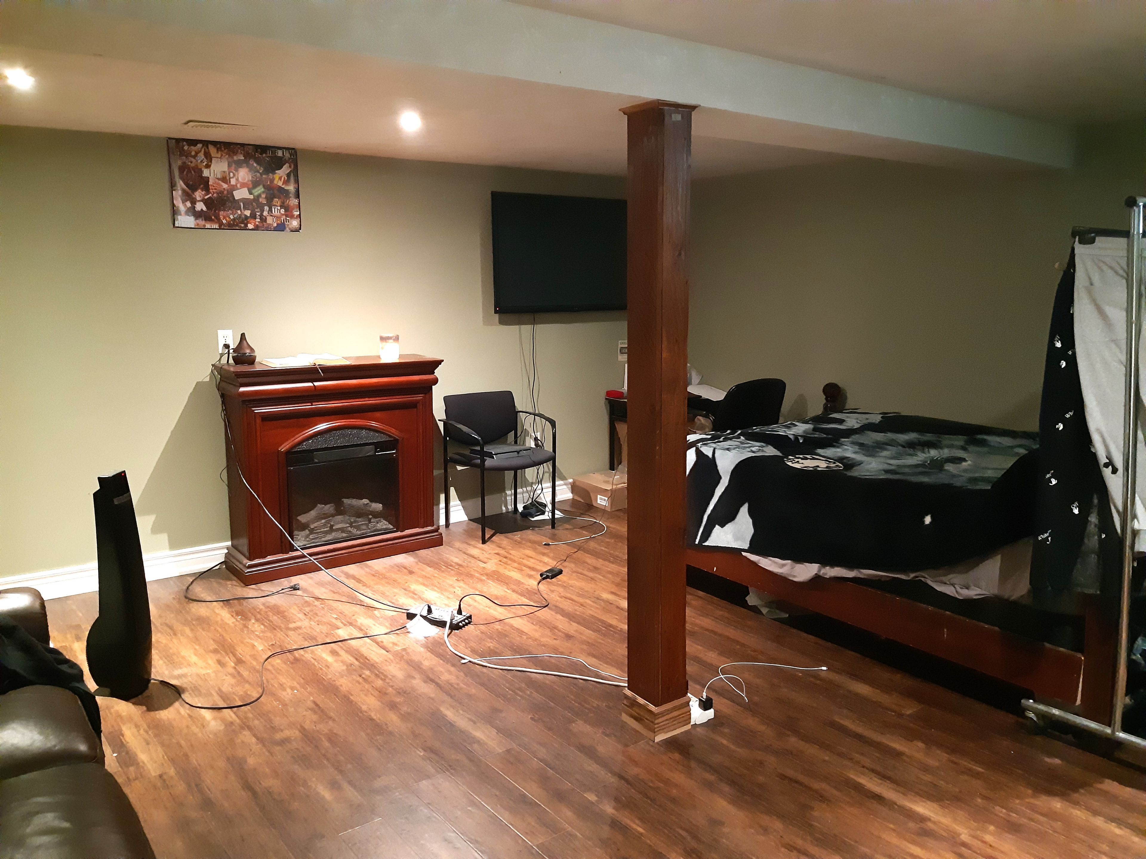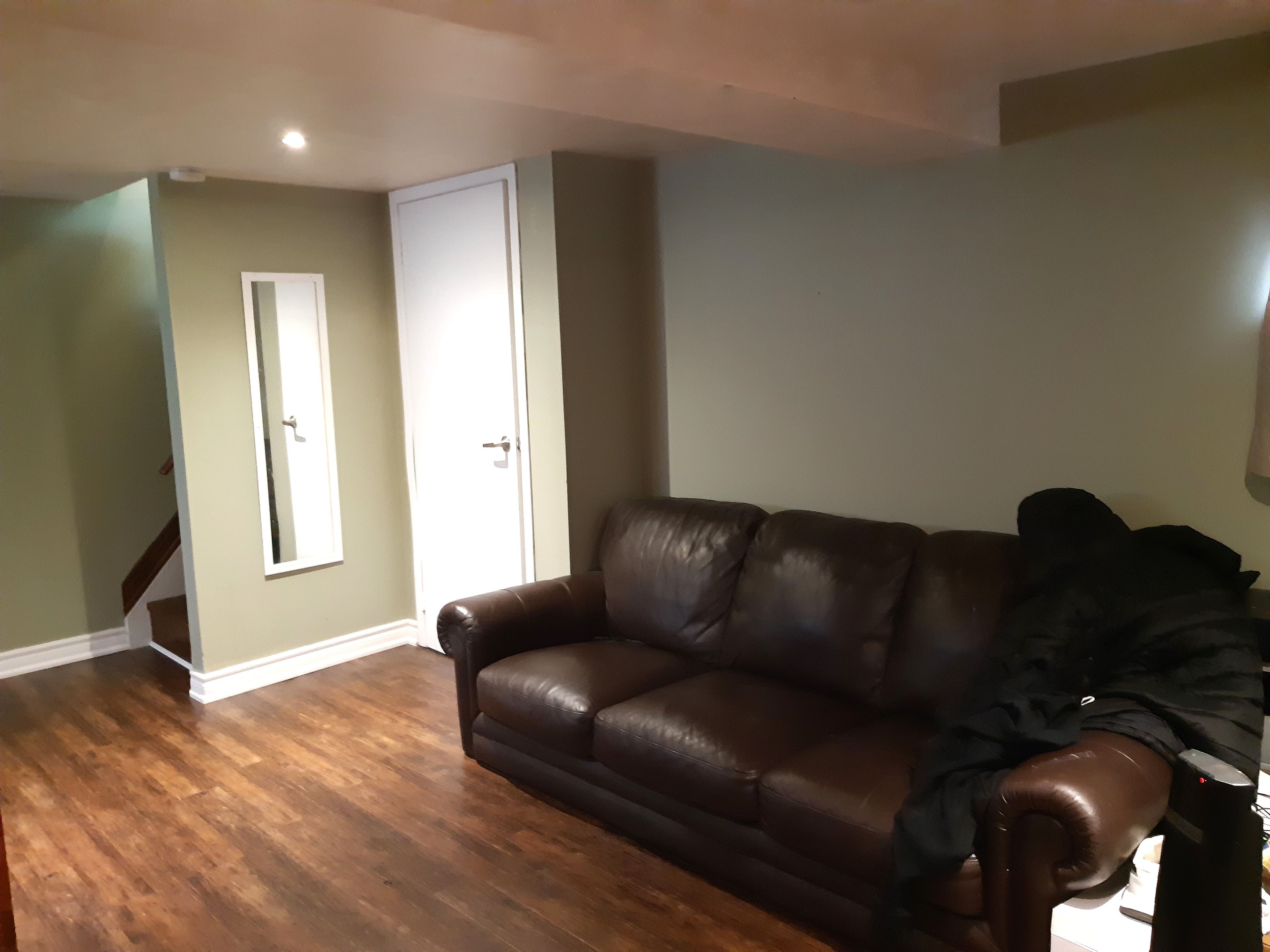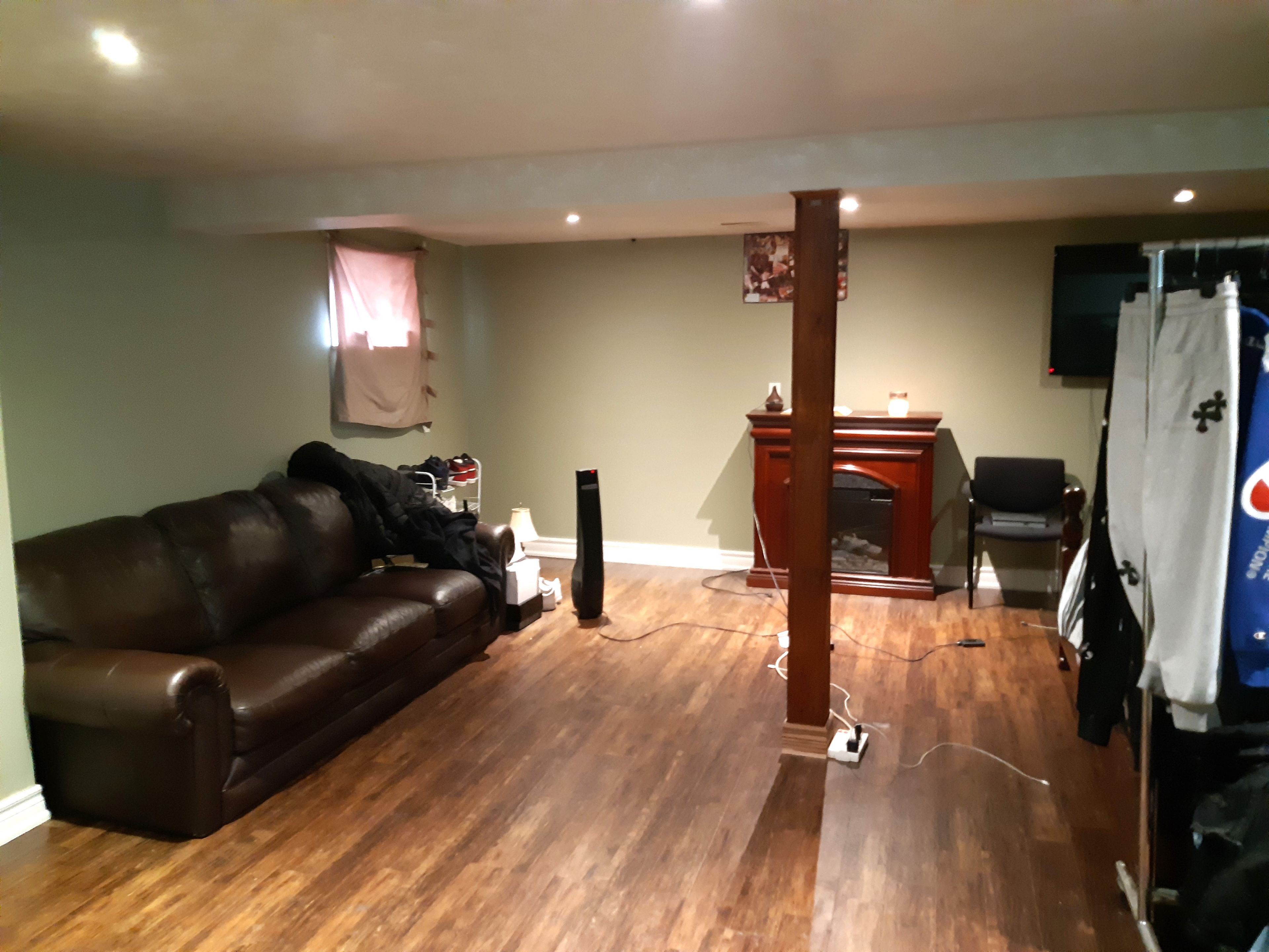 • Well-lit basement with above ground windows and new laminate flooring.
