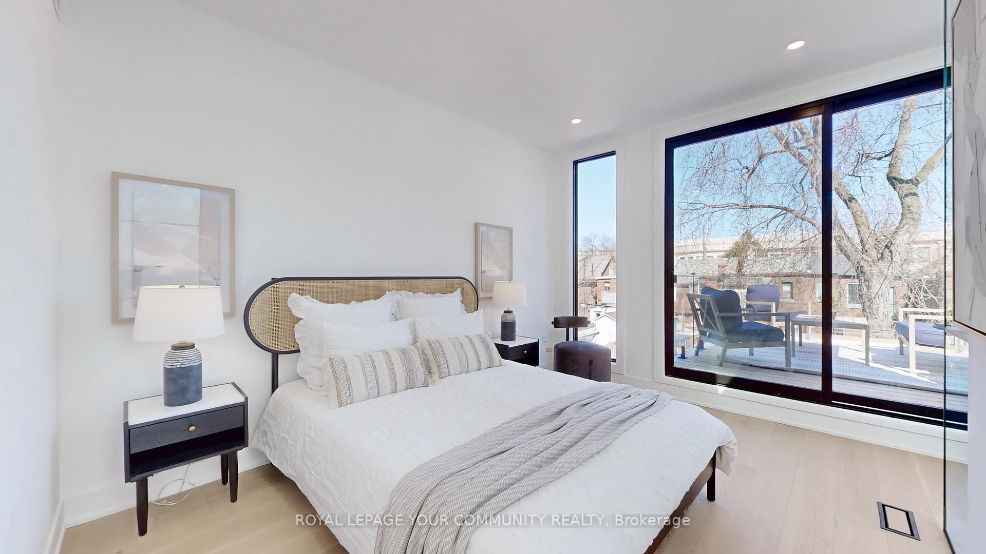 In the heart of leslieville, discover the future of modern living in this newly builtthree-story home filled with character, charm and thoughtful design. The main floor features astylish open-concept layout with living, dining, and kitchen areas seamlessly connected-idealfor both everyday living and entertaining. Floating stairs lead to the second floor, which features a modern 3 piece bathroom and threebedrooms. One opens to its own private balcony overlooking the backyard, the second can serveas a cozy bedroom or home office, and the third faces the front of the house and includes ajuliet balcony, ideal for enjoying morning light and fresh air. A dedicated laundry is alsoconveniently located on this level. The entire third floor is a private primary suite, thoughtfully separated from the rest of thehome. It features high ceilings, a spacious bedroom, two walk-in closets, a large balcony, anda luxurious 5-piece modern ensuite with a skylight that creates a spa-like experience. A secondskylight above the staircase brings in even more natural light as you ascend to this stunningretreat. The walkout basement includes a separate entrance, one bedroom, a full kitchen, its ownlaundry, and is ideal for rental income, airbnb, in-law, or teen suite. Step out to a cozy backyard with a deck, laneway access, ev charging plug, and a gasline-perfect for outdoor gatherings. The front porch, finished with sleek glass railings,offers a great spot to relax and enjoy the neighbourhood.