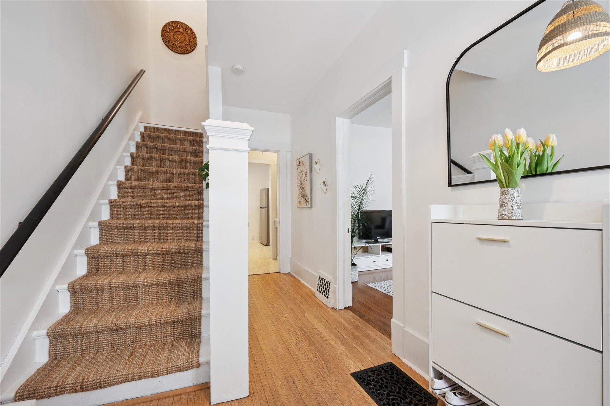 • Three spacious bedrooms upstairs, including a large primary bedroom.
