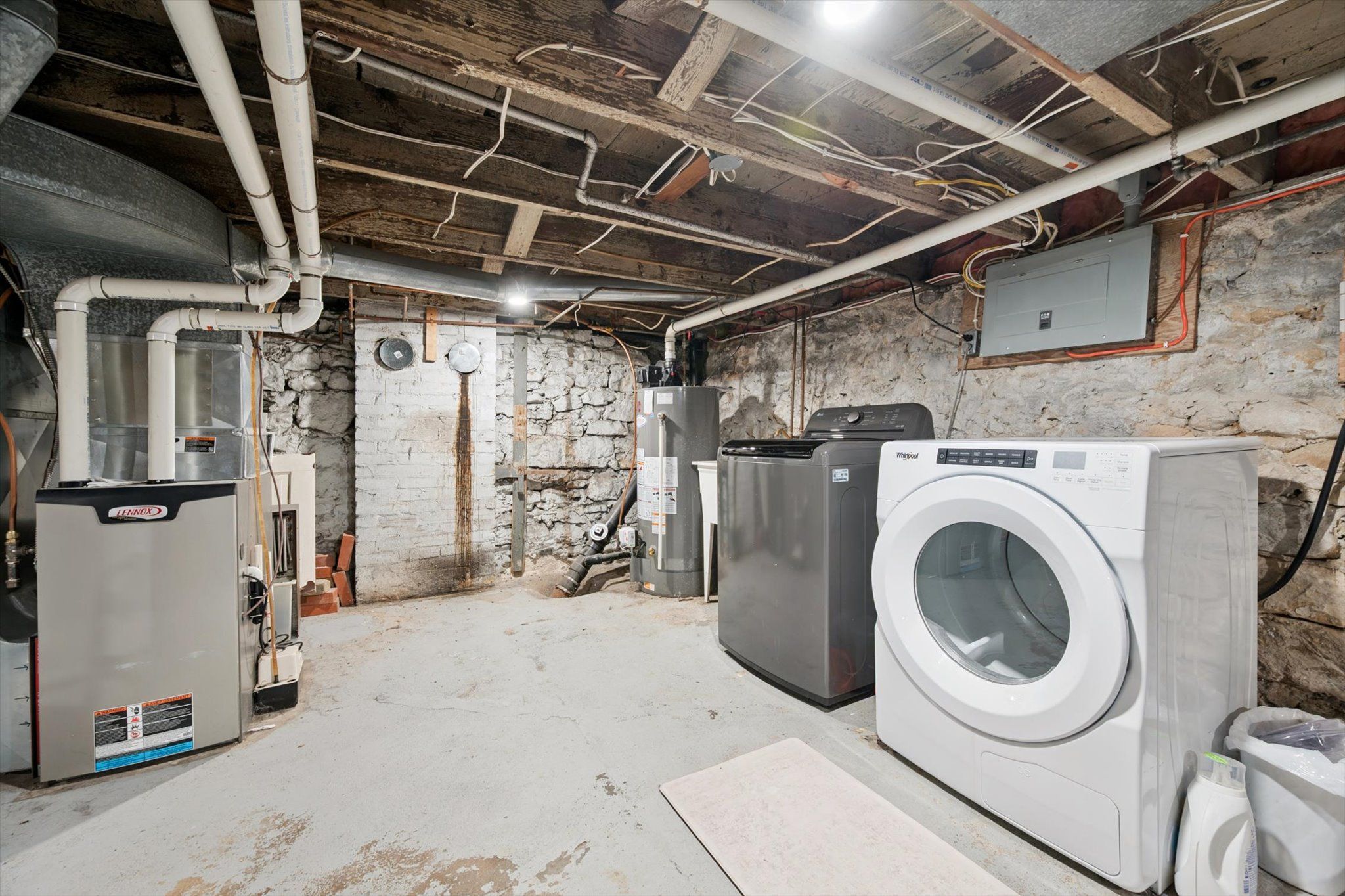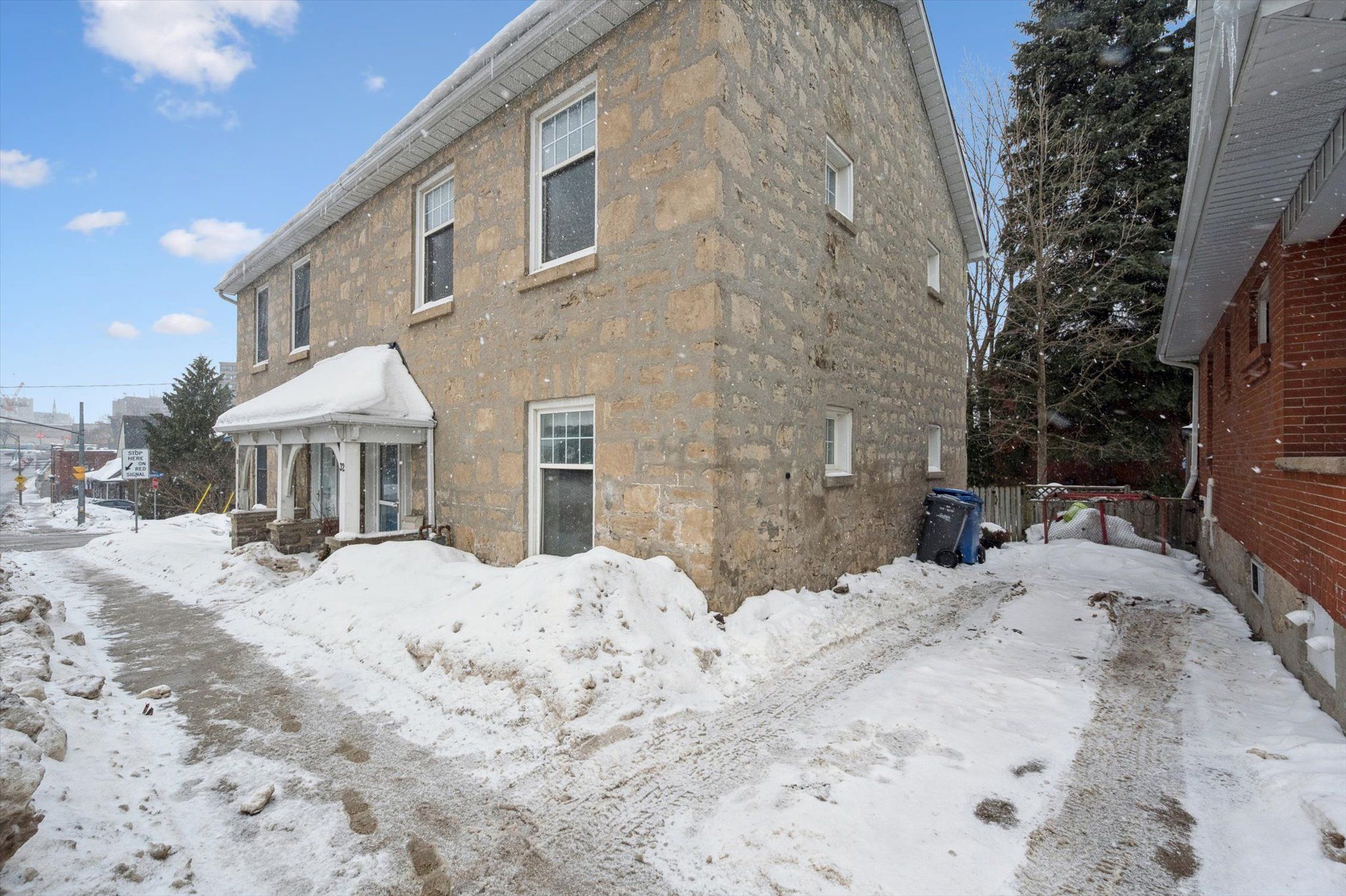 This charming stone semi-detached home is located in the heart of downtown guelph, steps from shopping, restaurants, pubs, cafés, riverside trails, and numerous other amenities. When you step inside, you'll appreciate the timeless character of a historic home, thoughtfully complemented by modern updates throughout. The main level offers a light-filled living space, a spacious dining area, and an updated kitchen complete with stainless steel appliances. Upstairs, you'll find three generously sized bedrooms, including a bright and spacious primary, along with a chic 4-piece bathroom. The basement provides a significant amount of storage space in addition to a dedicated laundry area. This property also features a bonus mudroom, parking for two cars, and a fenced backyard. Major updates include electrical (2024), new roof and sheathing (2020), and washer, dryer, fridge, and stove (2024).
