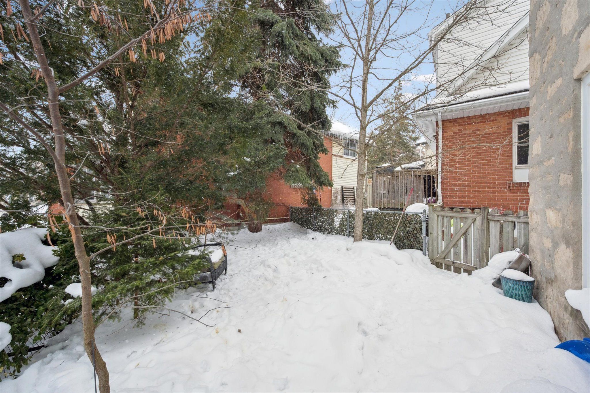 • Fenced backyard, parking for two cars, and ample storage space.