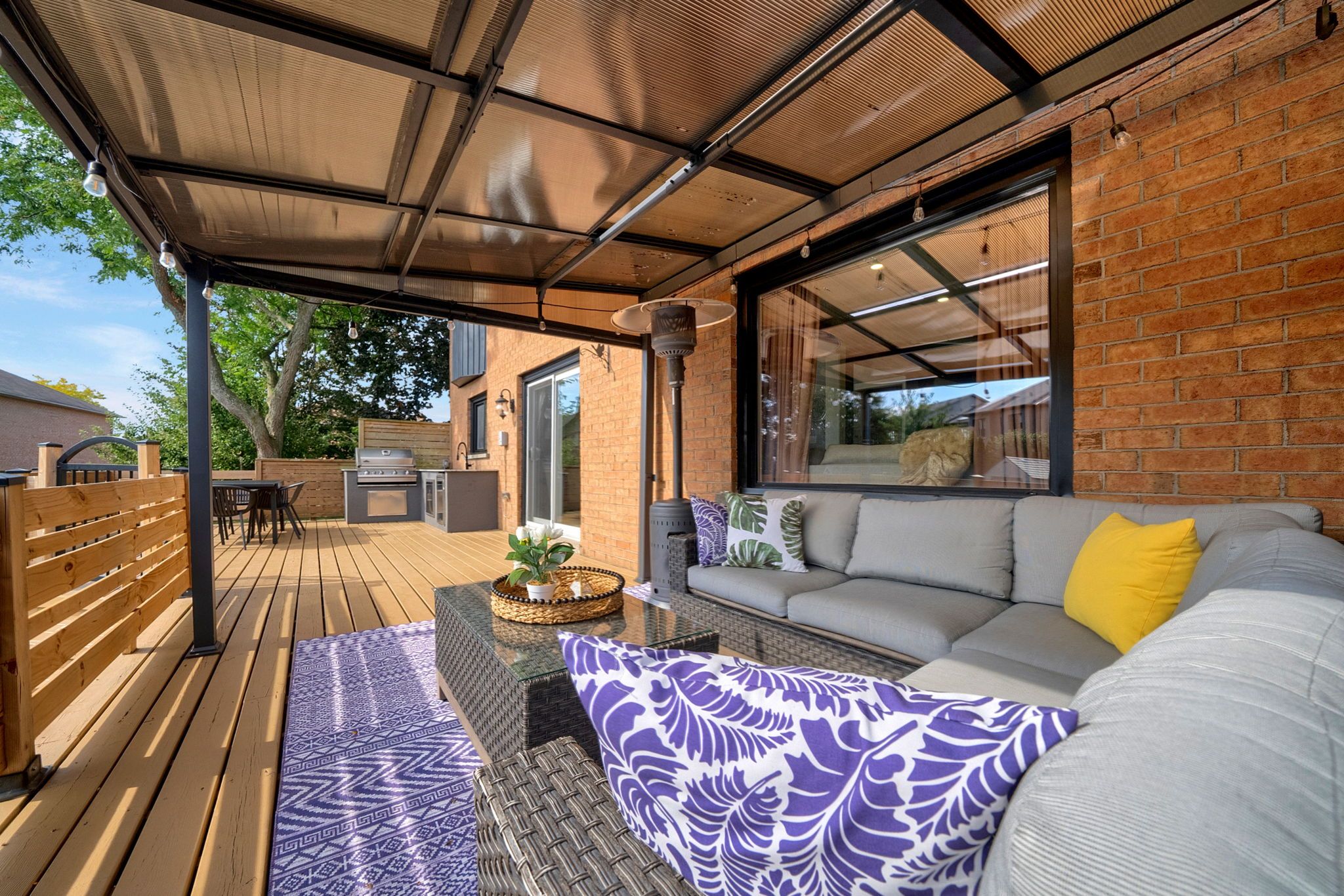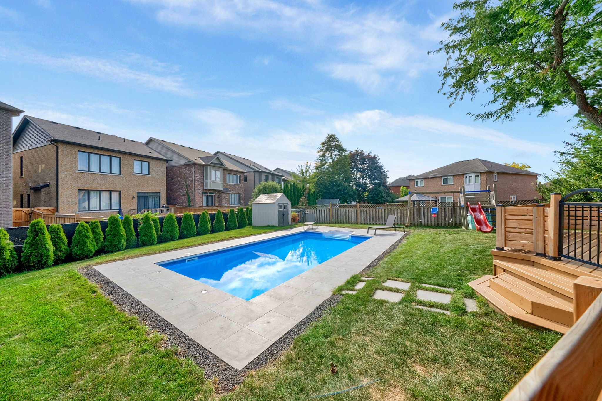 Welcome to this stunning executive residence offering over 4000 sq ft of finished luxurious living space, perfectly situated on a premium pie-shaped lot in one of the area's most sought-after neighbourhoods. From the moment you enter the grand open-concept foyer, you'll be impressed by the craftsmanship, elegant finishes, and attention to detail throughout. This home features 4 spacious bedrooms and 4 beautifully appointed bathrooms, designed for comfort and style. The chef-inspired kitchen showcases quartz countertops, high-end stainless steel appliances, custom cabinetry, and a seamless flow into the dining and living areas-ideal for entertaining. The fully finished basement expands your living space with a wet bar and relaxing sauna, offering the ultimate in comfort and leisure. Step outside to your private backyard oasis, complete with an in-ground pool, hot tub, outdoor kitchen, and professional landscaping-a perfect setting for summer gatherings and quiet evenings alike. Additional highlights include pot lights throughout, large principal rooms filled with natural light, irrigation system, and a newer roof for peace of mind. Located close to top-rated schools, parks, shopping, and all major amenities, this home combines luxury, functionality, and convenience in one exceptional package. Experience refined living at it's finest-this is the home you've been waiting for.