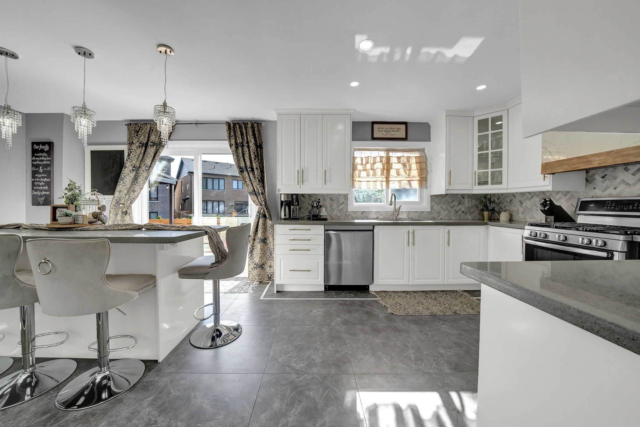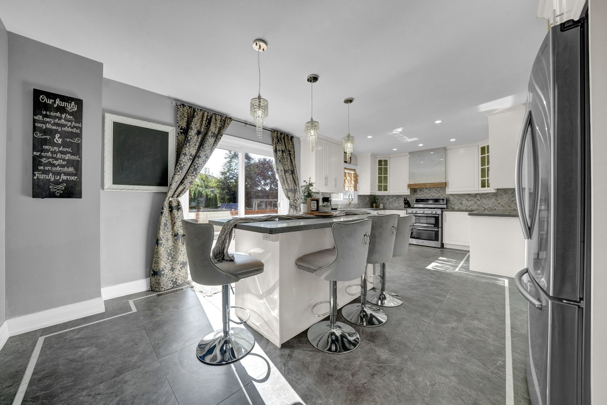 • Chef-inspired kitchen with quartz countertops and high-end stainless steel appliances.