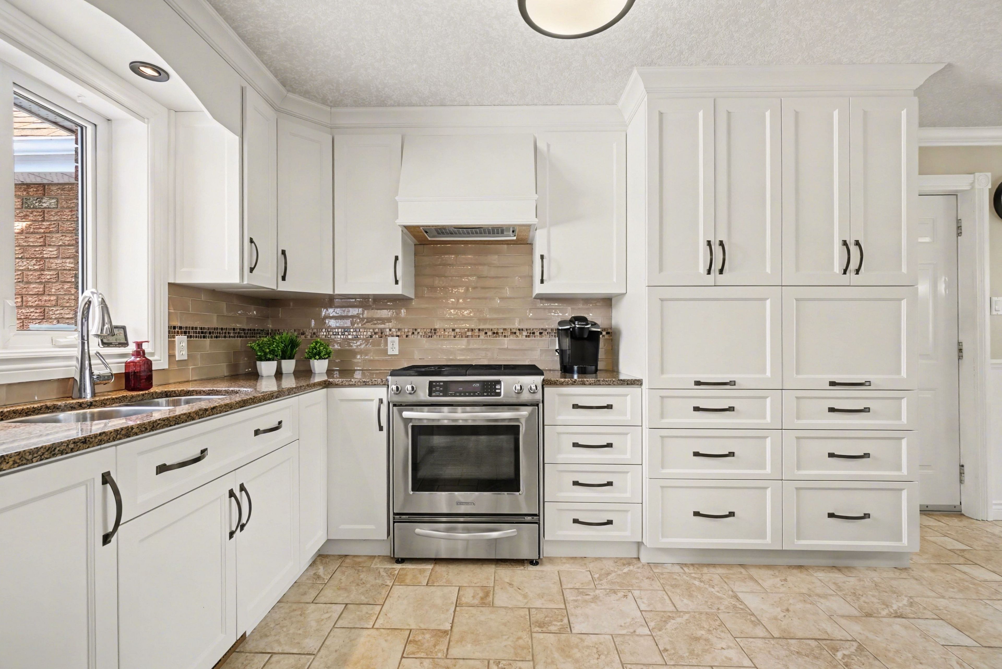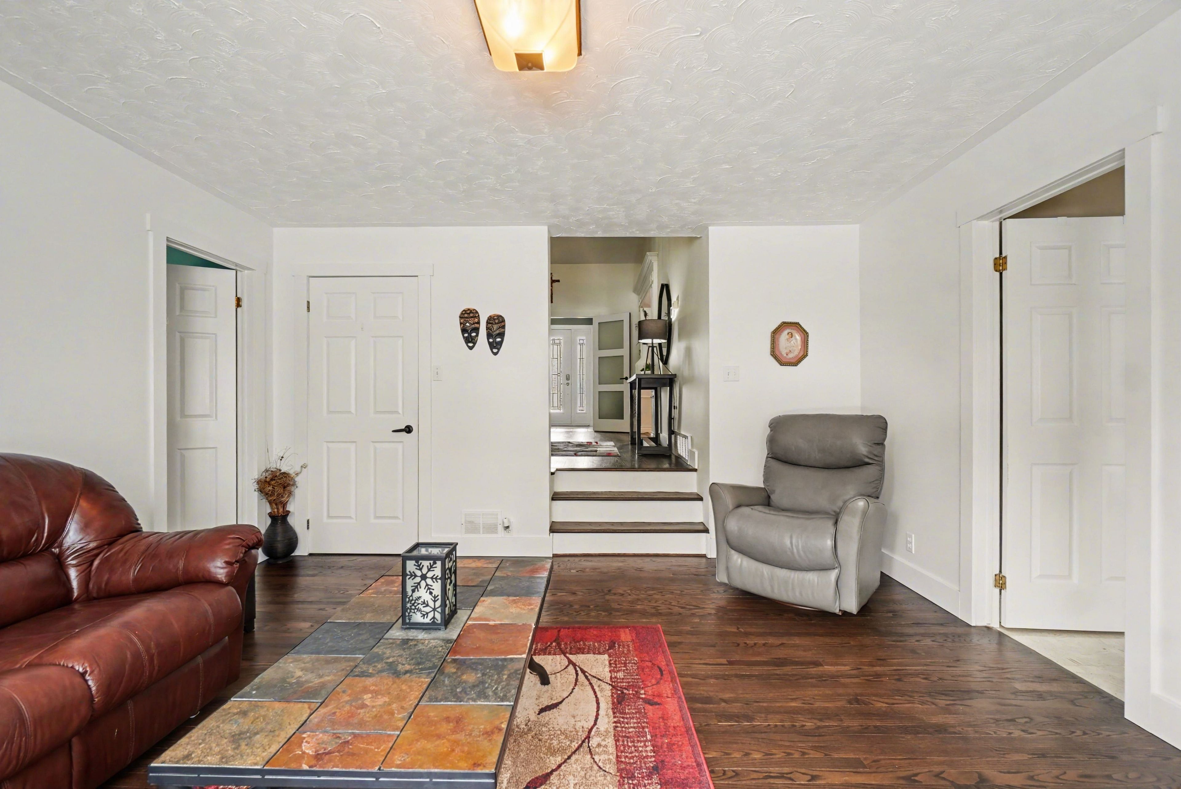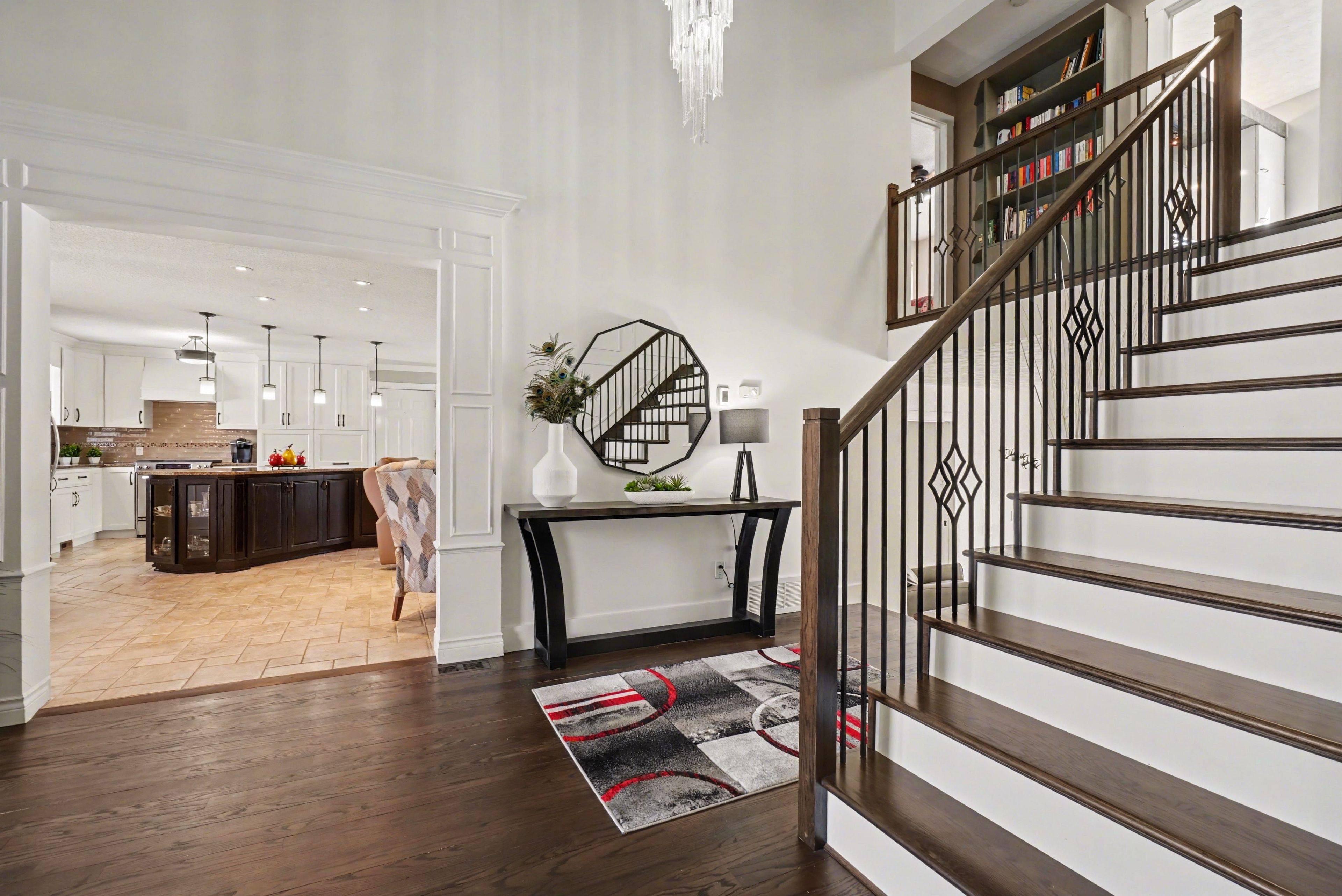 • Bright foyer with vaulted ceiling leads to a renovated kitchen.