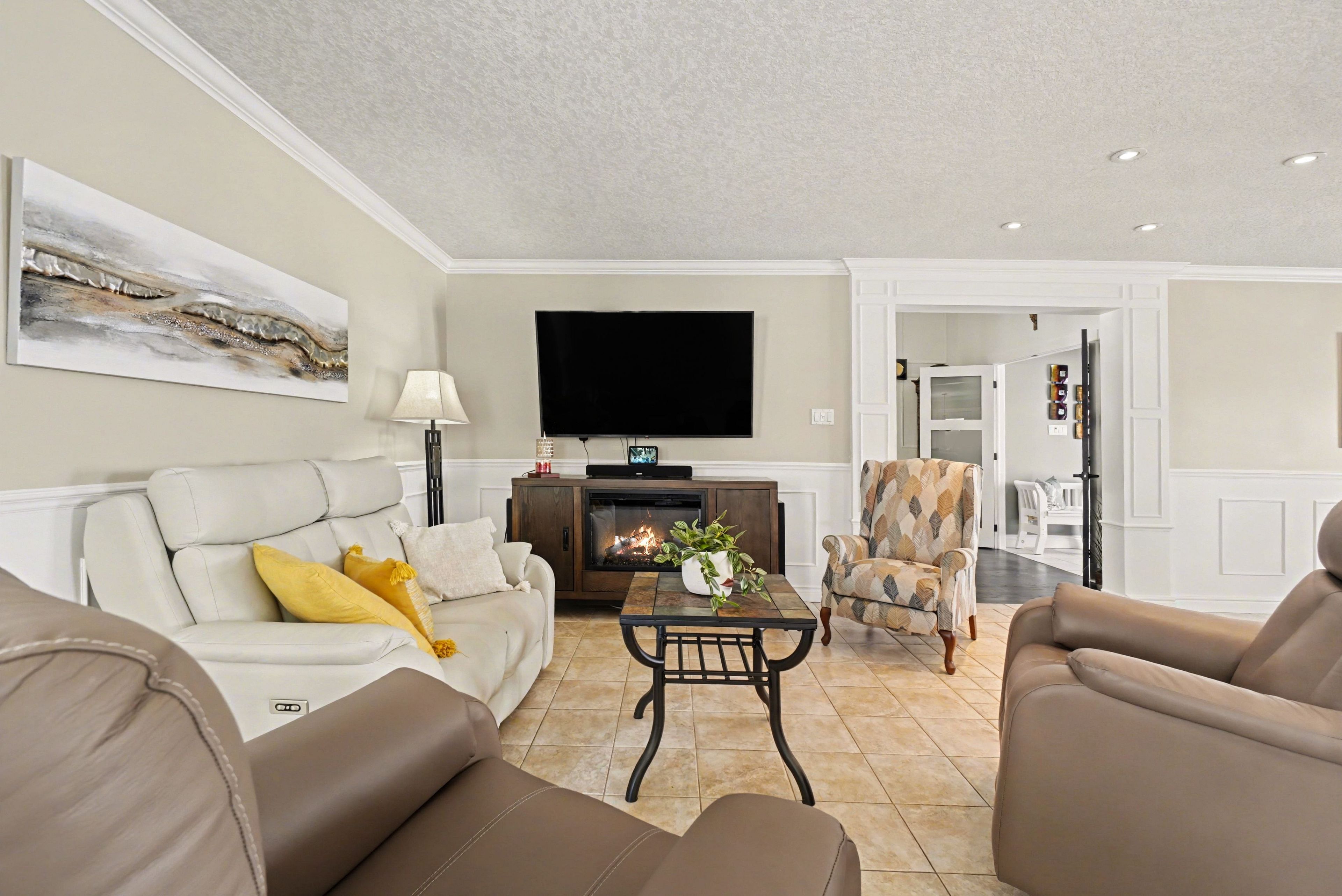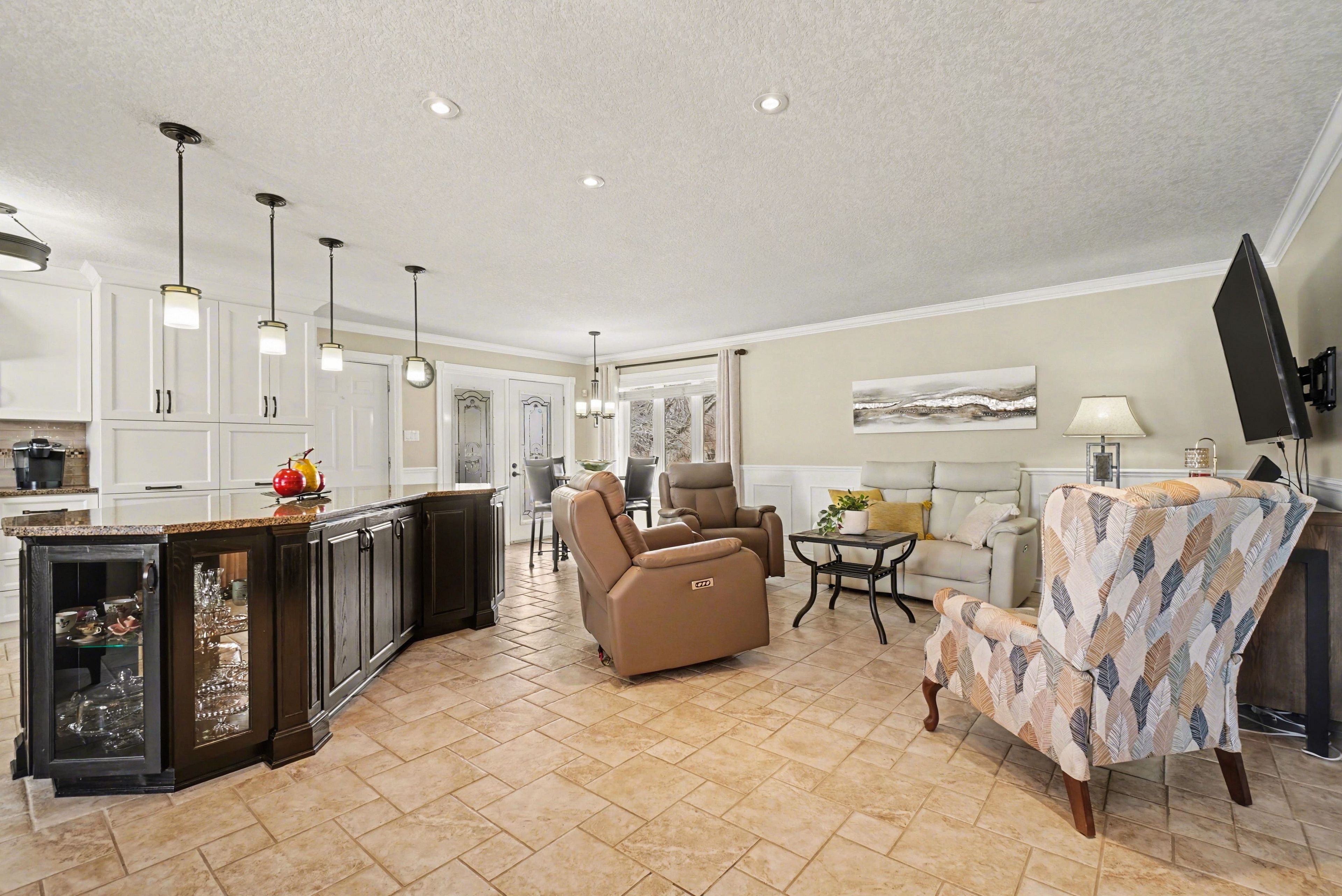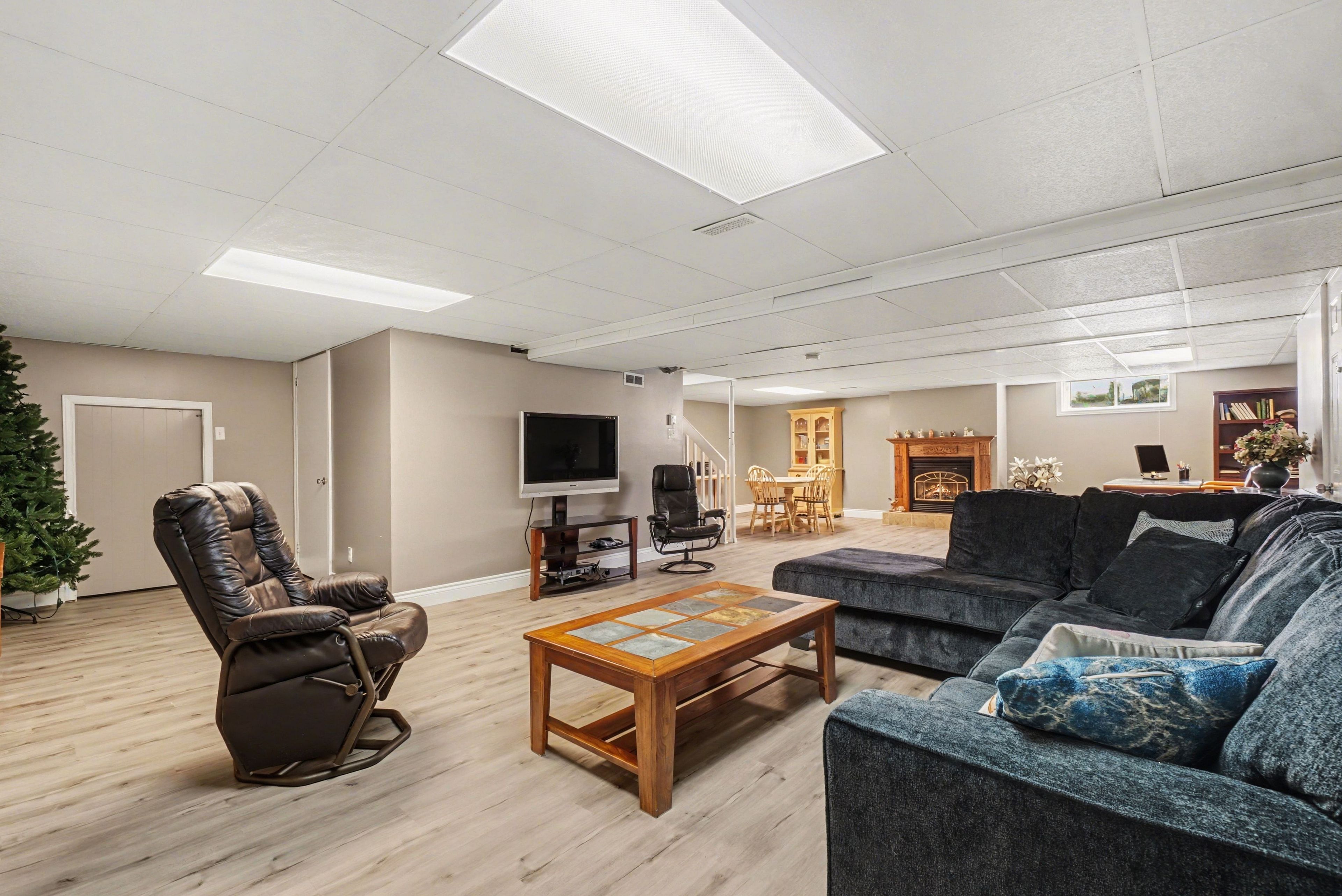 • Fully finished basement adds extra living space for recreation or guests.