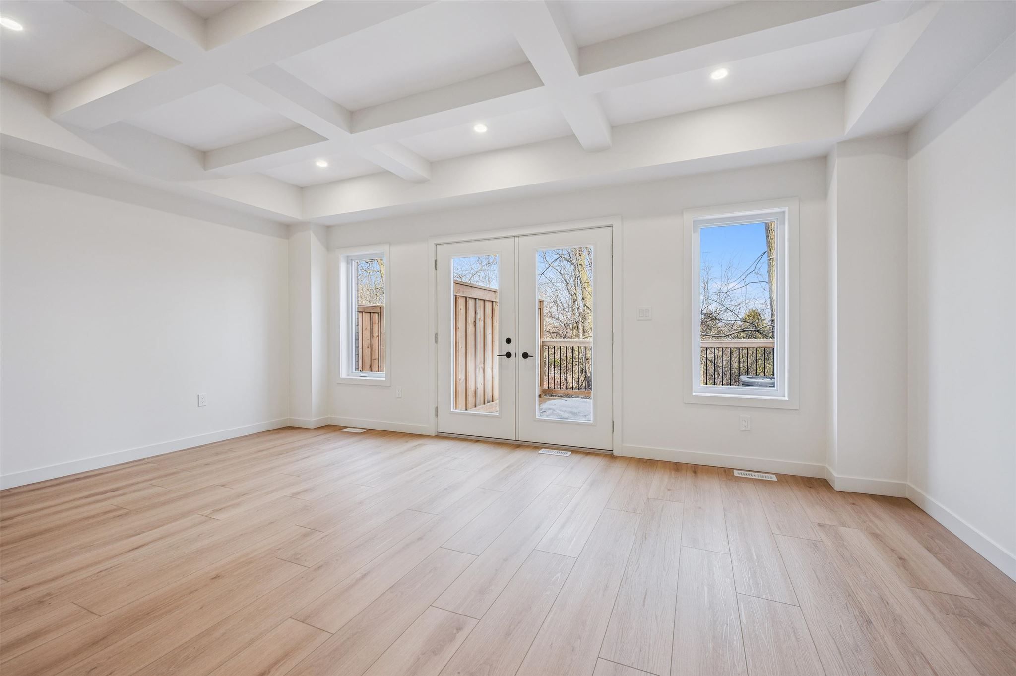 • Private deck overlooking greenspace, perfect for relaxing and entertaining.