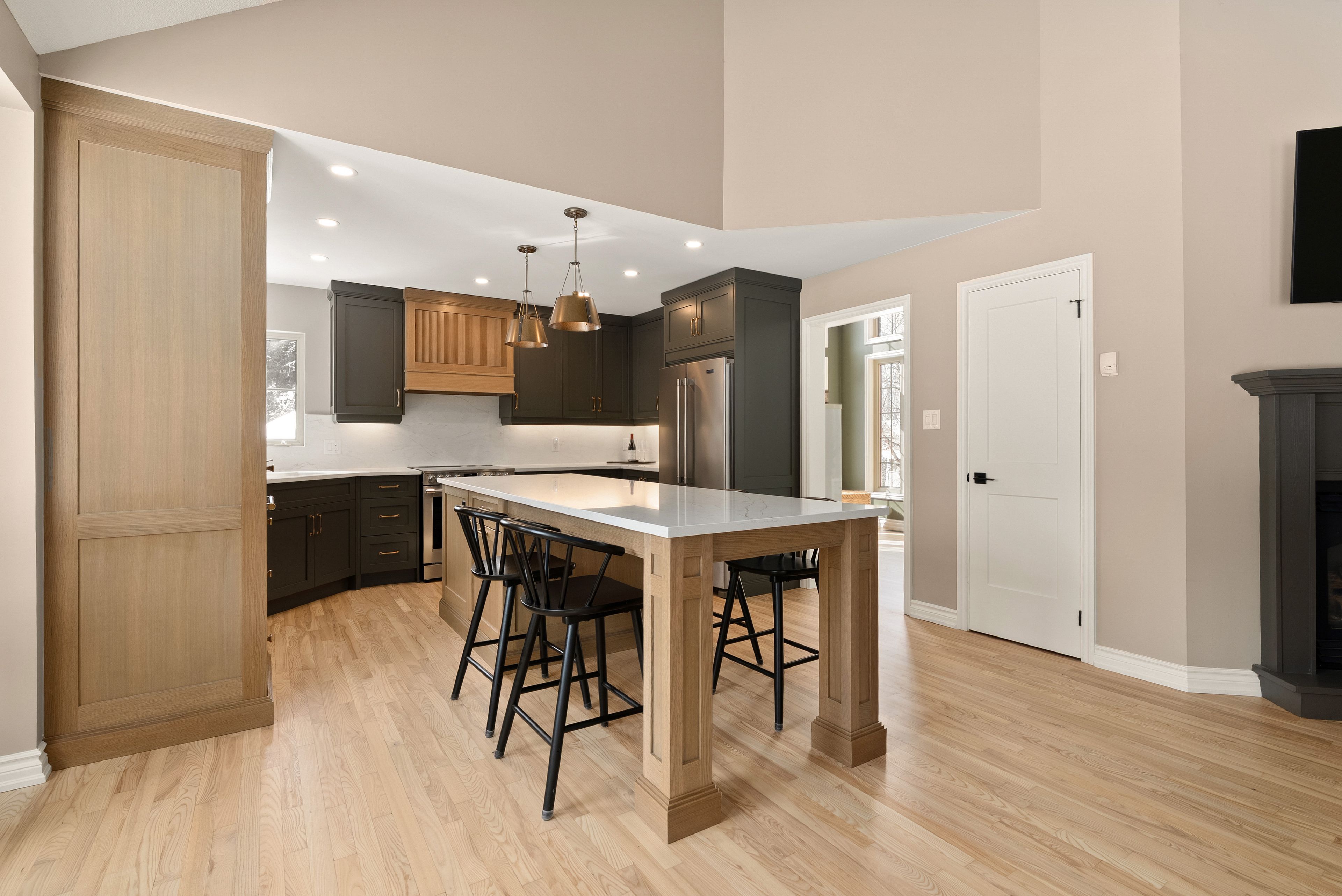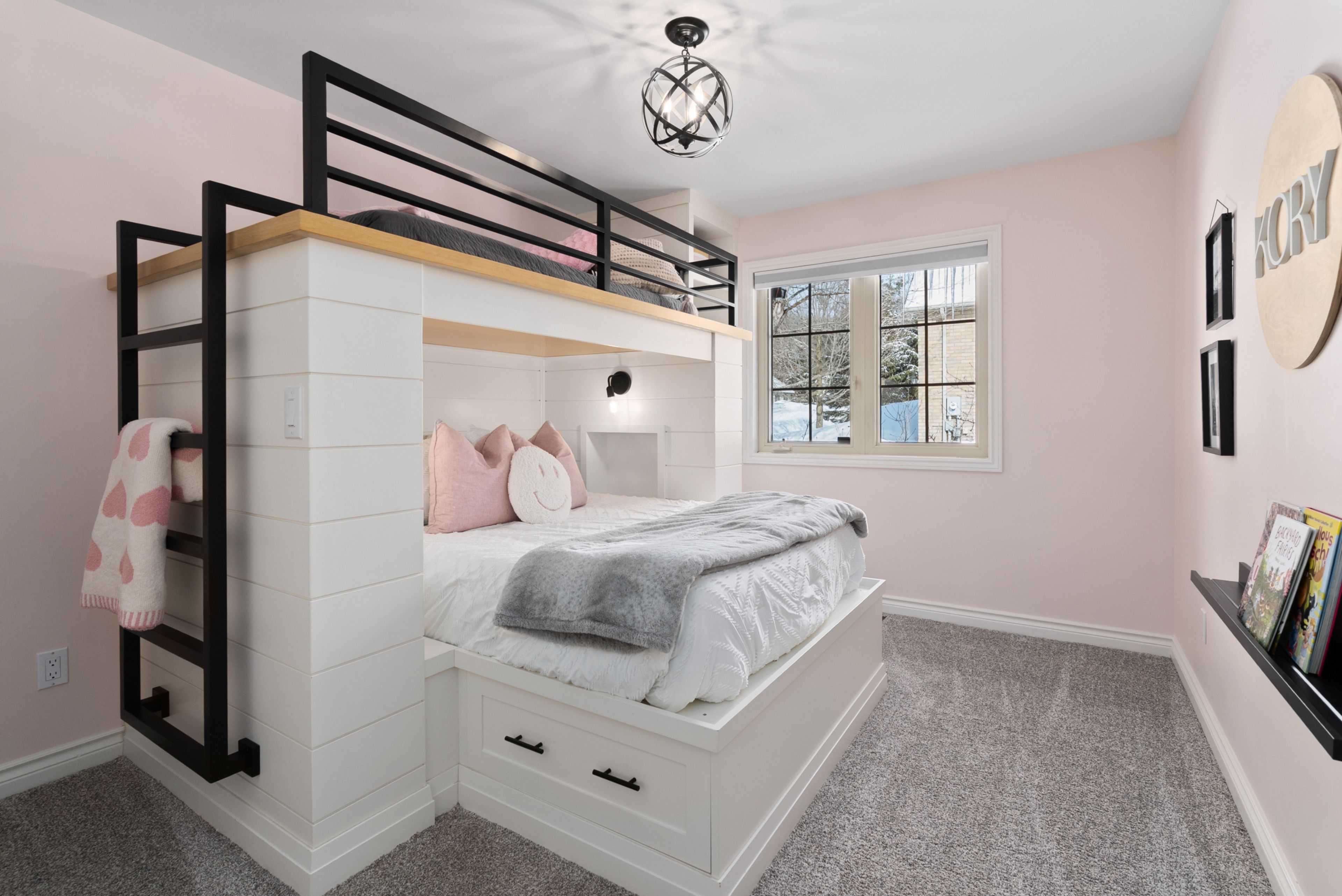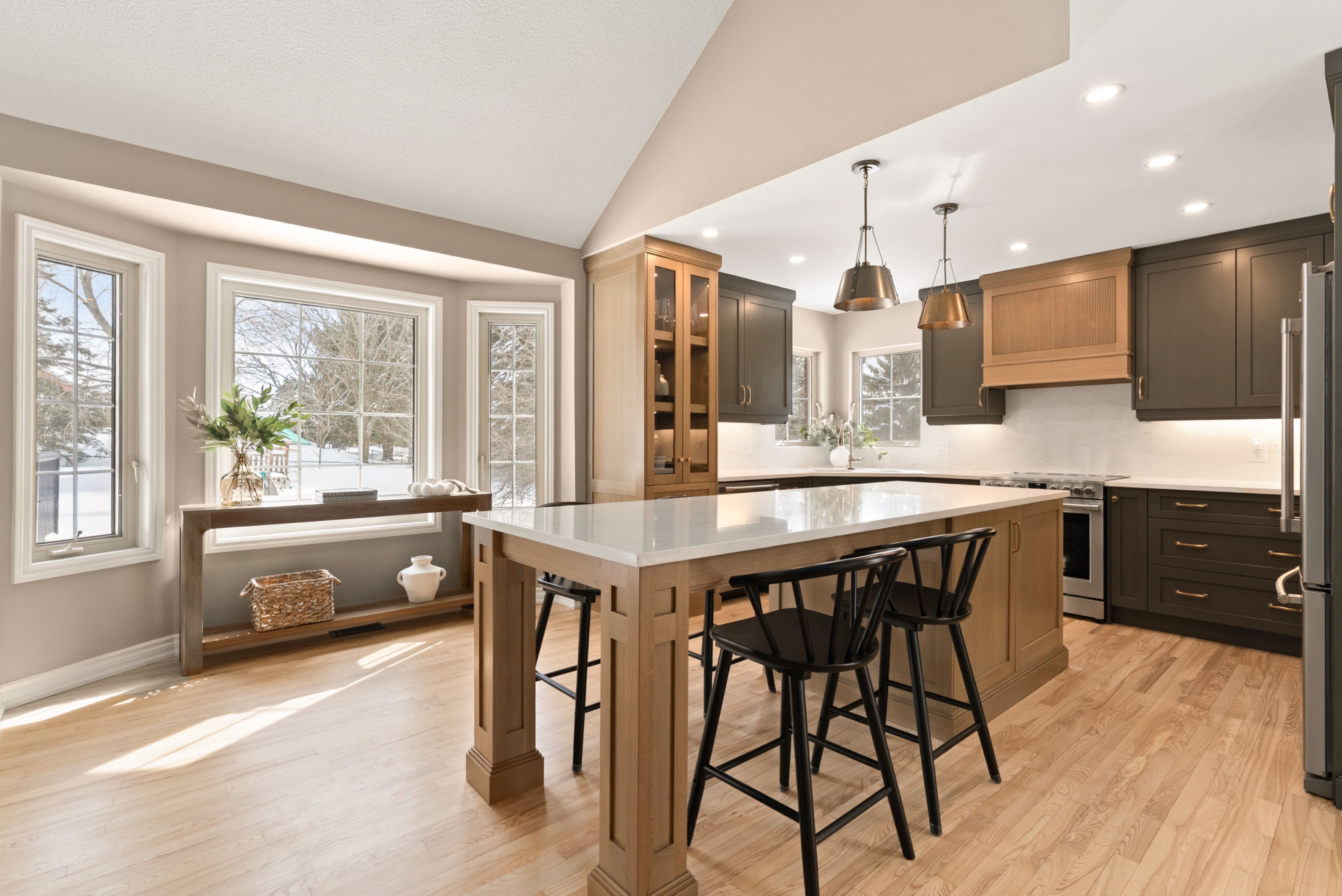 Elevated luxury in prestigious forest hill estates, midhurst. Welcome to an exceptional residence where refined design meets everyday comfort, set on a stunning 102' x 197' park-like lot. This beautifully updated 3+1 bedroom, 3 full bathroom home offers approximately 3,309 sq. Ft. Of finished living space and a rare full-size triple car garage-perfect for a full-size truck or suv. A soaring main level with vaulted and cathedral ceilings creates an immediate sense of grandeur, complemented by a spacious layout featuring a formal dining room, inviting den, main-floor laundry, and an open-concept living room with gas fireplace. The custom kitchen showcases rift-cut oak cabinetry, quartz countertops and backsplash, premium appliances, and elevated lighting-designed for both style and function. The bedroom wing includes three generous bedrooms, highlighted by a luxurious primary suite with custom walk-in closet and spa-inspired ensuite. A recently renovated main bath and an upper loft/recreation space offer flexibility for a home office or media lounge. The lower level provides excellent in-law potential with separate garage access, a spacious bedroom, full bath, abundant storage, and expansive unfinished space ready to customize. Outside, the fully fenced backyard is a private retreat with mature trees, newer deck with pet ramp, hot tub, irrigation system, and ample room to entertain. Notable upgrades include the custom kitchen, refinished hardwood, newer carpeting, updated doors, exterior stonework and front steps, soffits/eaves/downspouts, new furnace, lighting, paint, renovated bathrooms and garage doors. Ideally located near top-rated schools, parks, trails, and amenities-this is a rare offering in sought-after midhurst.