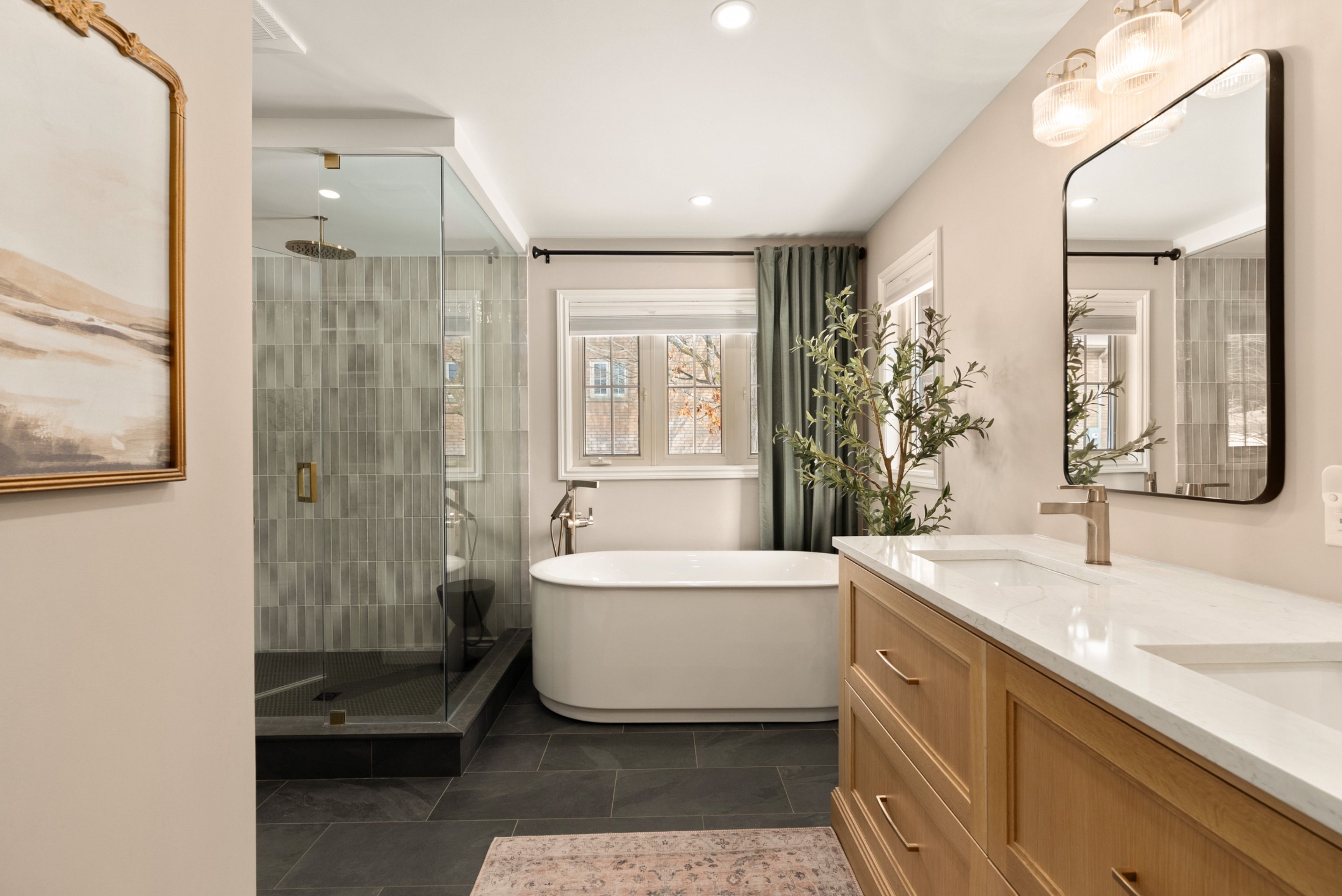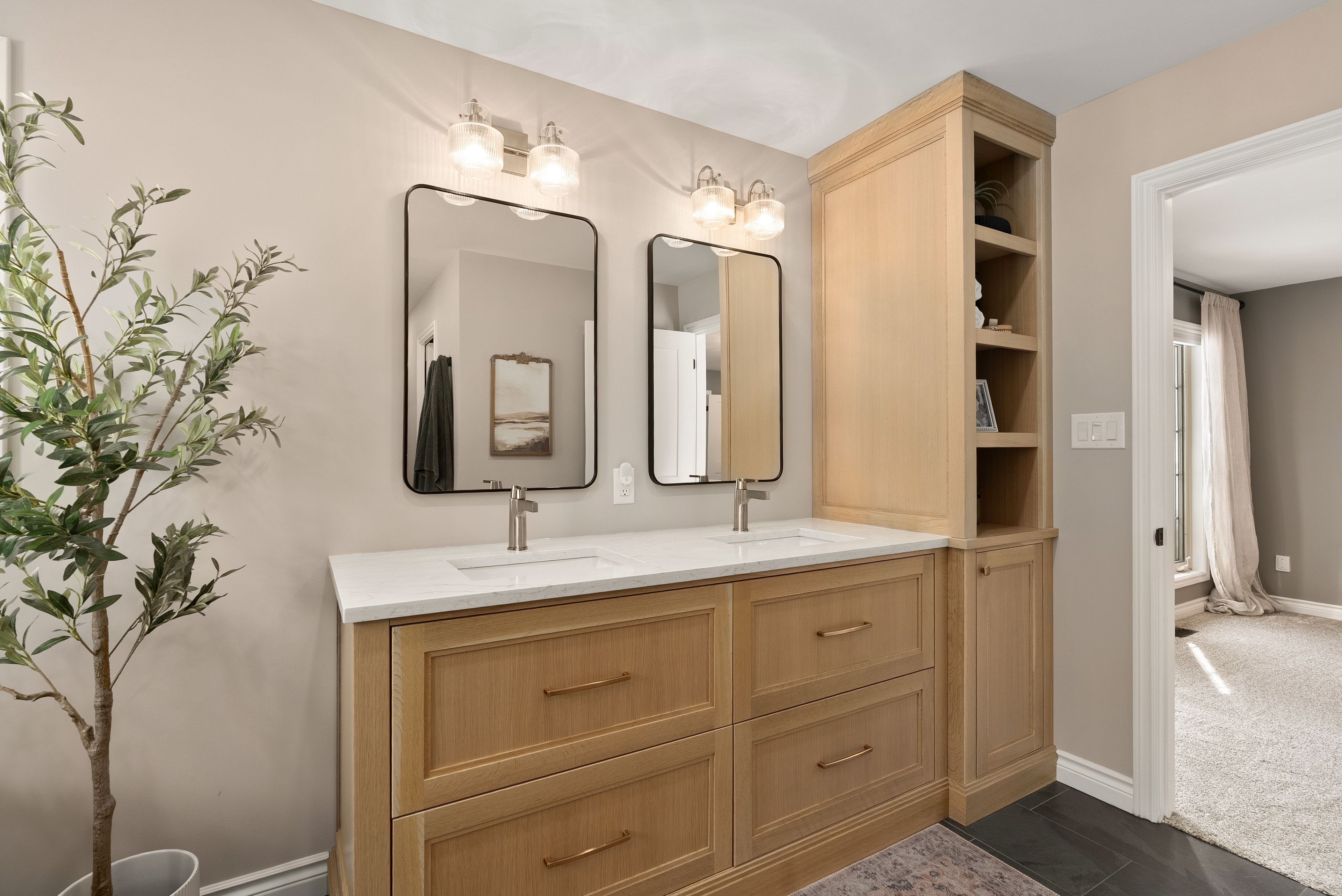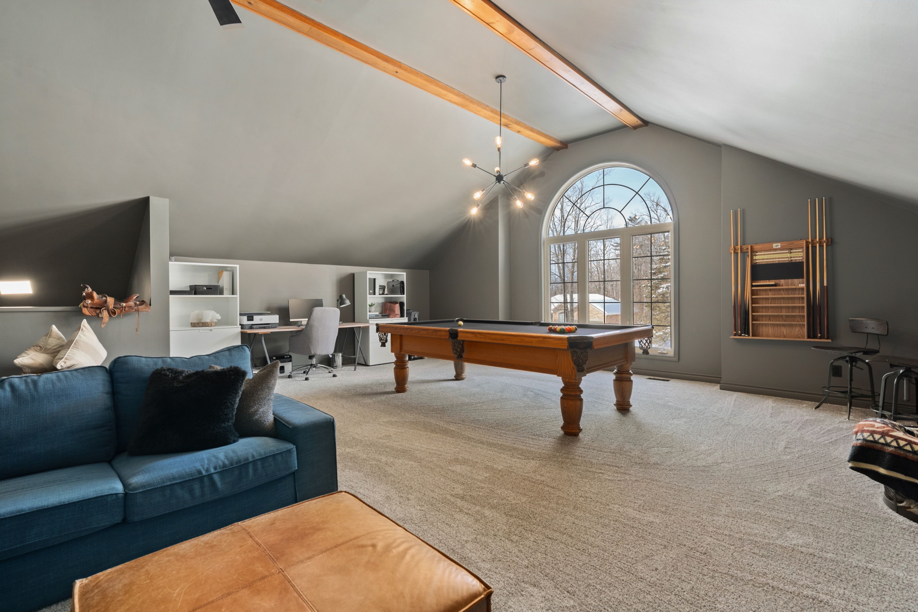 Elevated luxury in prestigious forest hill estates, midhurst. Welcome to an exceptional residence where refined design meets everyday comfort, set on a stunning 102' x 197' park-like lot. This beautifully updated 3+1 bedroom, 3 full bathroom home offers approximately 3,309 sq. Ft. Of finished living space and a rare full-size triple car garage-perfect for a full-size truck or suv. A soaring main level with vaulted and cathedral ceilings creates an immediate sense of grandeur, complemented by a spacious layout featuring a formal dining room, inviting den, main-floor laundry, and an open-concept living room with gas fireplace. The custom kitchen showcases rift-cut oak cabinetry, quartz countertops and backsplash, premium appliances, and elevated lighting-designed for both style and function. The bedroom wing includes three generous bedrooms, highlighted by a luxurious primary suite with custom walk-in closet and spa-inspired ensuite. A recently renovated main bath and an upper loft/recreation space offer flexibility for a home office or media lounge. The lower level provides excellent in-law potential with separate garage access, a spacious bedroom, full bath, abundant storage, and expansive unfinished space ready to customize. Outside, the fully fenced backyard is a private retreat with mature trees, newer deck with pet ramp, hot tub, irrigation system, and ample room to entertain. Notable upgrades include the custom kitchen, refinished hardwood, newer carpeting, updated doors, exterior stonework and front steps, soffits/eaves/downspouts, new furnace, lighting, paint, renovated bathrooms and garage doors. Ideally located near top-rated schools, parks, trails, and amenities-this is a rare offering in sought-after midhurst.
