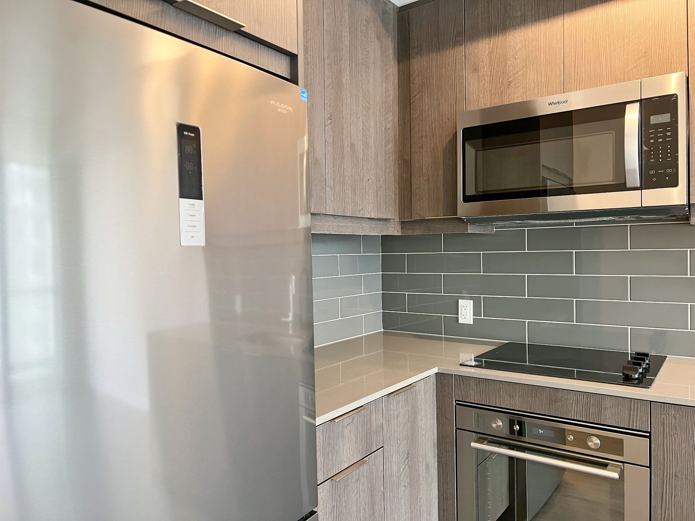 • Open concept layout with a modern kitchen and appliances.