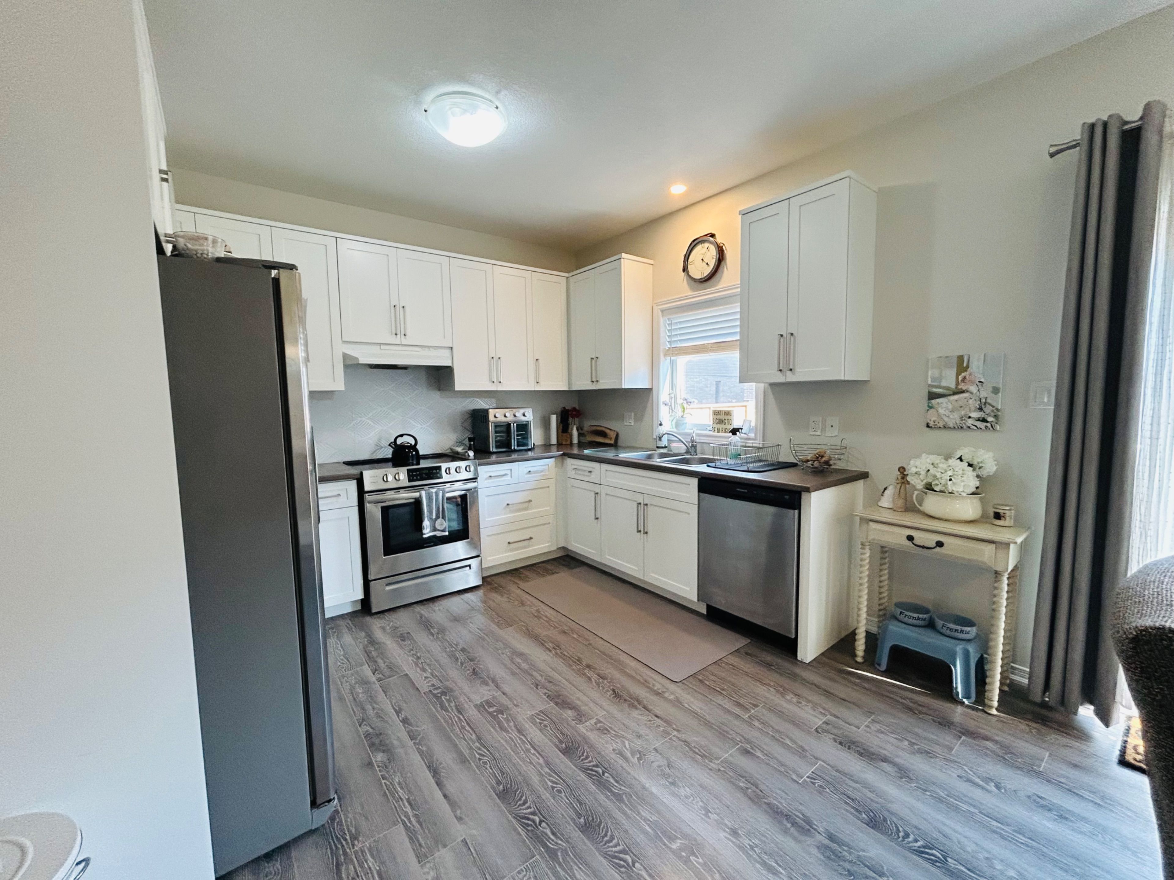 • Generous living space with a comfortable eat-in kitchen and stainless steel appliances.