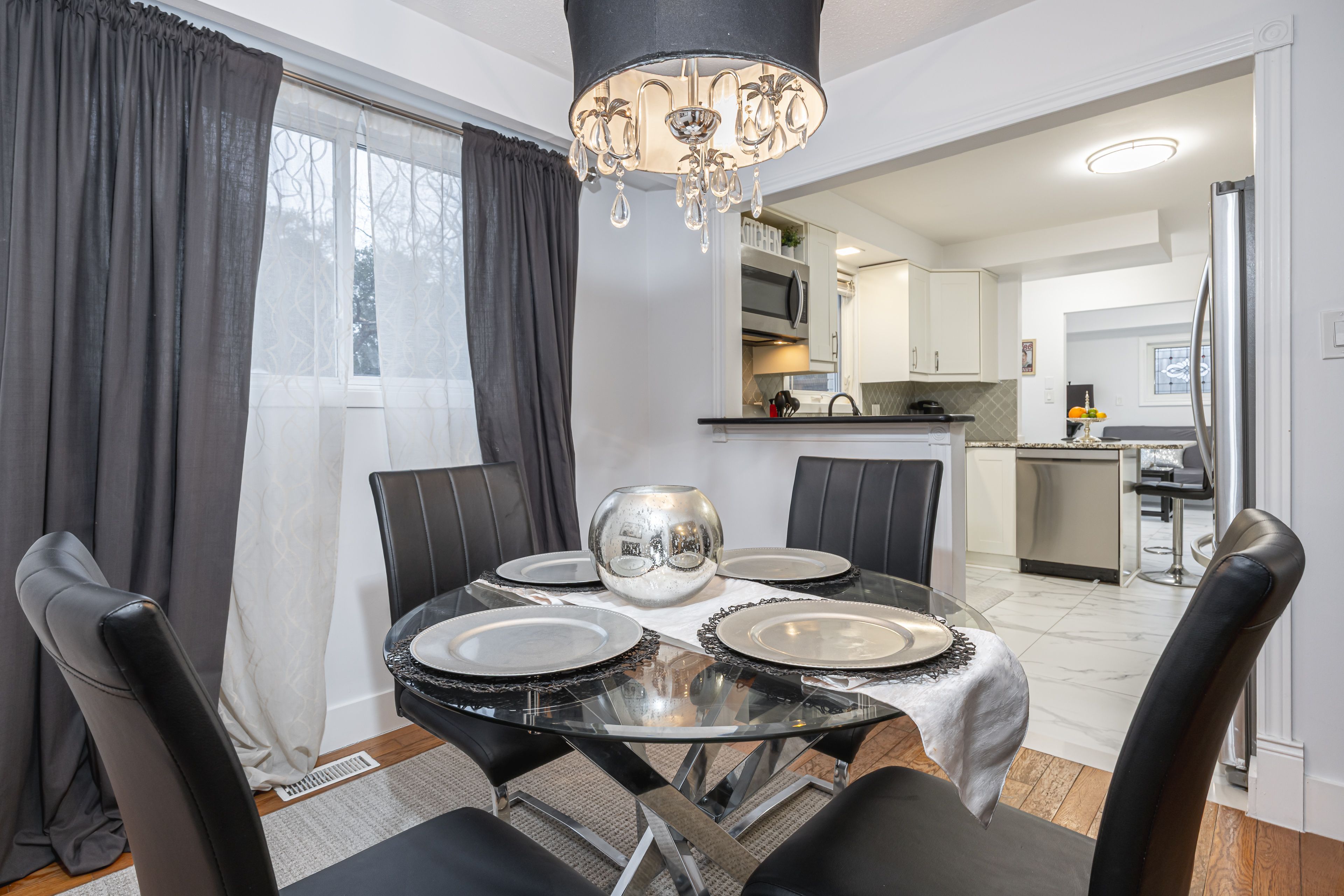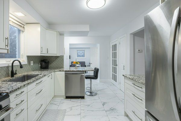 • Updated kitchen with granite countertops and stainless steel appliances.