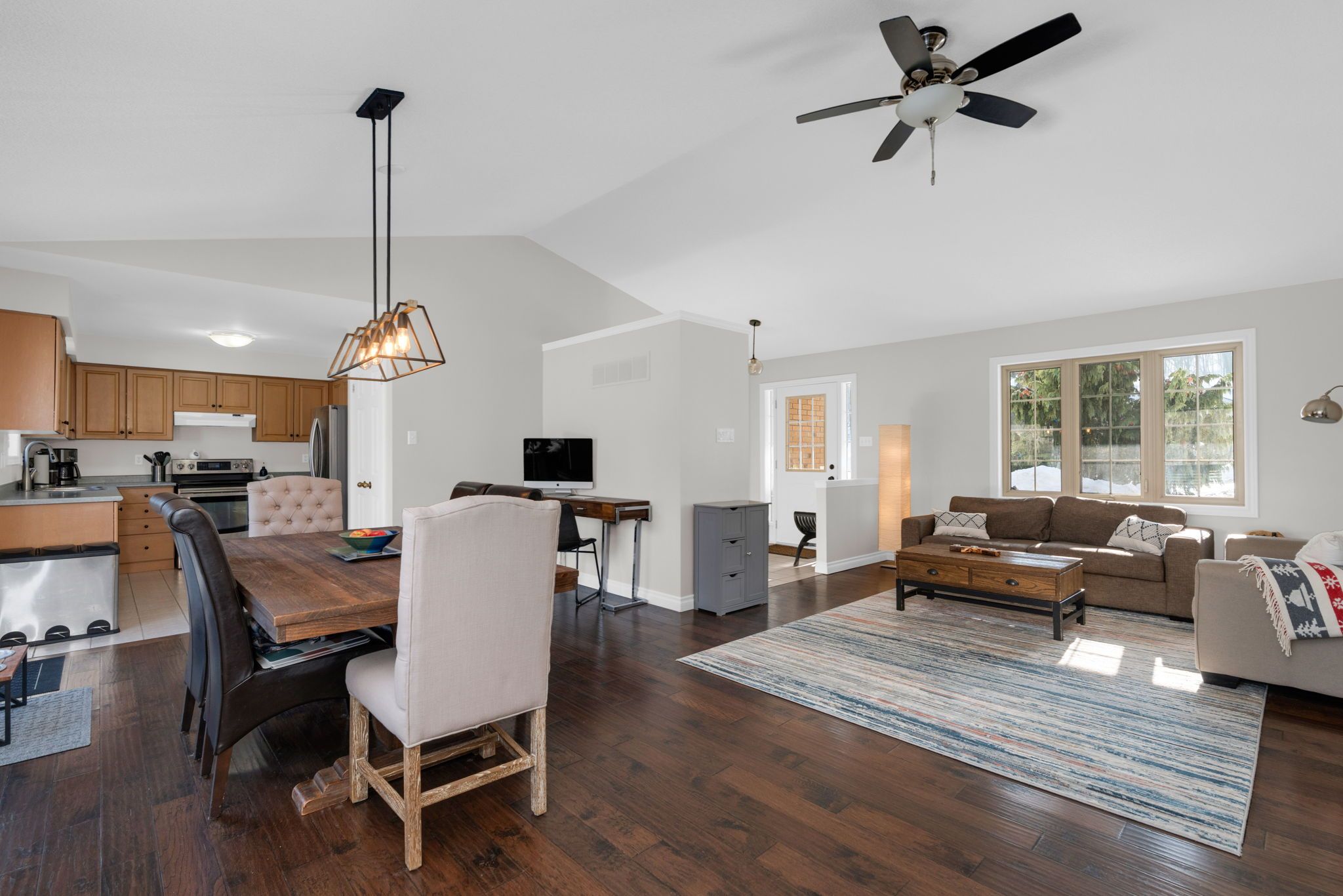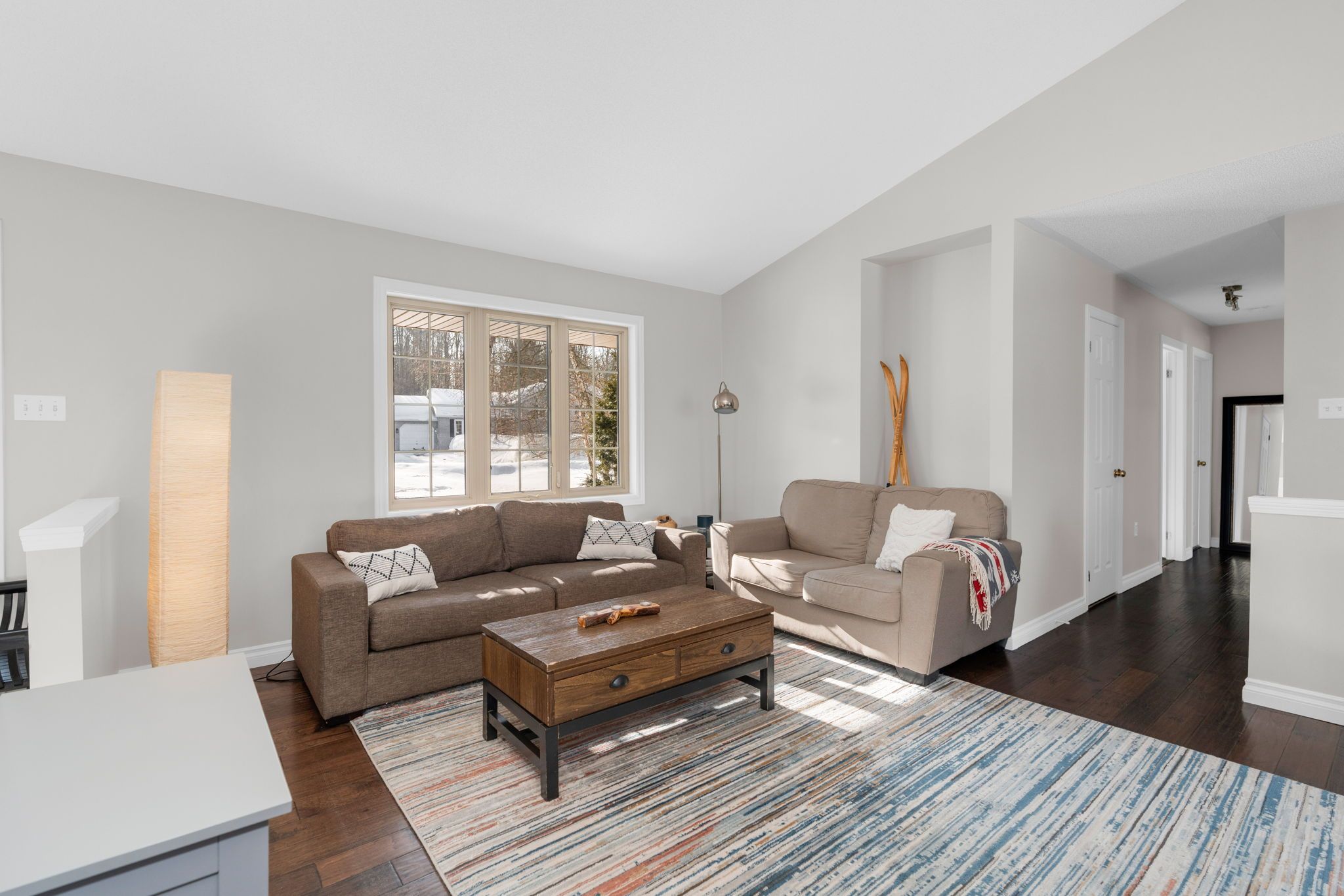 Welcome to 32 hickory lane, nestled in the highly sought-after community of sugarbush. This bright and airy 3-bedroom, 1. 5-bath bungalow offers a functional layout, generous living spaces, and a peaceful setting perfect for families or those seeking main-floor living. Step inside to a spacious living room filled with natural light, seamlessly open to the expansive dining area-an ideal space for hosting gatherings or enjoying everyday meals. The kitchen is thoughtfully designed with abundant cabinetry and generous counter space, providing both practicality and flow for entertaining and daily life. The primary bedroom offers comfort and convenience with ensuite privilege to a shared 4-piece bath, creating a semi-private retreat. Two additional bedrooms are generous in size and bathed in natural light, making them perfect for family members, guests, or a home office. A convenient powder room completes the main floor. The full, partially finished walk-out basement expands your living space with a large family room featuring a cozy fireplace-perfect for relaxing evenings. The remaining unfinished portions of the basement are an expansive space for additional bedrooms, storage, rec room, etc. With this area also featuring a rough in bath. Outdoors, enjoy a large deck overlooking the expansive pool size lot -an ideal setting for summer entertaining, children at play, or simply enjoying the surrounding natural beauty. Located in desirable sugarbush, this home offers the perfect balance of tranquility and convenience. Surrounded by mature trees and scenic landscapes, the area is known for its peaceful atmosphere while still providing easy access to golf courses, ski hills, trails, and nearby amenities. Located only steps from sweetwater park which features skating, tobogganing, playground and numerous family focused events & only a 5 min drive to the new state of the art horseshoe heights public school