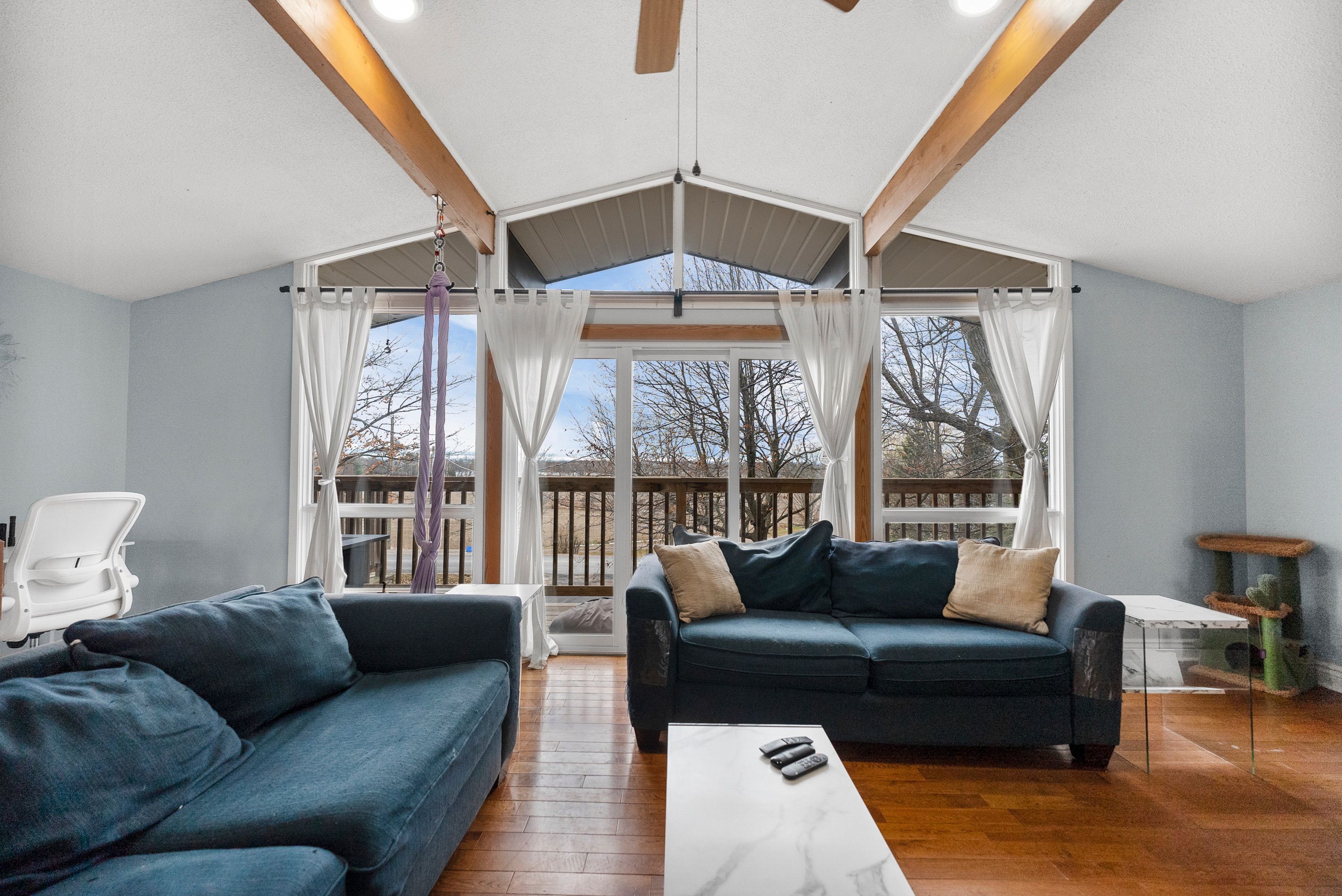 • Two spacious living rooms with cozy fireplaces and large inviting windows.