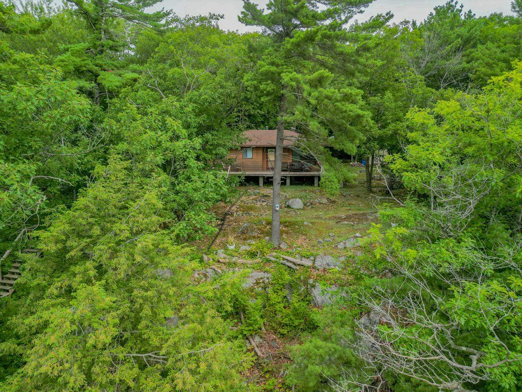 Boat access - georgian bay - rose island. This 2-bedroom, 1-bathroom cottage on rose island offers a simple and relaxed georgian bay getaway. Set on a deep, private lot with views of the water it's a place to slow down and enjoy time outside. Spend your days on the deck, down by the shoreline or out exploring the bay by boat. The setting is quiet and peaceful with the privacy that comes with boat-access-only living. Inside the cottage is comfortable and practical with hardwood floors, a wood stove and a bright kitchen that works well for cottage meals and easy living. With good outdoor space and beautiful georgian bay views, this rose island cottage offers a natural and easy escape to the water - a place to relax, explore the bay and enjoy the simple rhythm of cottage life.