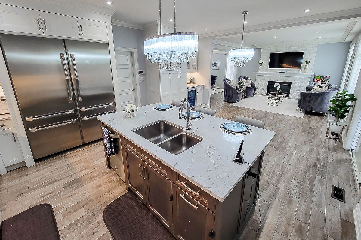 Welcome to this beautifully designed 3000 sq ft home on a premium pie-shaped lot in stoney creek's sought-after lake pointe community. This property sits on kingspoint circle, just steps from the lake, fifty point conservation area, major shopping, and convenient commuter routes. Built by marcasa homes, the exterior features brick with stone and stucco accents for a modern, upscale look. Inside, you're greeted by a wide open layout, an impressive oak staircase with iron spindles, and contemporary hardwood floors throughout. The craftsmanship shows in every detail. The kitchen is a standout, with extended maple cabinetry, textured glass display doors, pot drawers, a large breakfast island, a pantry-style fridge enclosure, granite counters, and a striking backsplash. The family room offers a gas fireplace with a recessed tv niche and elegant millwork, including decorative ceilings, deep baseboards, and upgraded interior doors. Upstairs, the primary suite is a true retreat with a luxury walk-in closet and a spa-inspired ensuite featuring a double vanity. The second bedroom also has its own ensuite, ideal for family or guests. This home blends quality construction, thoughtful design, and a prime location, offering a move-in-ready lifestyle near the waterfront and nature.
