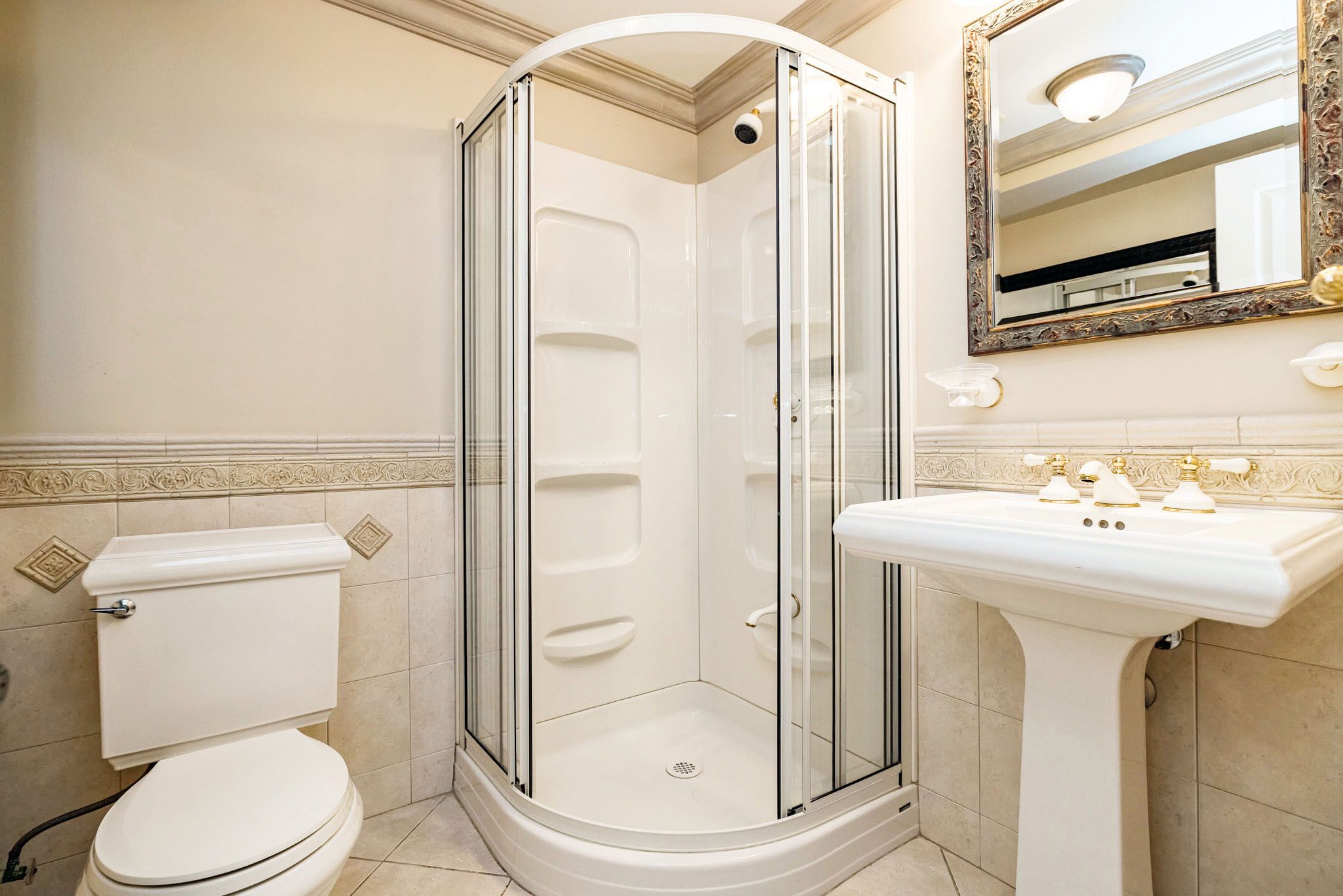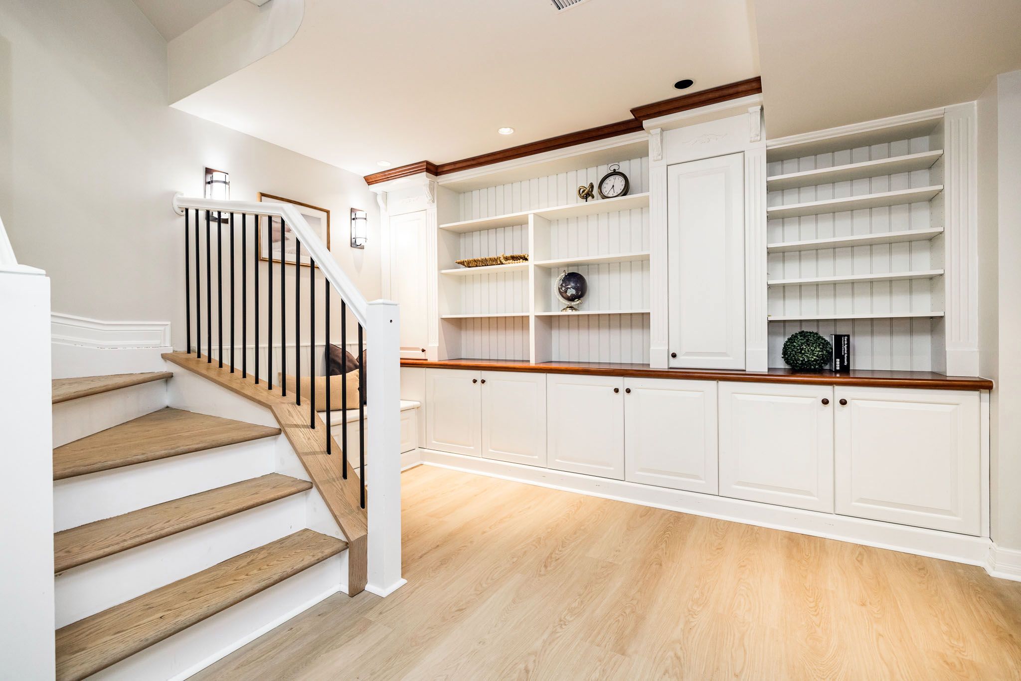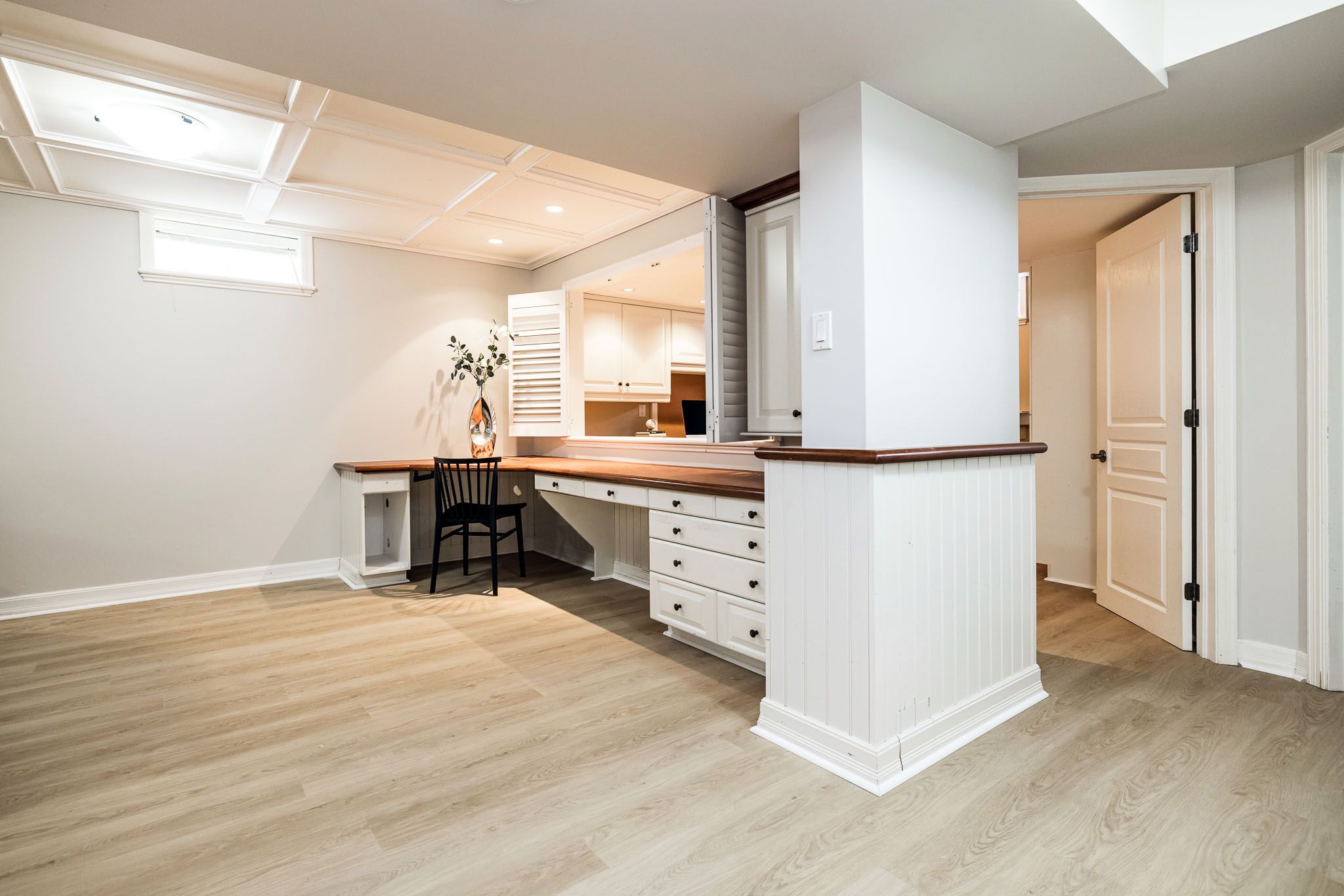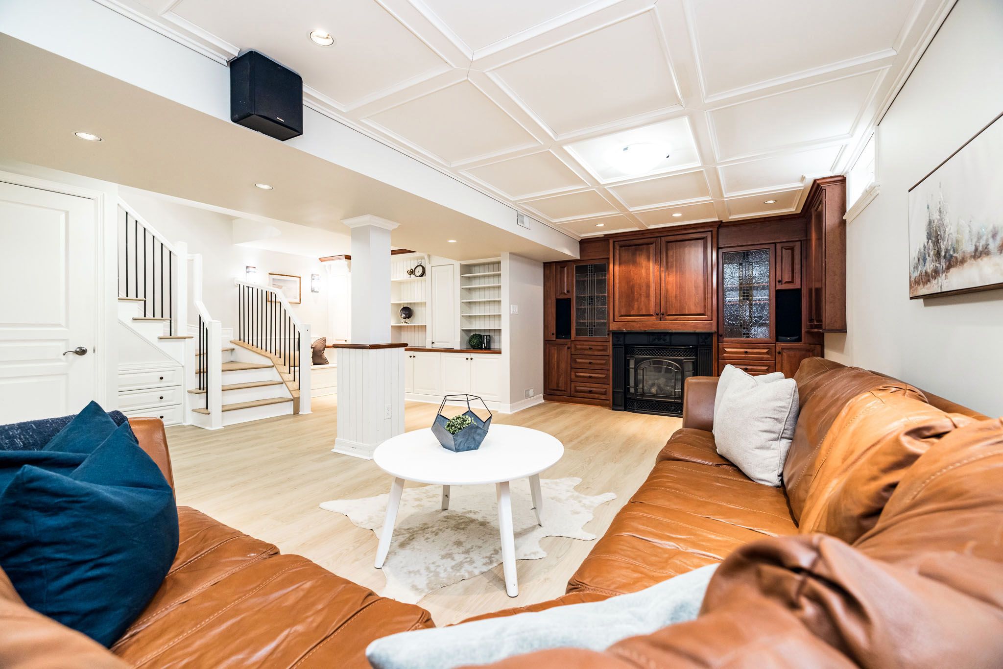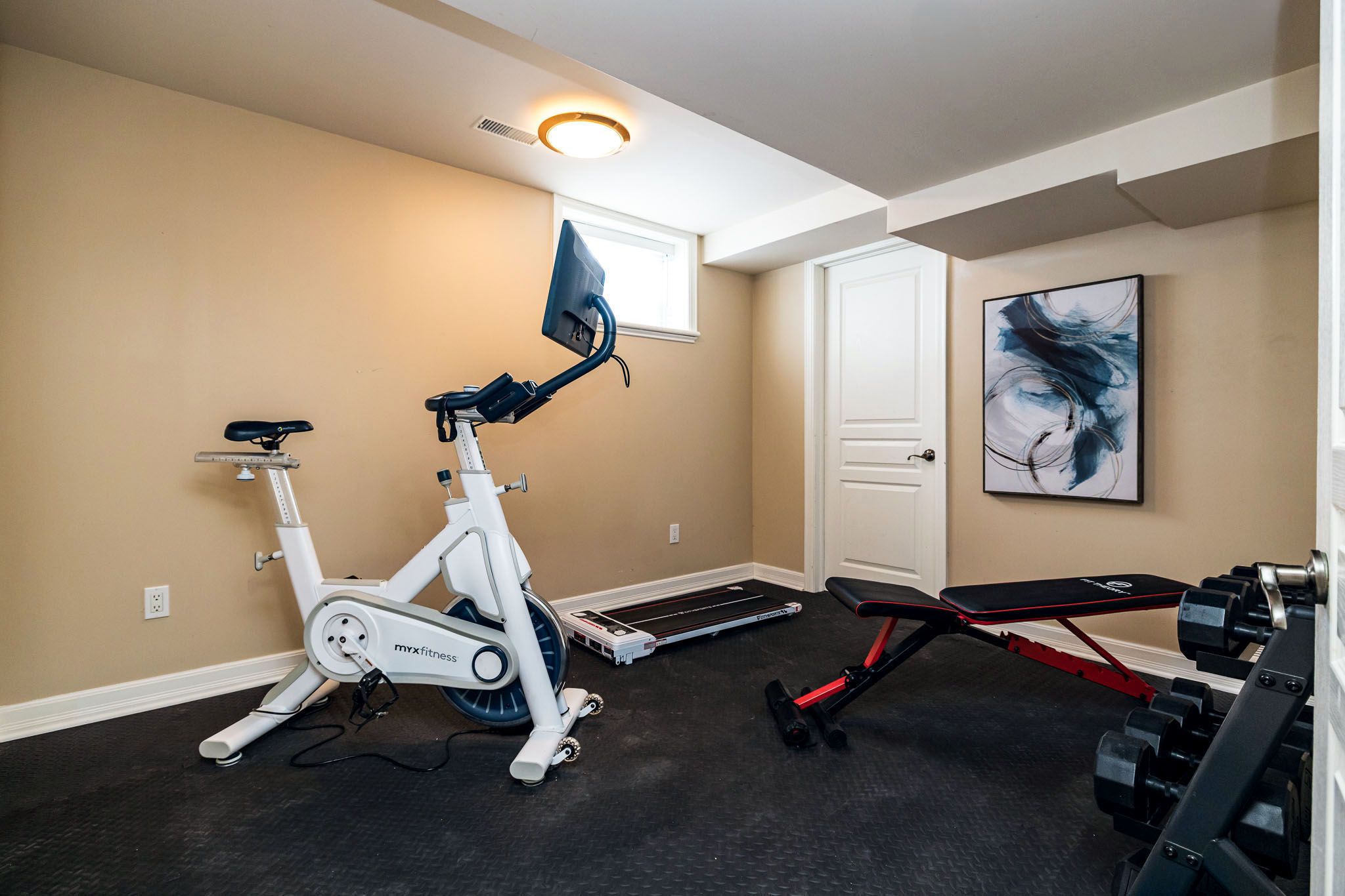 • Finished lower level with recreation area, gym, and bar for added living space.