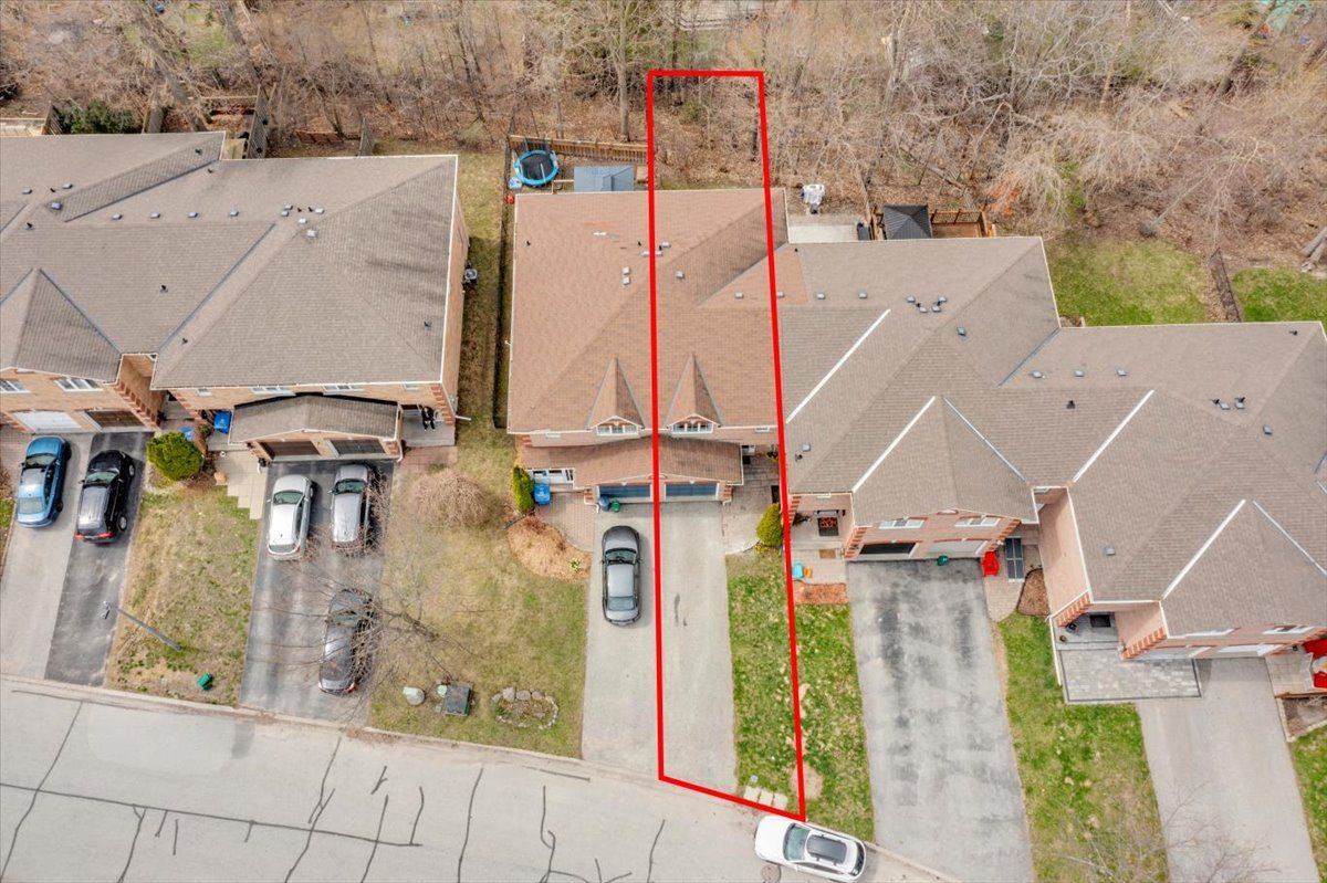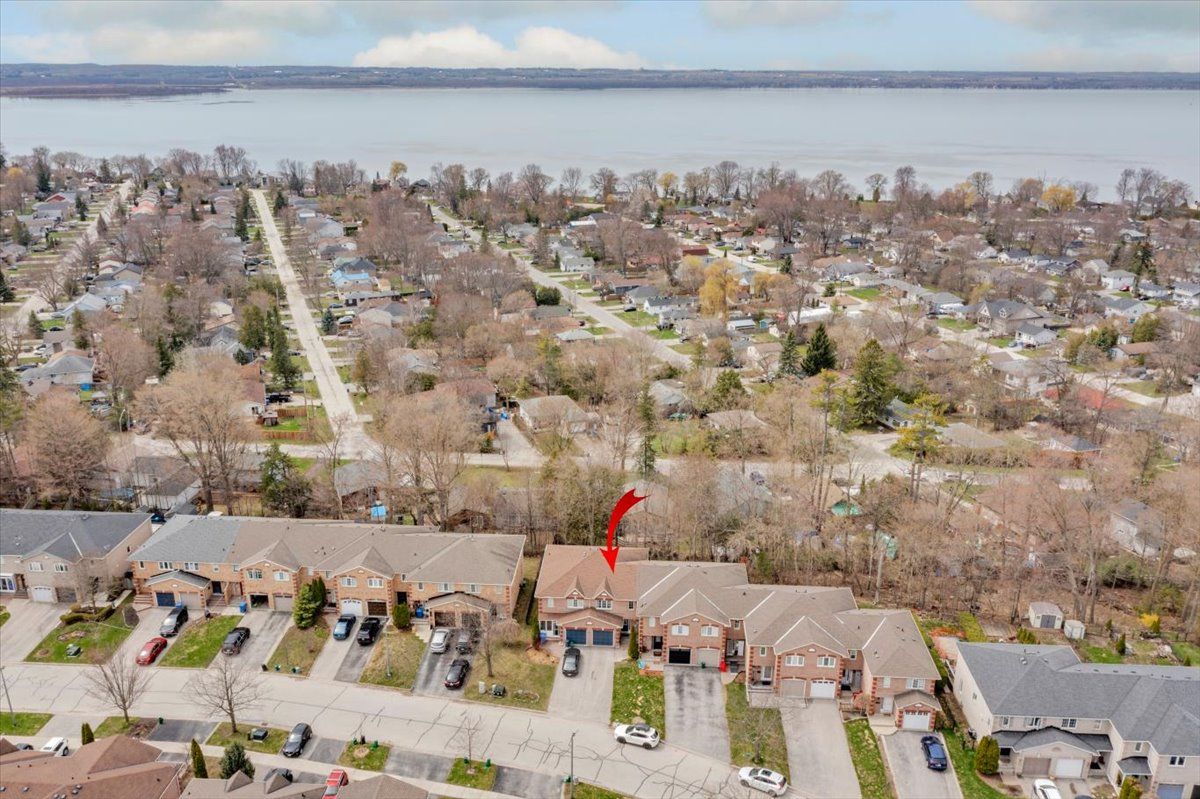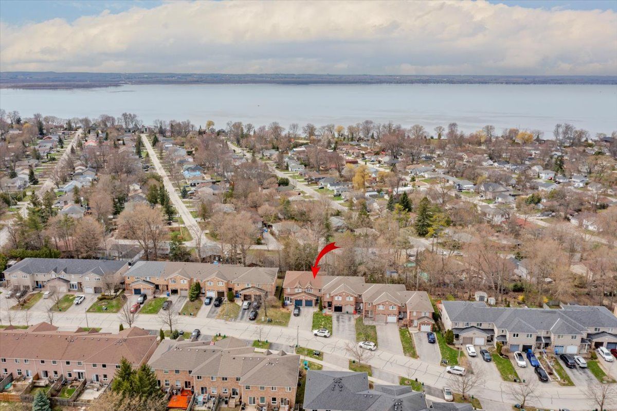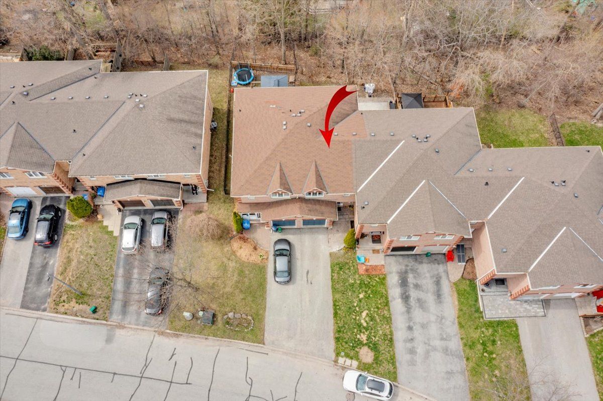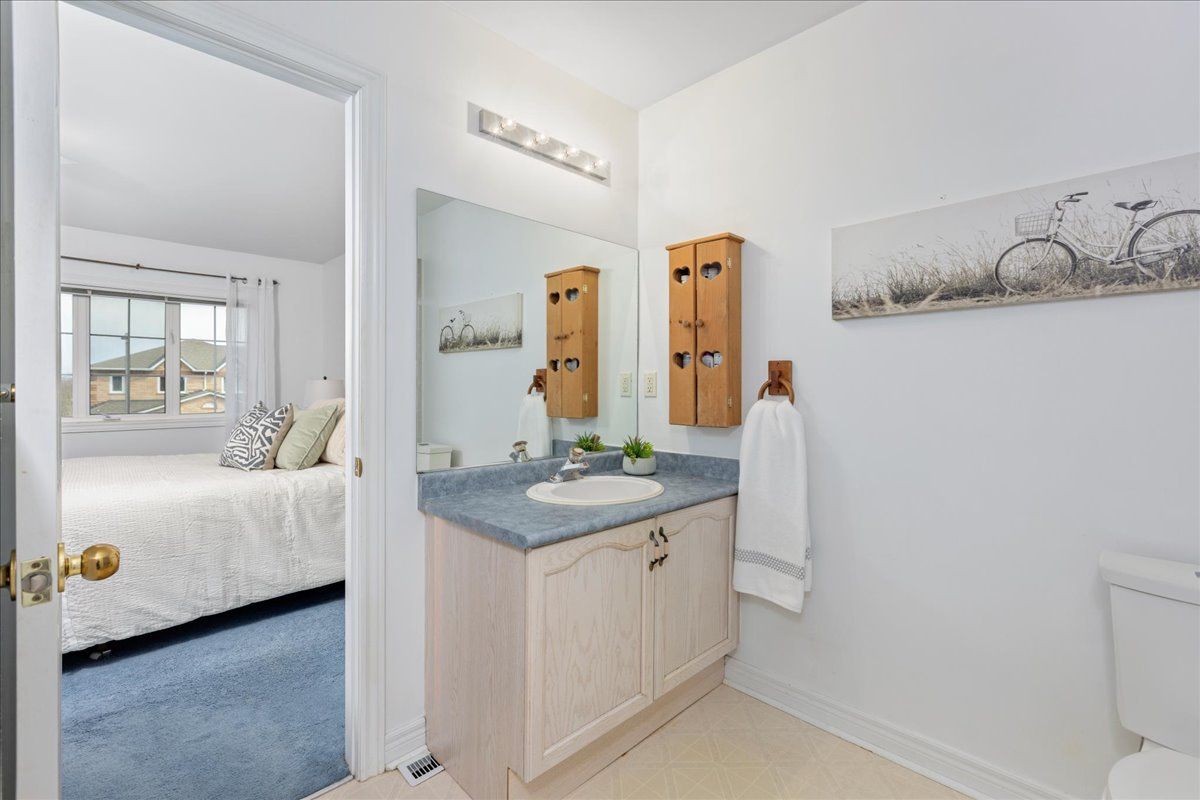 Welcome to this well maintained freehold brick townhome, tucked away on a quiet, family friendly court just minutes from schools, shopping, and lake simcoe. Offering approximately 1,300 sq ft, this bright 2-storey home features 3 bedrooms and 2 bathrooms, perfect for low-maintenance living. The main floor welcomes you with a bright foyer with italian porcelain tiles and a convenient 2-piece bath, leading into an open concept living and dining area alongside a functional kitchen. Walk out to a private deck overlooking a fenced, tree-lined backyard, complete with a charming lilac tree and peony plant. Upstairs, you'll find three bedrooms, including a spacious primary bedroom with semi-ensuite access, a walk-in closet and a dedicated office nook, ideal for working from home. The unfinished basement offers excellent potential for additional living space or storage. Enjoy the convenience of an attached garage and a driveway with parking for two vehicles, with no sidewalk for added ease. Located close to parks, transit, and everyday amenities, this is a fantastic opportunity for first-time buyers or growing families.