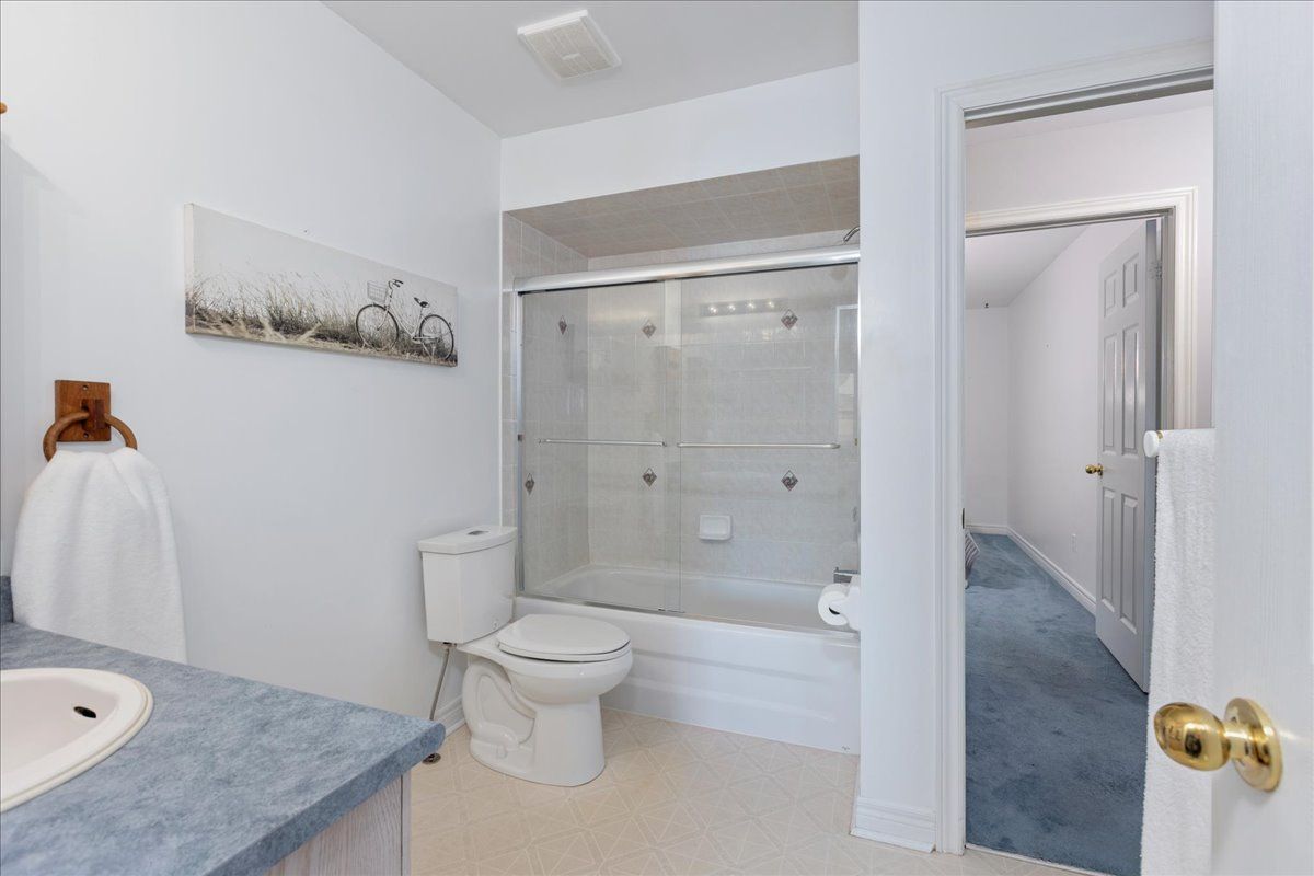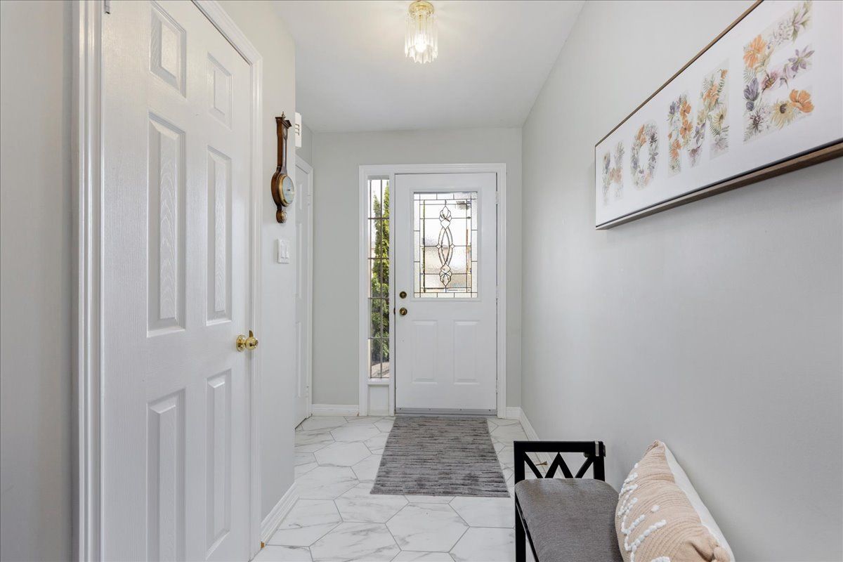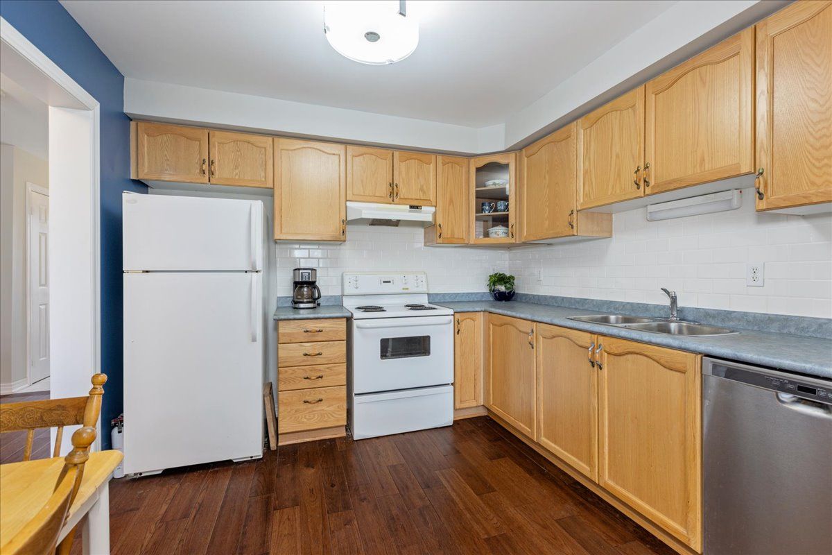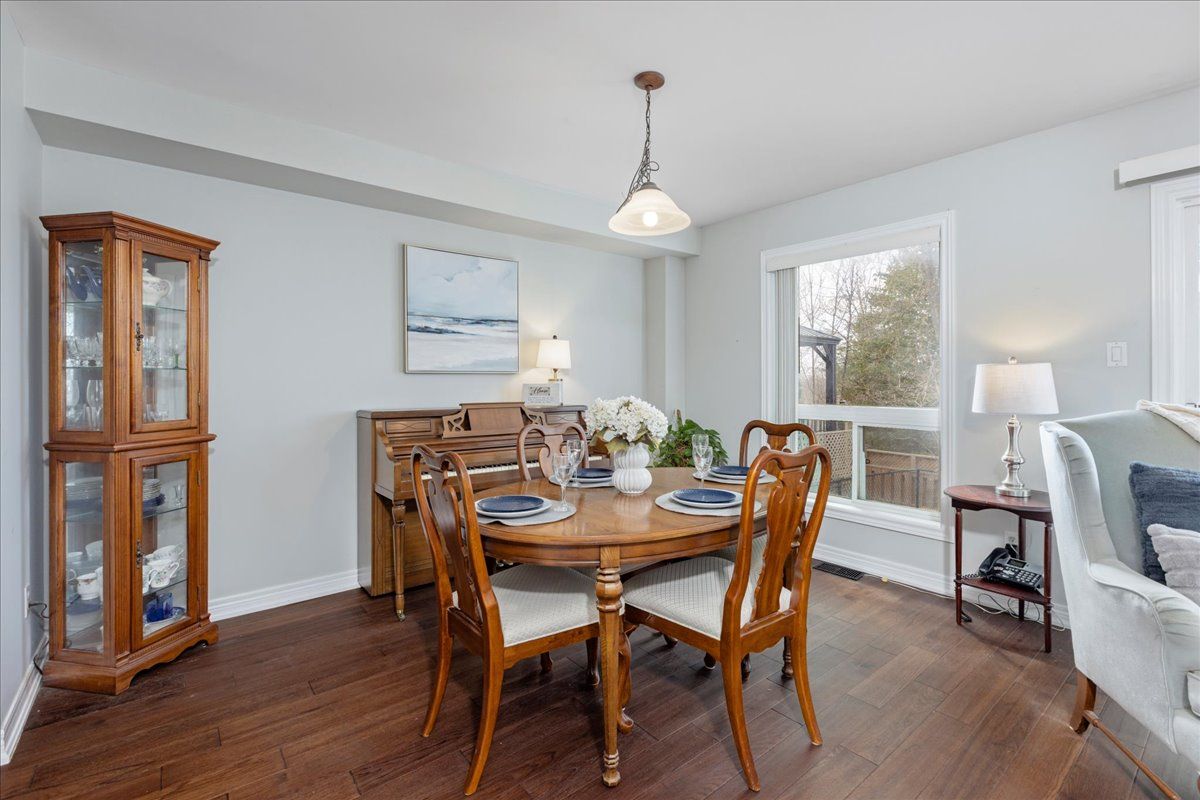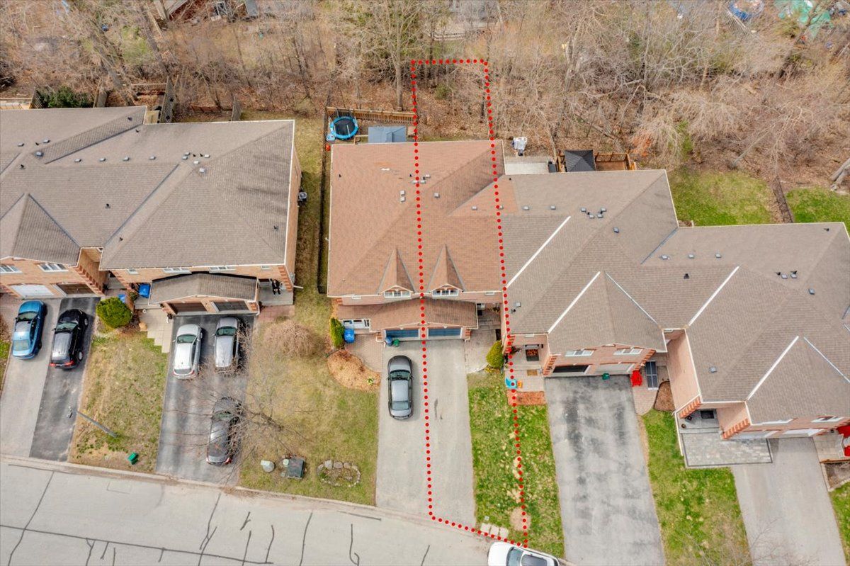 Welcome to this well maintained freehold brick townhome, tucked away on a quiet, family friendly court just minutes from schools, shopping, and lake simcoe. Offering approximately 1,300 sq ft, this bright 2-storey home features 3 bedrooms and 2 bathrooms, perfect for low-maintenance living. The main floor welcomes you with a bright foyer with italian porcelain tiles and a convenient 2-piece bath, leading into an open concept living and dining area alongside a functional kitchen. Walk out to a private deck overlooking a fenced, tree-lined backyard, complete with a charming lilac tree and peony plant. Upstairs, you'll find three bedrooms, including a spacious primary bedroom with semi-ensuite access, a walk-in closet and a dedicated office nook, ideal for working from home. The unfinished basement offers excellent potential for additional living space or storage. Enjoy the convenience of an attached garage and a driveway with parking for two vehicles, with no sidewalk for added ease. Located close to parks, transit, and everyday amenities, this is a fantastic opportunity for first-time buyers or growing families.