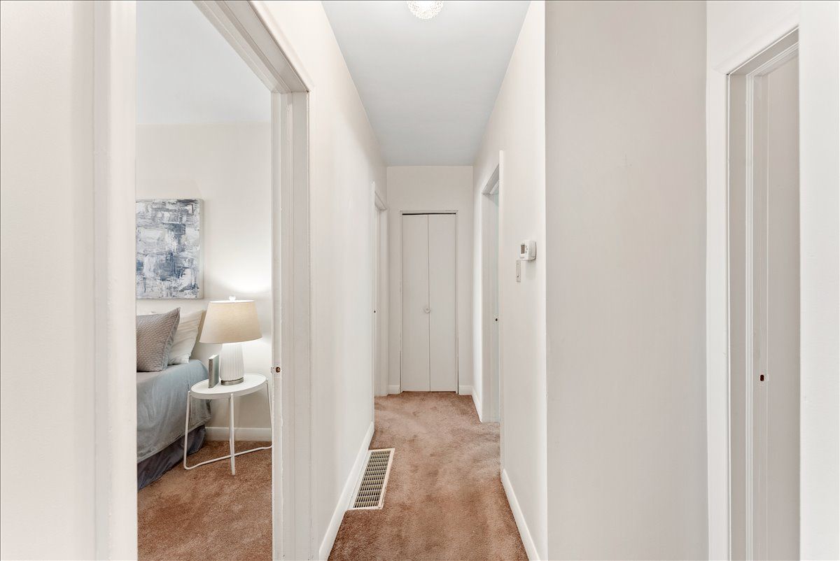 • Hardwood flooring under carpet offers potential for timeless style.