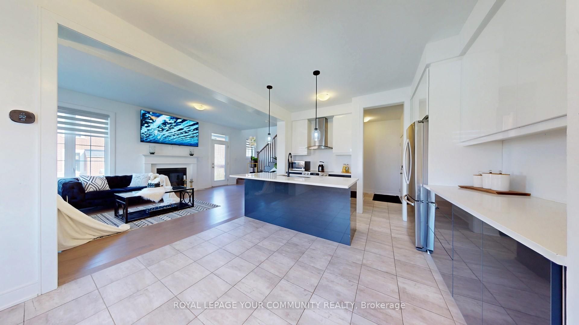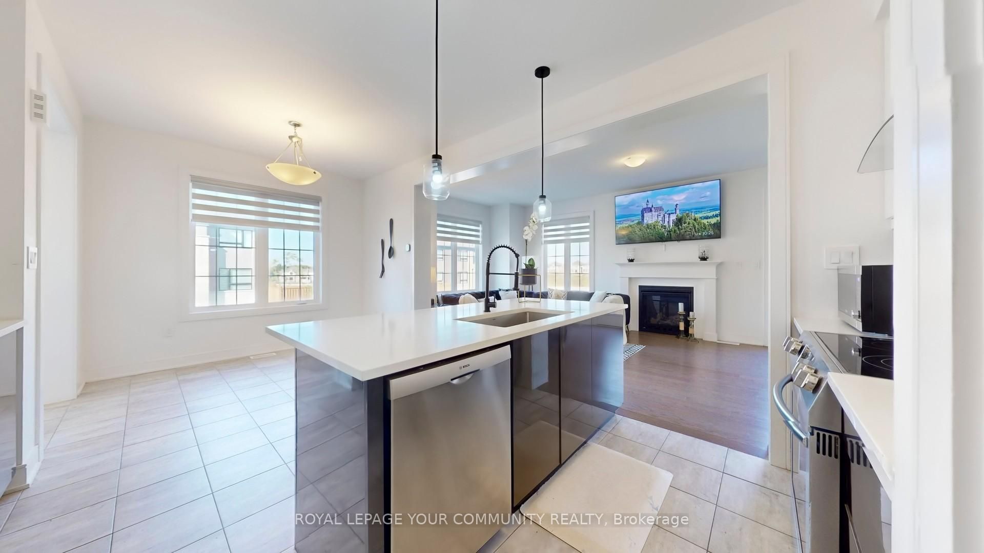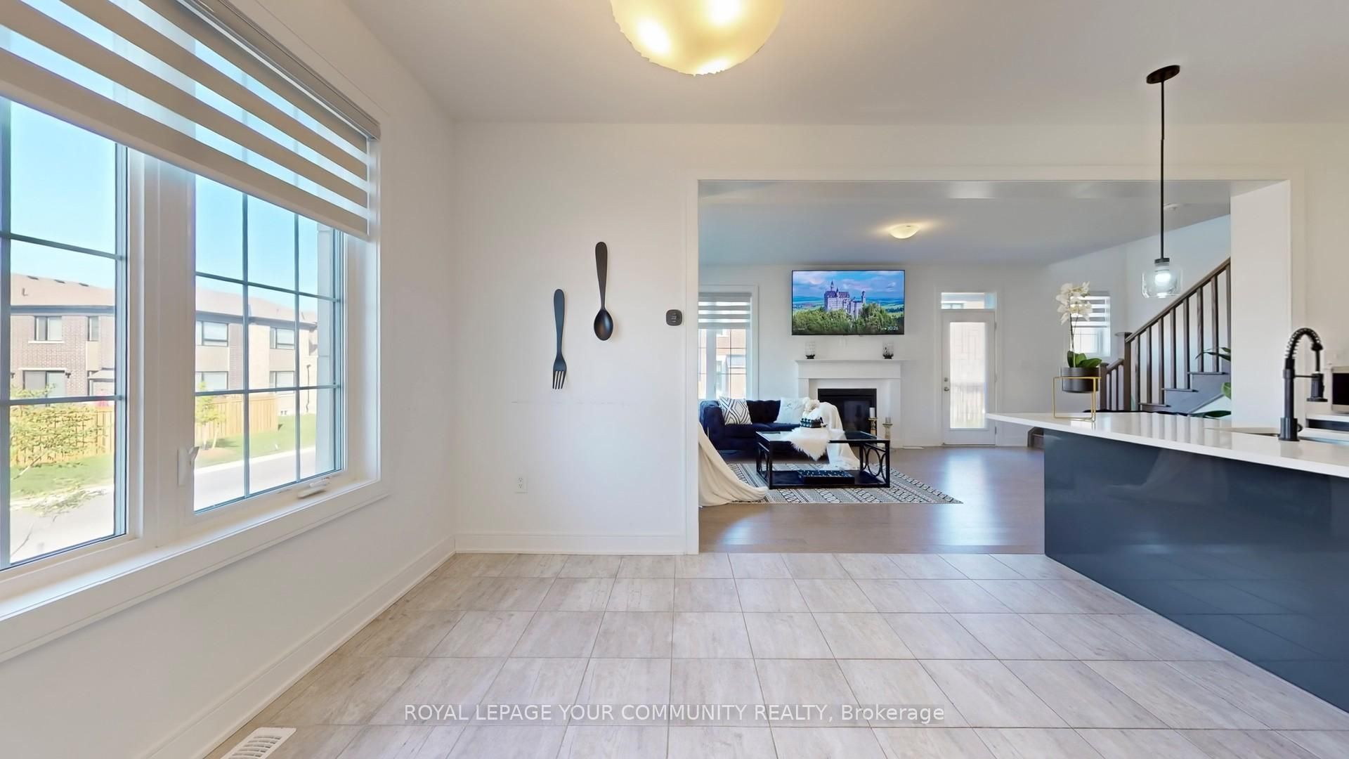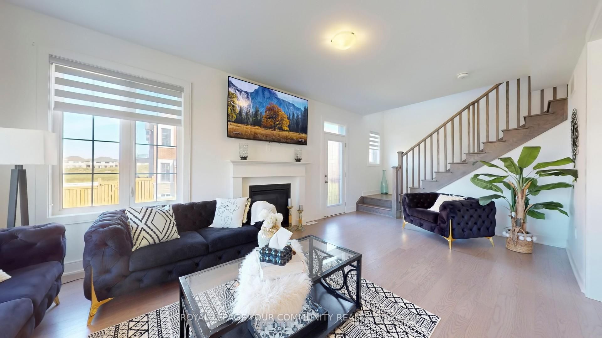 Welcome to this stunning, one-year-new detached residence situated on a premium corner lot! Featuring an attached 2-car garage, a double-wide driveway, and no sidewalk, this property offers both convenience and curb appeal. Step through the inviting double-door entry into a bright, open-concept layout highlighted by 10 ft. Ceilings, hardwood flooring, and custom zebra blinds throughout the main and second levels. The heart of the home is the impressive eat-in kitchen, complete with a large island with breakfast bar, quartz countertops, high-gloss cabinetry, stainless steel appliances. Cozy dining area. The open-concept living room is equally inviting, showcasing a natural gas fireplace and a walkout to the backyard. The main floor also features a stylish 2-piece bath, two closets, and direct garage access. Elegant oak stairs lead to the upper level, where the spacious primary suite awaits with a walk-in closet and a luxurious 4-piece ensuite offering two sinks and a shower with glass door. Three additional bedrooms, each with double closets plus a 4-piece main bath with two sinks provide plenty of room for family and guests. A full, unfinished basement offers endless potential for customization and future expansion. Perfectly located near shopping, restaurants, schools, public transit, and more, this home also provides easy access to highway 400 and highway 27 for seamless commuting.