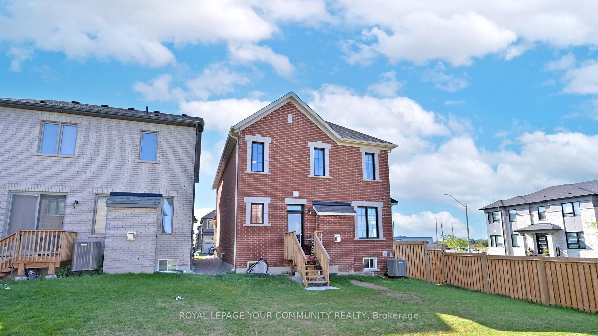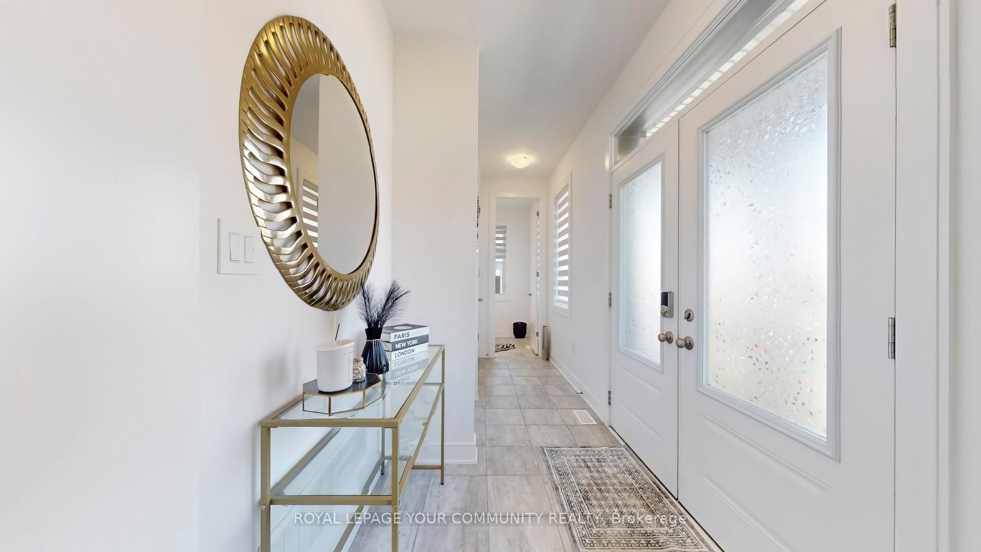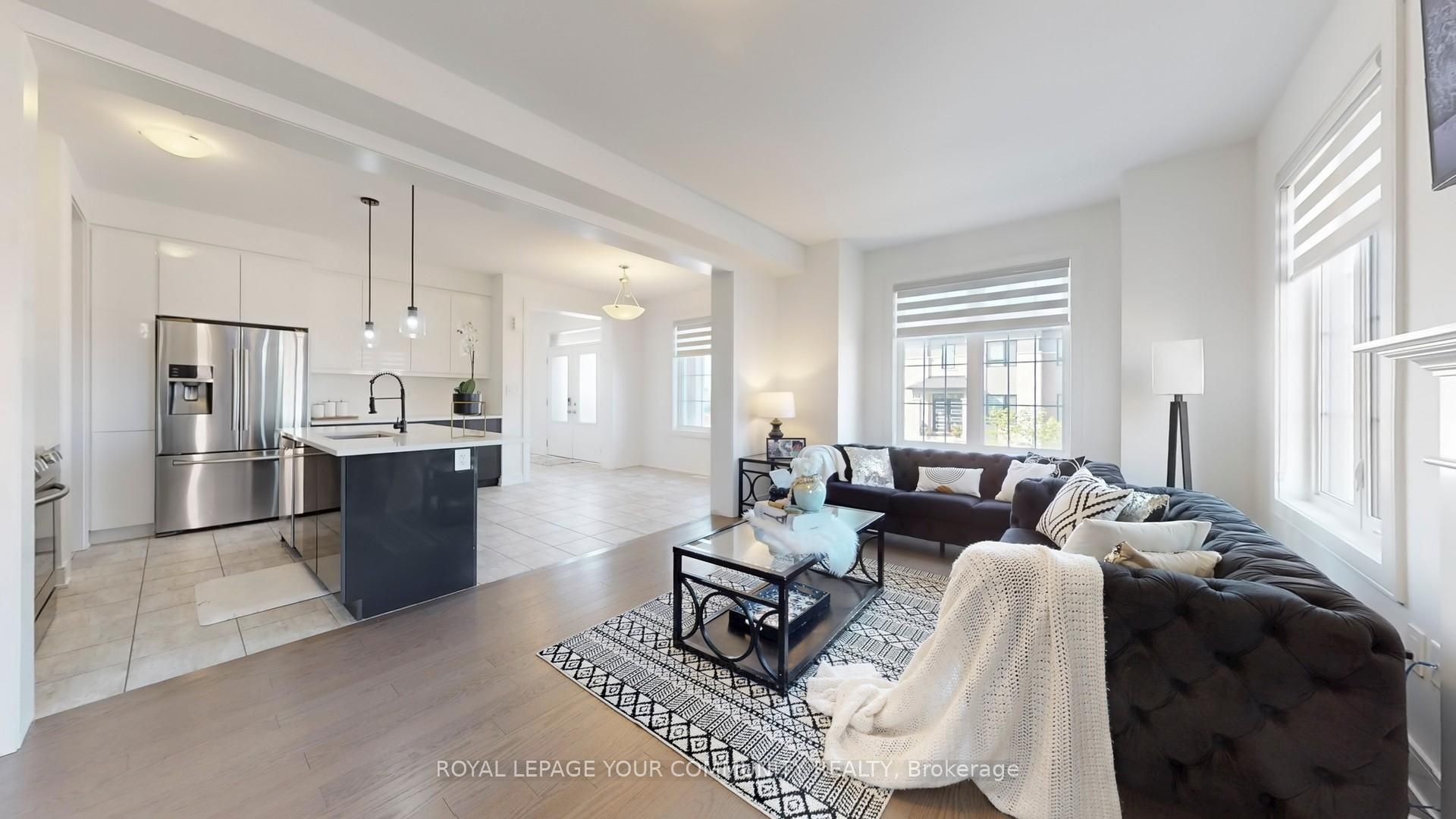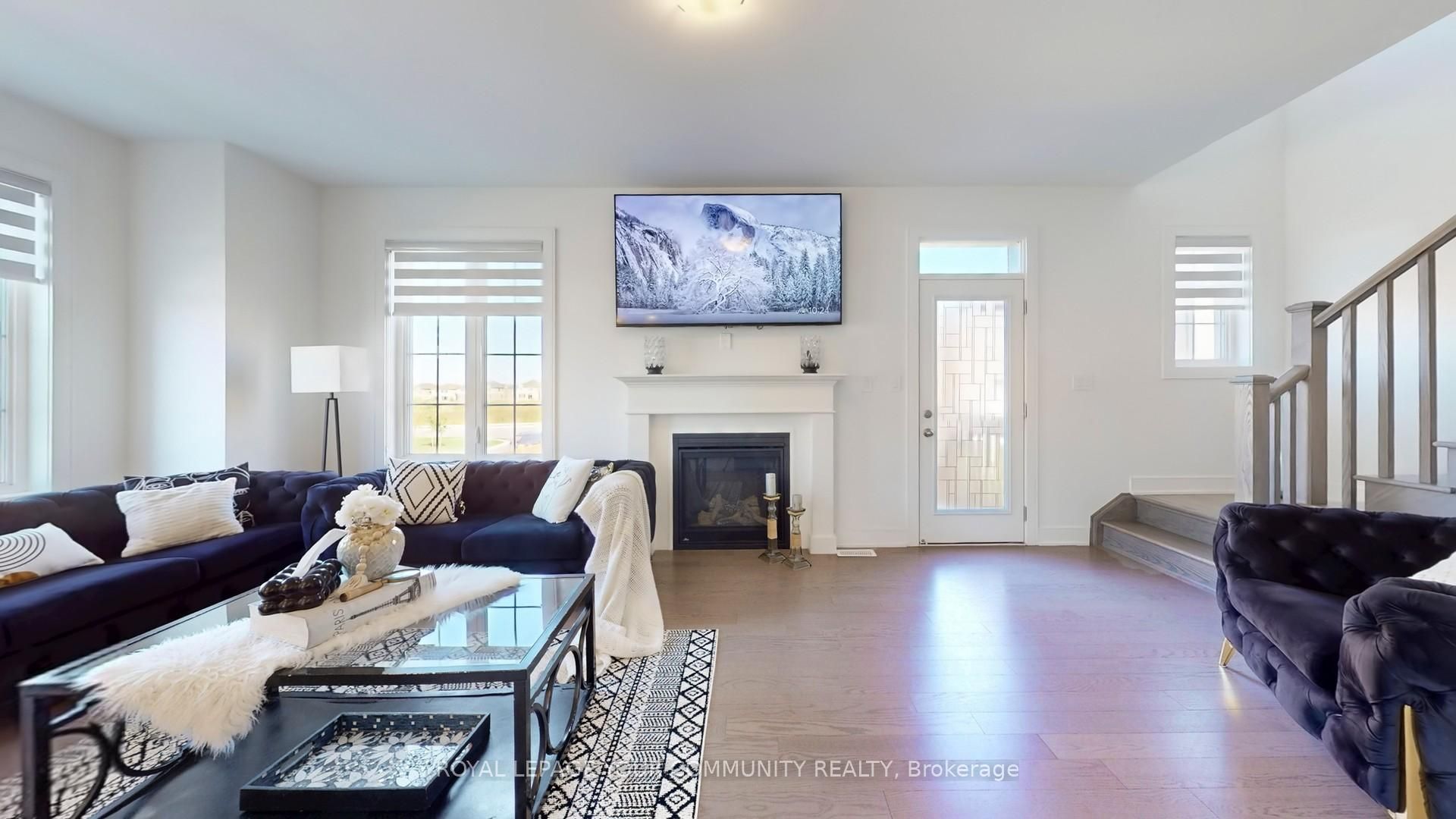 Welcome to this stunning, one-year-new detached residence situated on a premium corner lot! Featuring an attached 2-car garage, a double-wide driveway, and no sidewalk, this property offers both convenience and curb appeal. Step through the inviting double-door entry into a bright, open-concept layout highlighted by 10 ft. Ceilings, hardwood flooring, and custom zebra blinds throughout the main and second levels. The heart of the home is the impressive eat-in kitchen, complete with a large island with breakfast bar, quartz countertops, high-gloss cabinetry, stainless steel appliances. Cozy dining area. The open-concept living room is equally inviting, showcasing a natural gas fireplace and a walkout to the backyard. The main floor also features a stylish 2-piece bath, two closets, and direct garage access. Elegant oak stairs lead to the upper level, where the spacious primary suite awaits with a walk-in closet and a luxurious 4-piece ensuite offering two sinks and a shower with glass door. Three additional bedrooms, each with double closets plus a 4-piece main bath with two sinks provide plenty of room for family and guests. A full, unfinished basement offers endless potential for customization and future expansion. Perfectly located near shopping, restaurants, schools, public transit, and more, this home also provides easy access to highway 400 and highway 27 for seamless commuting.