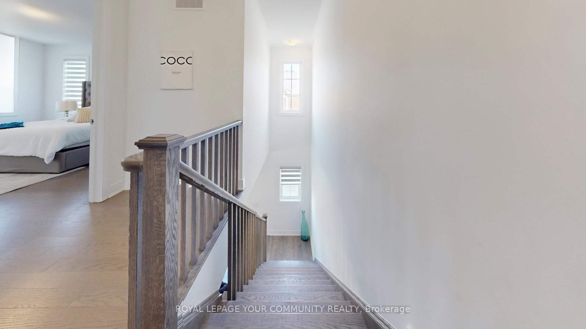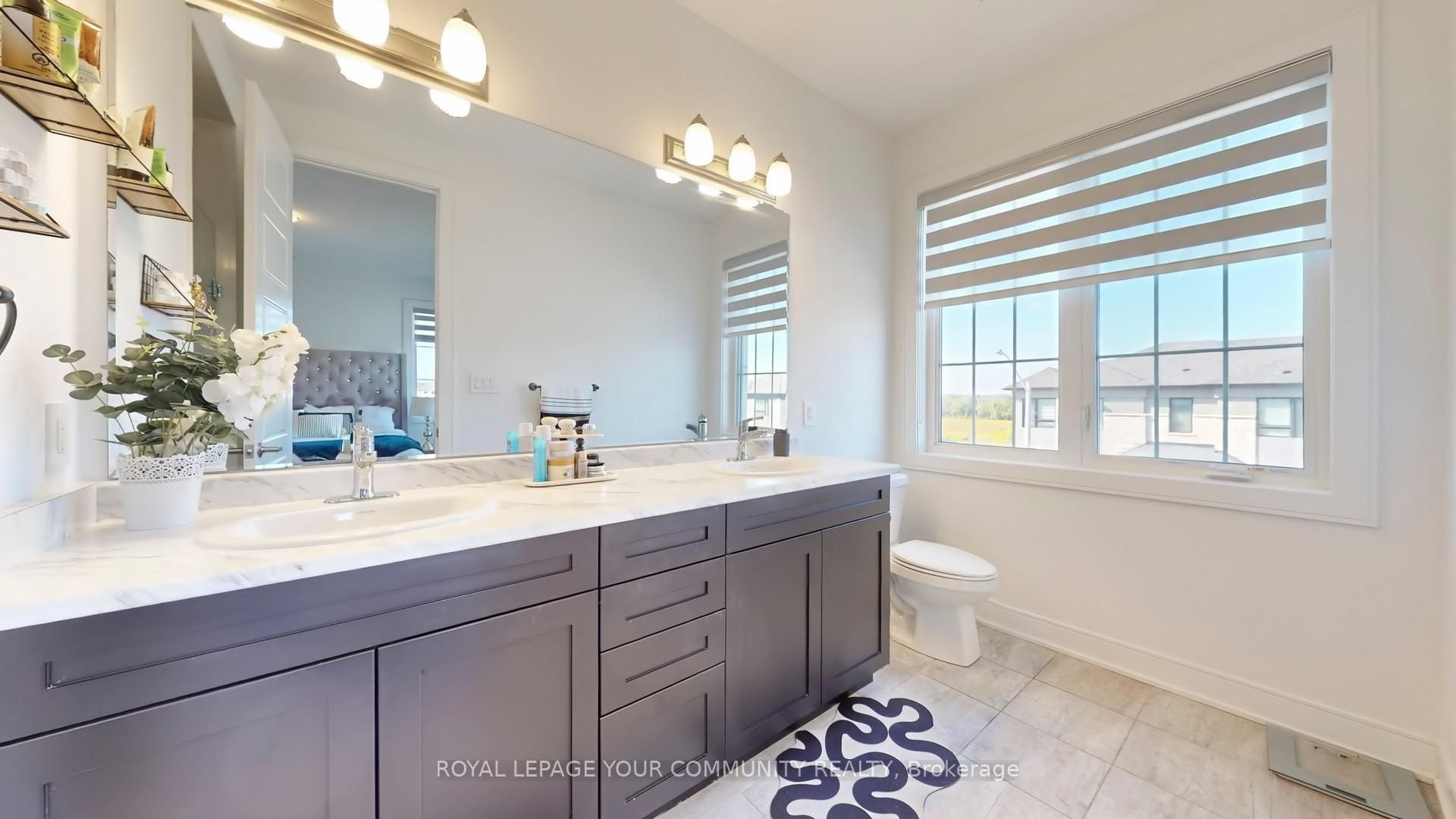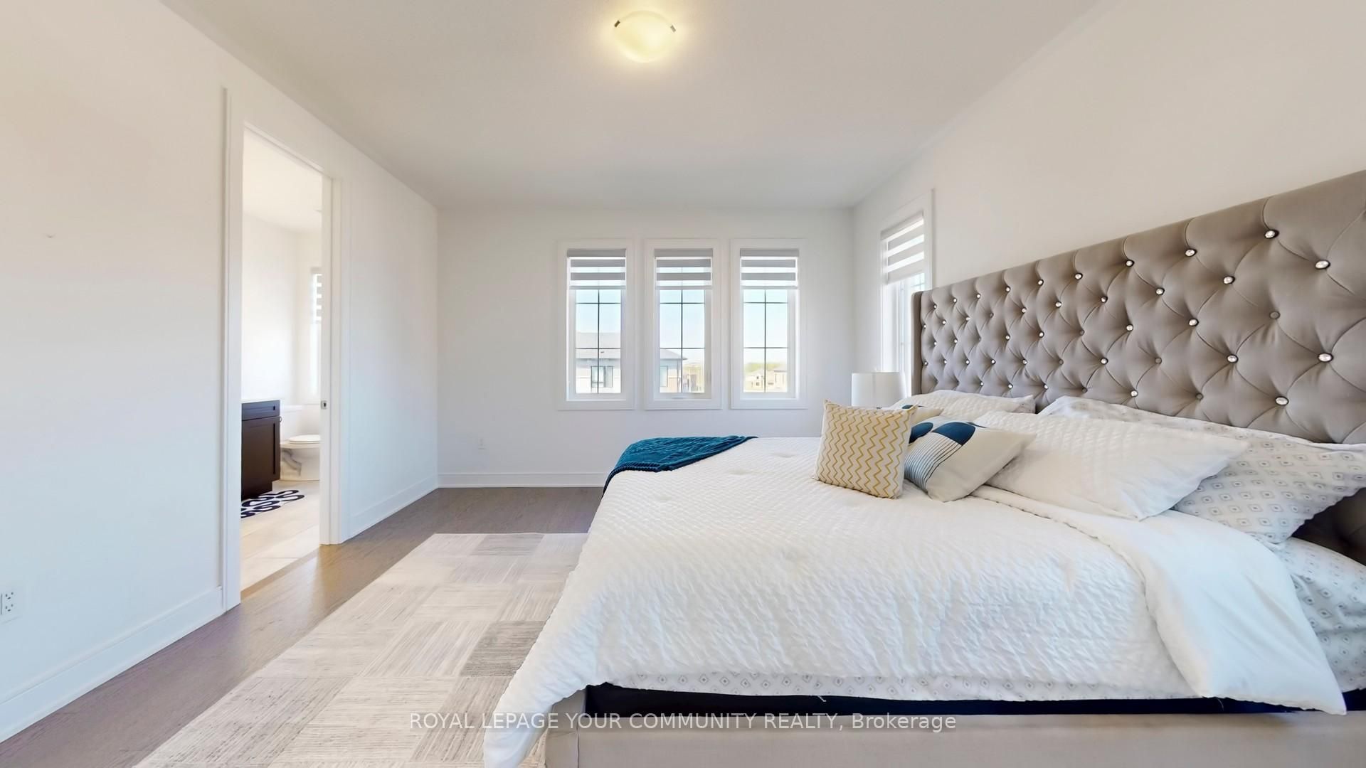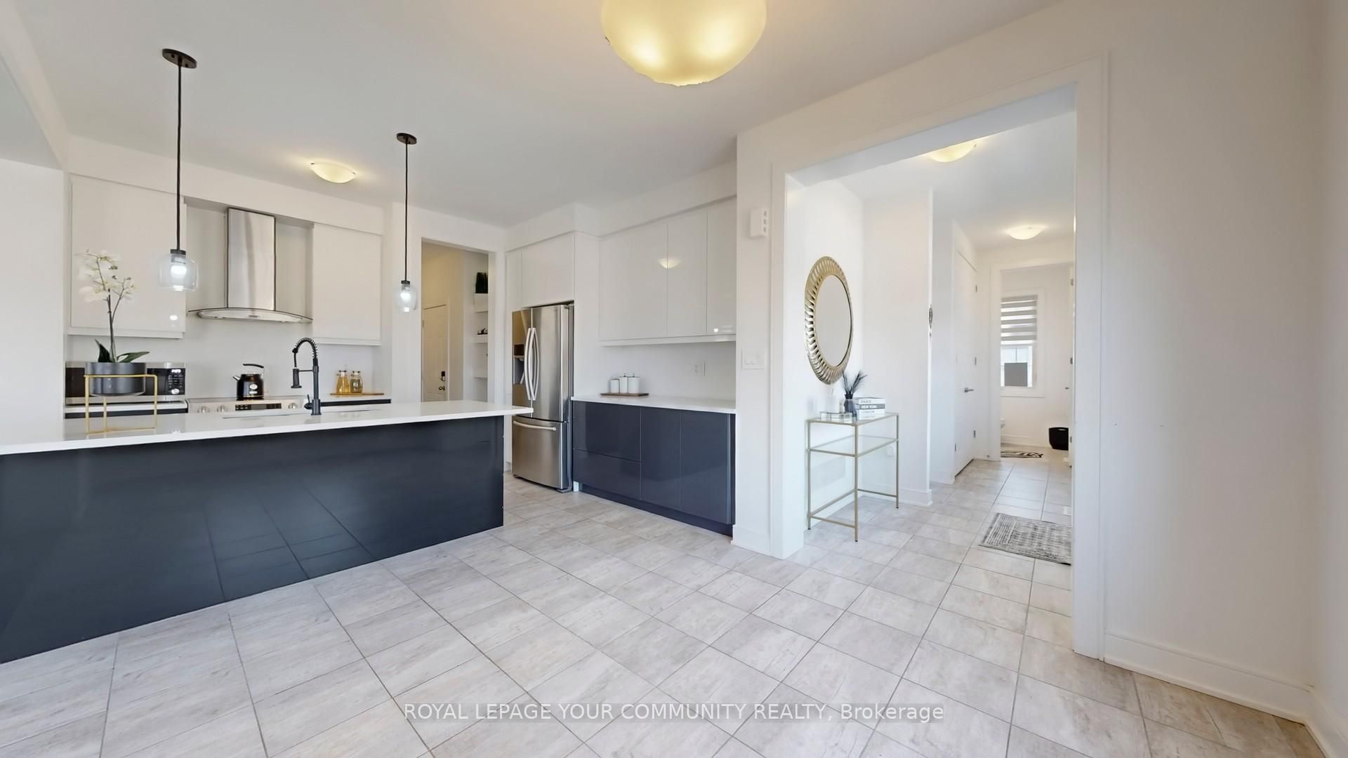 Welcome to this stunning, one-year-new detached residence situated on a premium corner lot! Featuring an attached 2-car garage, a double-wide driveway, and no sidewalk, this property offers both convenience and curb appeal. Step through the inviting double-door entry into a bright, open-concept layout highlighted by 10 ft. Ceilings, hardwood flooring, and custom zebra blinds throughout the main and second levels. The heart of the home is the impressive eat-in kitchen, complete with a large island with breakfast bar, quartz countertops, high-gloss cabinetry, stainless steel appliances. Cozy dining area. The open-concept living room is equally inviting, showcasing a natural gas fireplace and a walkout to the backyard. The main floor also features a stylish 2-piece bath, two closets, and direct garage access. Elegant oak stairs lead to the upper level, where the spacious primary suite awaits with a walk-in closet and a luxurious 4-piece ensuite offering two sinks and a shower with glass door. Three additional bedrooms, each with double closets plus a 4-piece main bath with two sinks provide plenty of room for family and guests. A full, unfinished basement offers endless potential for customization and future expansion. Perfectly located near shopping, restaurants, schools, public transit, and more, this home also provides easy access to highway 400 and highway 27 for seamless commuting.