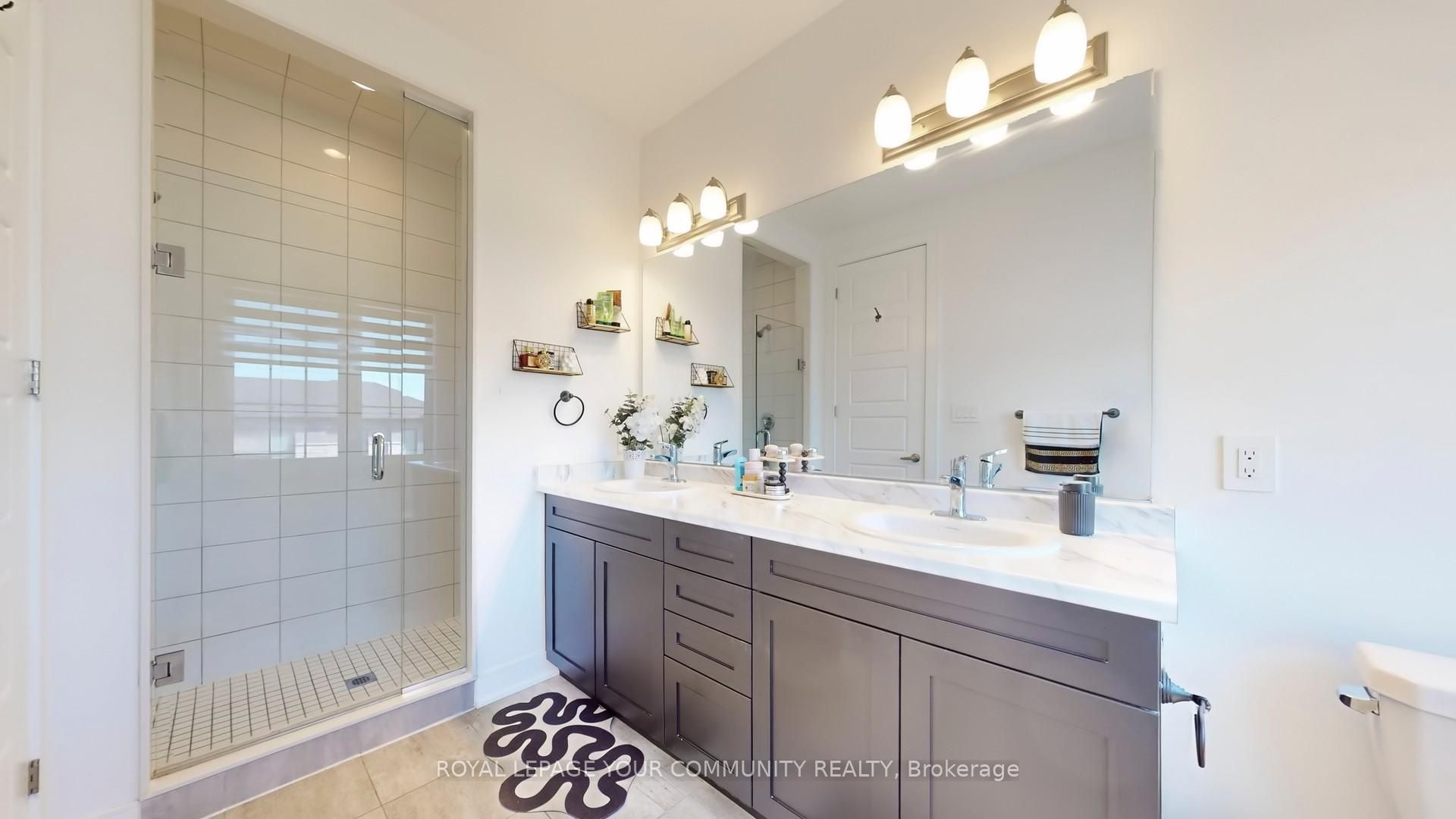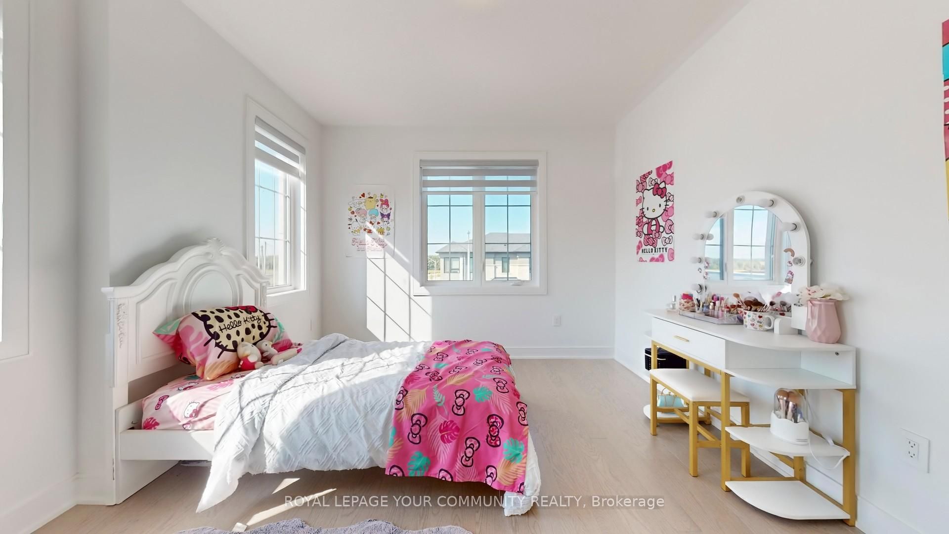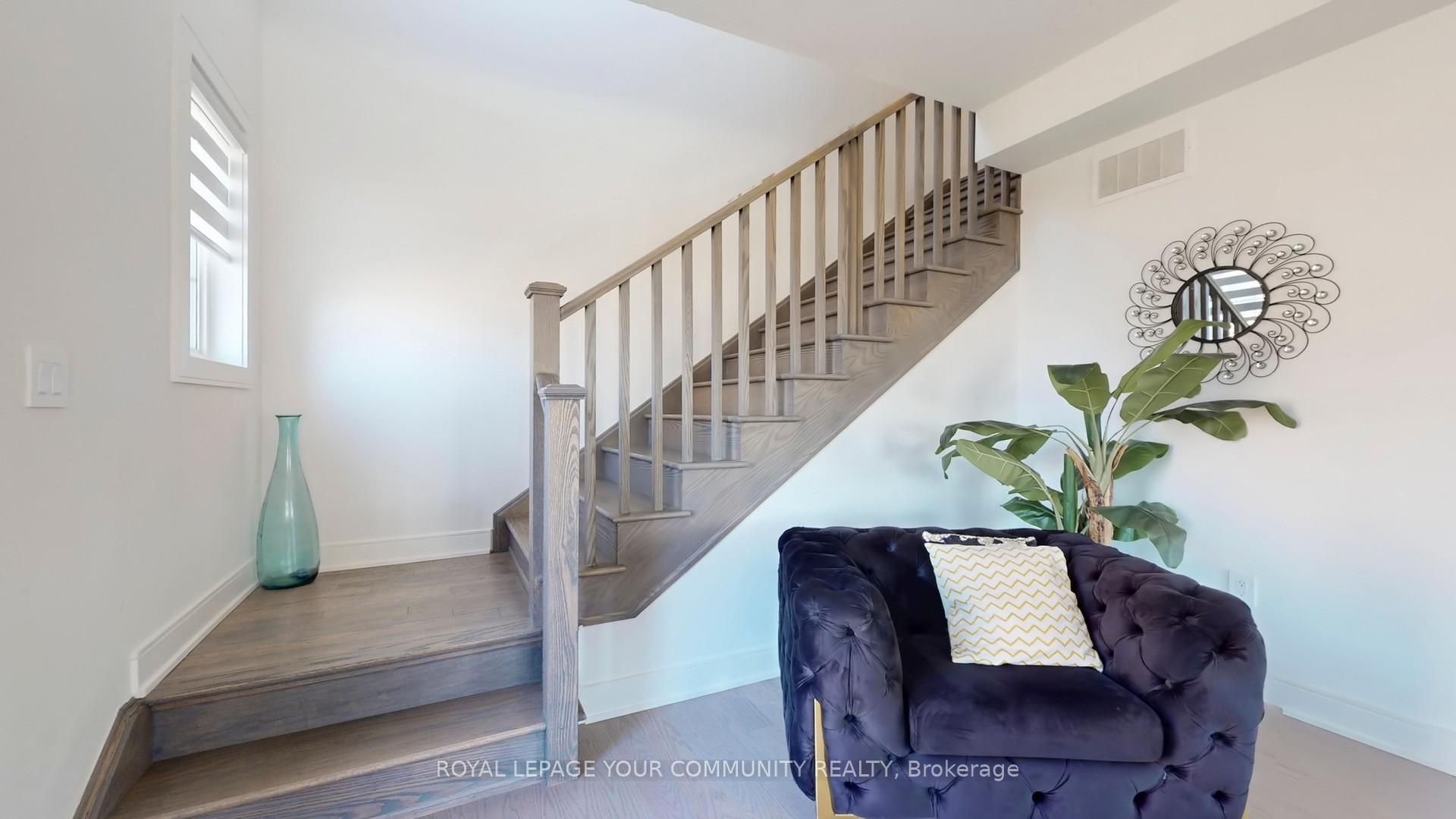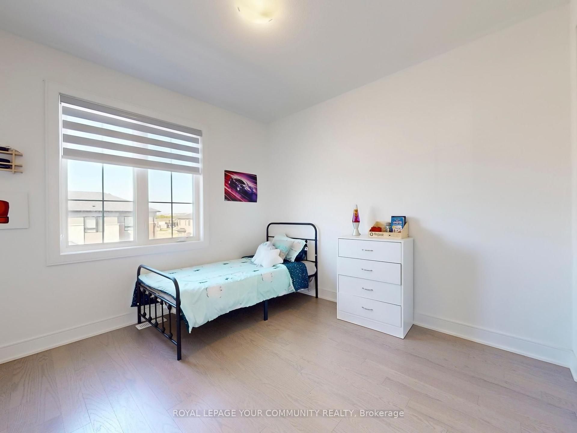 Welcome to this stunning, one-year-new detached residence situated on a premium corner lot! Featuring an attached 2-car garage, a double-wide driveway, and no sidewalk, this property offers both convenience and curb appeal. Step through the inviting double-door entry into a bright, open-concept layout highlighted by 10 ft. Ceilings, hardwood flooring, and custom zebra blinds throughout the main and second levels. The heart of the home is the impressive eat-in kitchen, complete with a large island with breakfast bar, quartz countertops, high-gloss cabinetry, stainless steel appliances. Cozy dining area. The open-concept living room is equally inviting, showcasing a natural gas fireplace and a walkout to the backyard. The main floor also features a stylish 2-piece bath, two closets, and direct garage access. Elegant oak stairs lead to the upper level, where the spacious primary suite awaits with a walk-in closet and a luxurious 4-piece ensuite offering two sinks and a shower with glass door. Three additional bedrooms, each with double closets plus a 4-piece main bath with two sinks provide plenty of room for family and guests. A full, unfinished basement offers endless potential for customization and future expansion. Perfectly located near shopping, restaurants, schools, public transit, and more, this home also provides easy access to highway 400 and highway 27 for seamless commuting.
